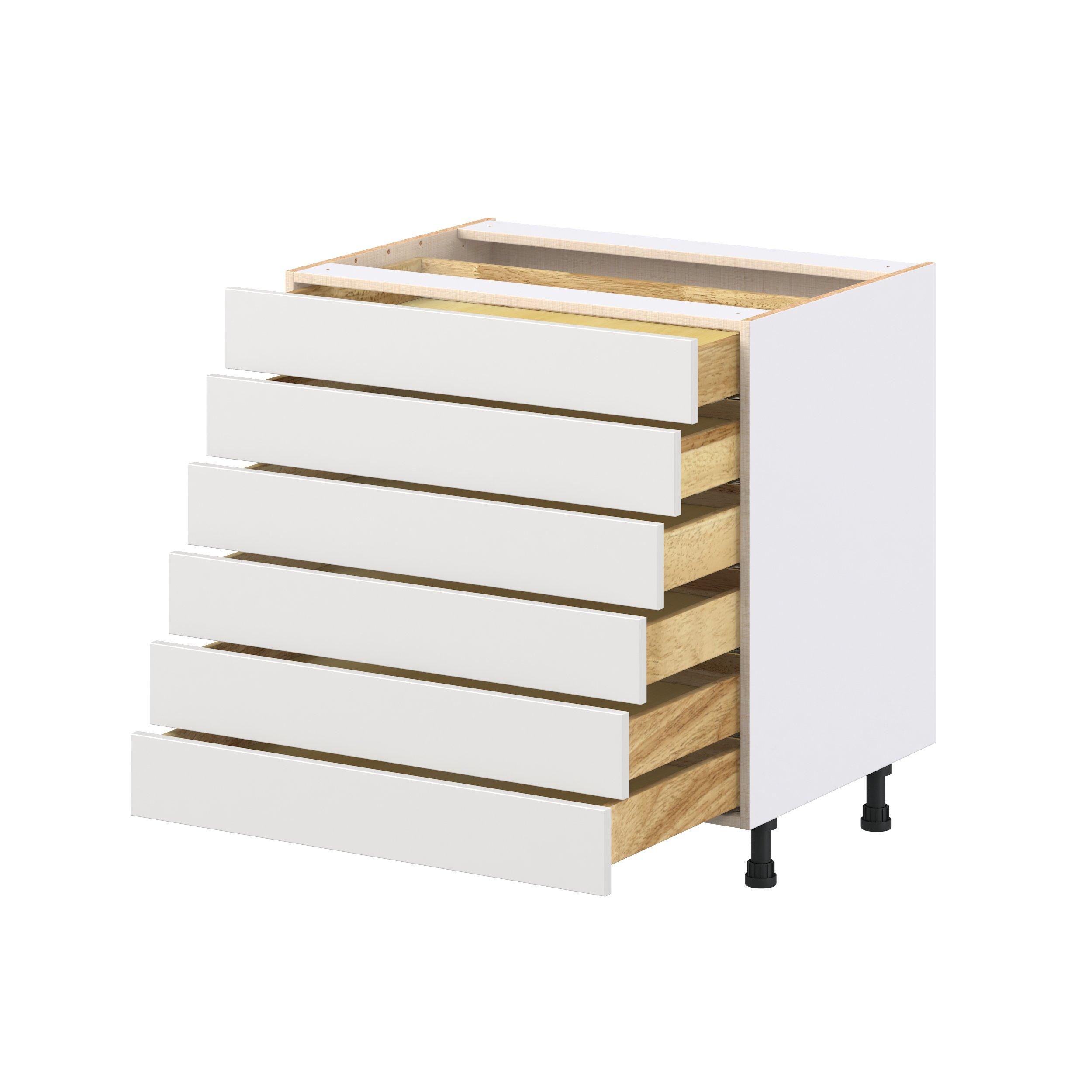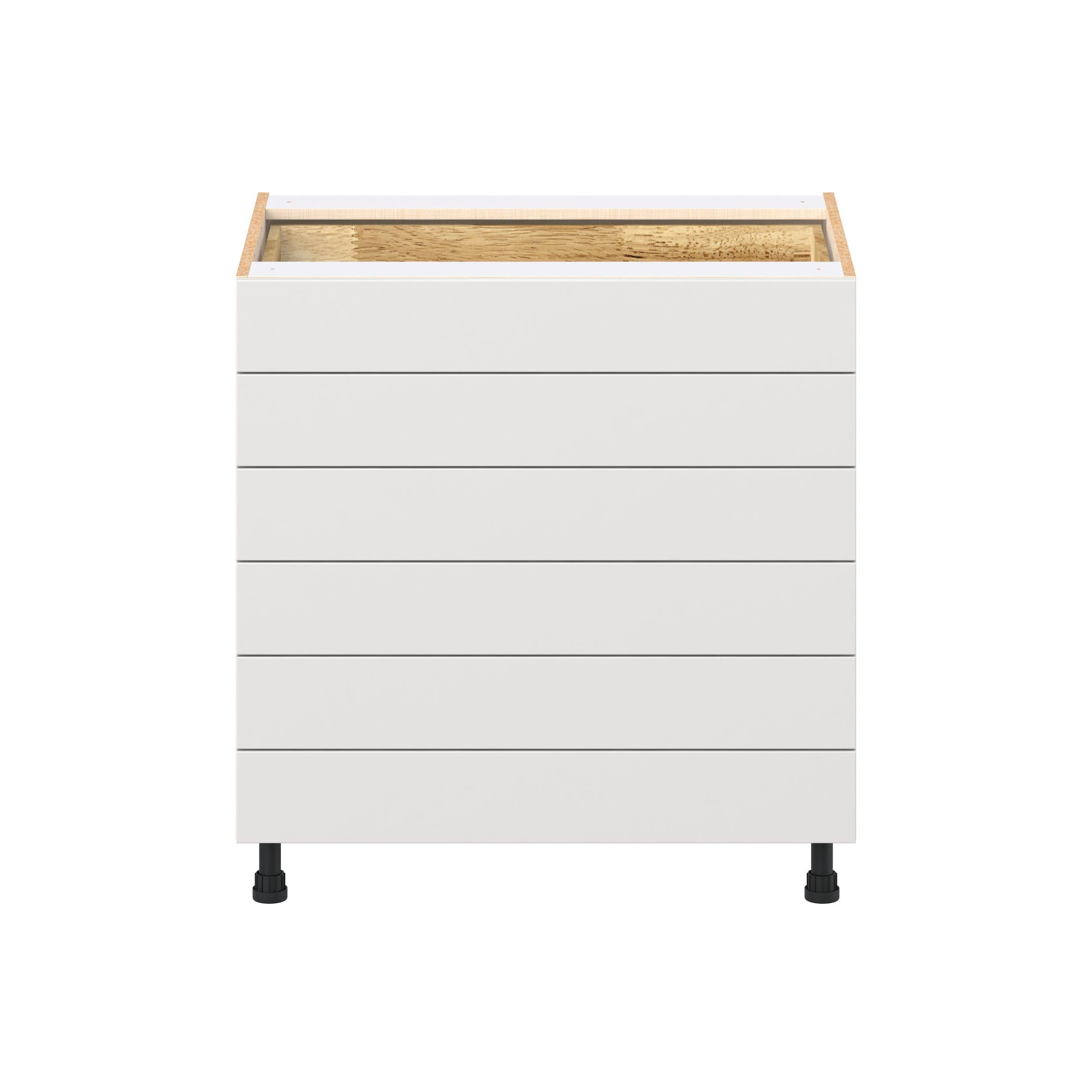 Transform your space with the elegance of Candler wide-rail shaker styles. Both the warm white and slate gray options create a rich transitional backdrop to complement any decor. Crafted from one-piece MDF Studio Design Collection Candler 33 in. Painted Warm White Drawer Base Cabinet is designed to resist hairline cracks while the easy-to-clean finish stands up to stains and moisture. Featuring 5-piece doors and dovetail drawer joints, these cabinets offer durability and elegance. This collection combines style with everyday storage solutions.
