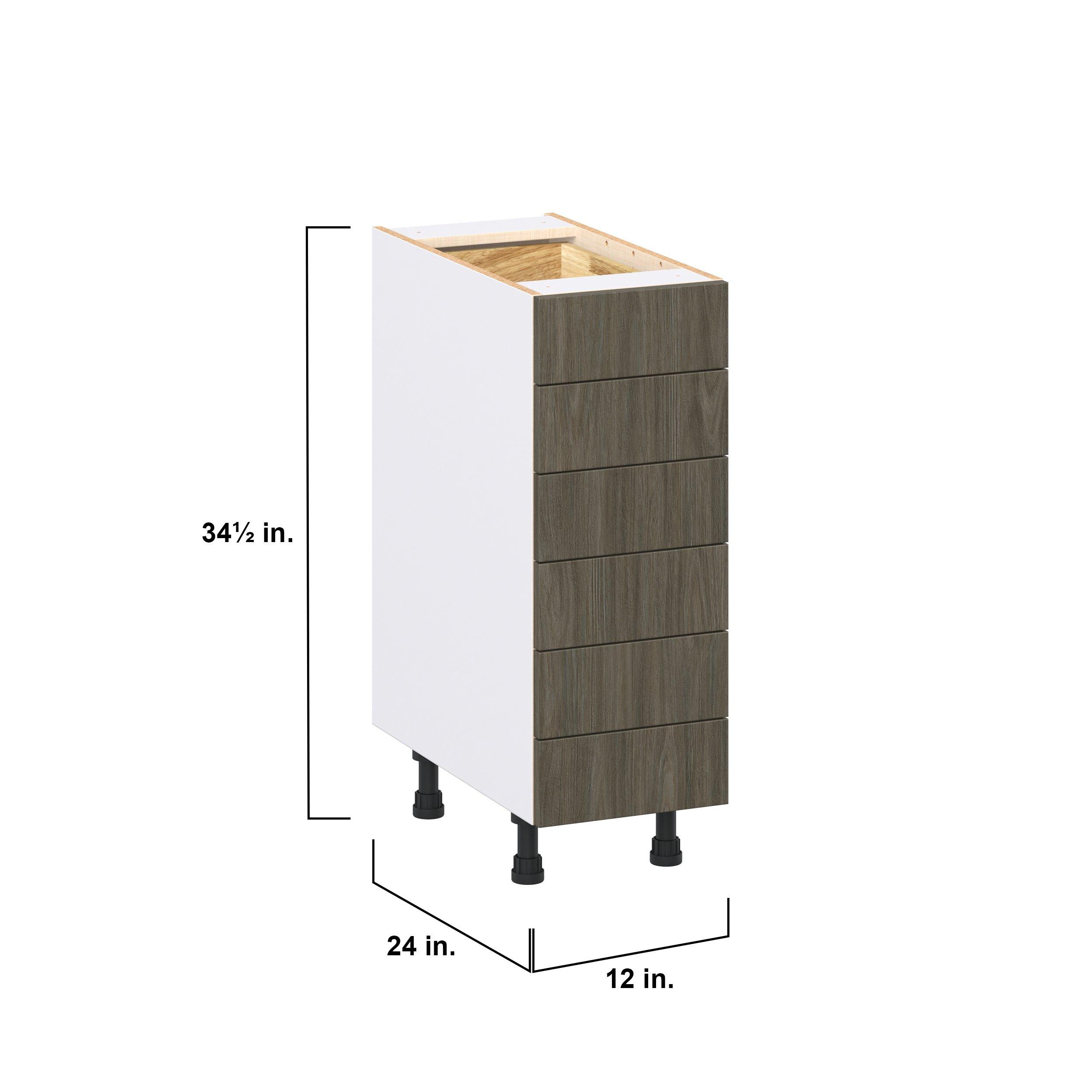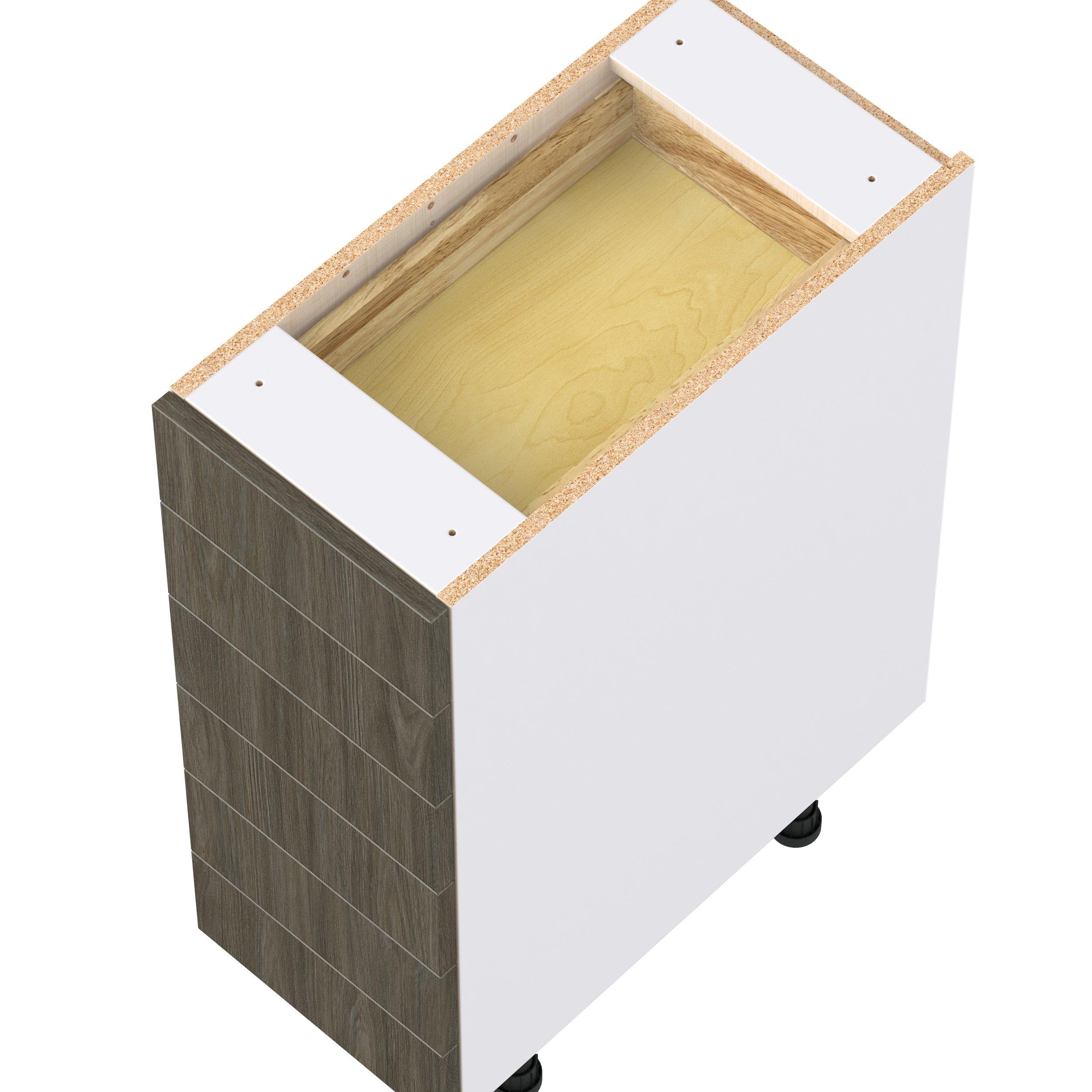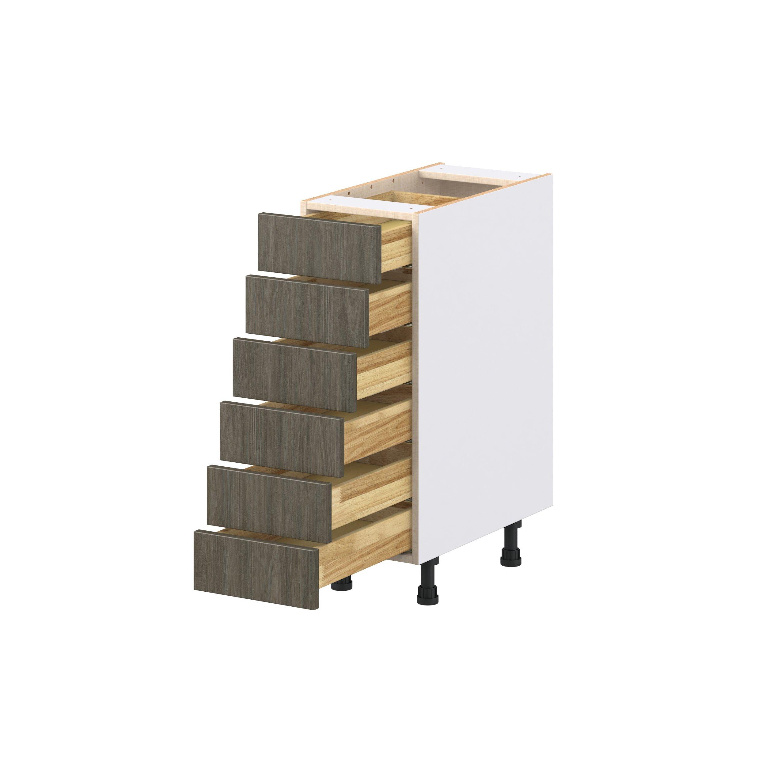 Elevate your project with the contemporary charm of Glenwood slab-style cabinets. Available in desert Mojavi oak and rich burnt walnut finishes, this collection captures the warmth and beauty of natural wood with the practicality of textured melamine. Crafted from one-piece MDF Studio Design Collection Glenwood 12 in. Burnt Walnut Drawer Base Cabinet is designed to resist hairline cracks while the easy-to-clean finish stands up to stains and moisture. Featuring 5-piece doors and dovetail drawer joints, these cabinets offer durability and elegance. This collection combines style with everyday storage solutions.