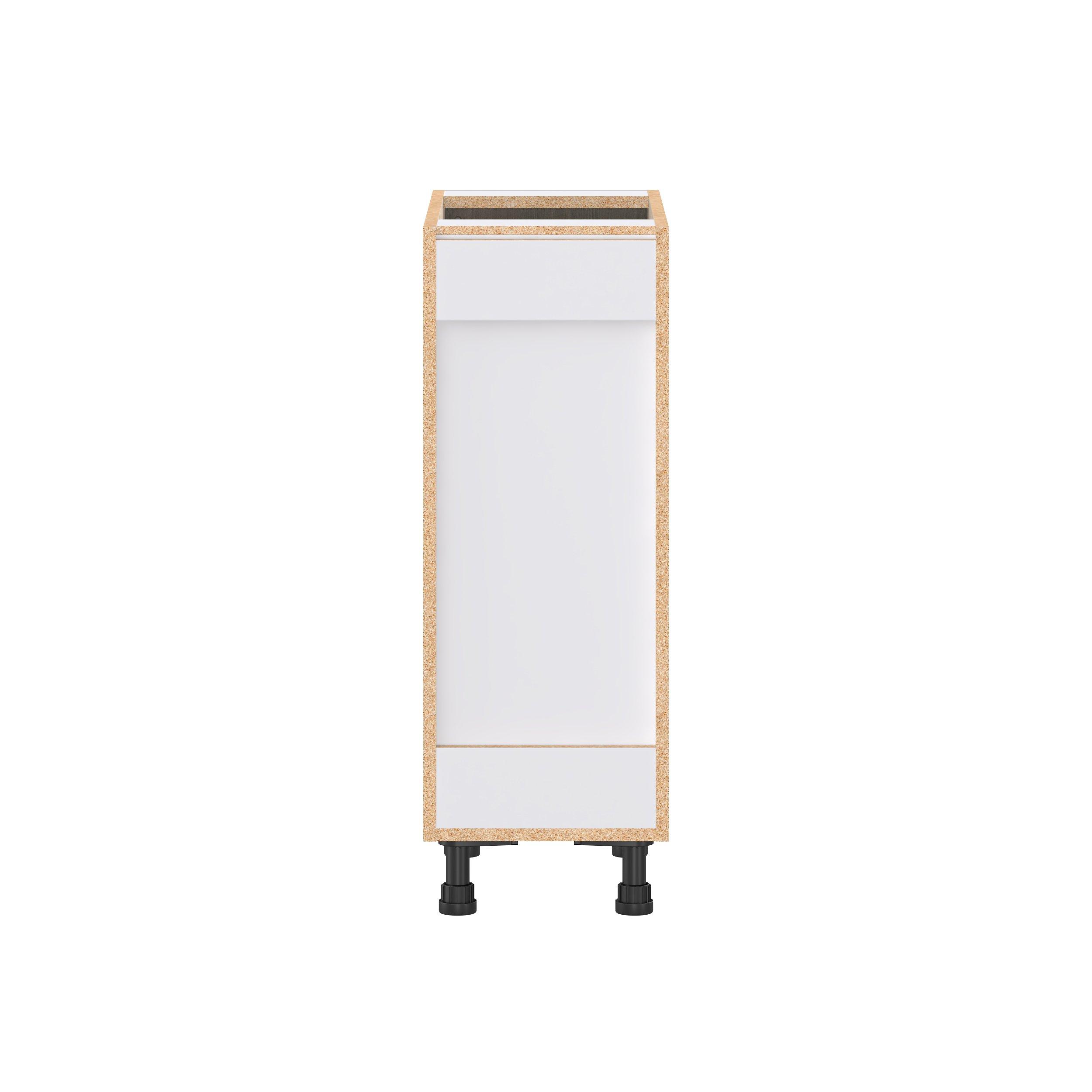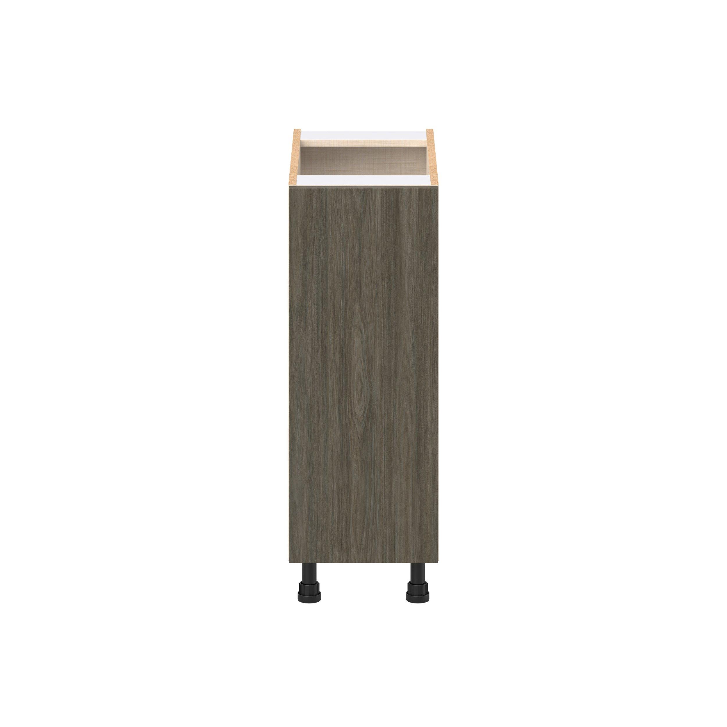 Elevate your project with the contemporary charm of Glenwood slab-style cabinets. Available in desert Mojavi oak and rich burnt walnut finishes, this collection captures the warmth and beauty of natural wood with the practicality of textured melamine. Crafted from one-piece MDF Studio Design Collection Glenwood 12 in. Burnt Walnut Spice Rack Pull-Out Base Cabinet is designed to resist hairline cracks while the easy-to-clean finish stands up to stains and moisture. Featuring 5-piece doors and dovetail drawer joints, these cabinets offer durability and elegance. This collection combines style with everyday storage solutions.
