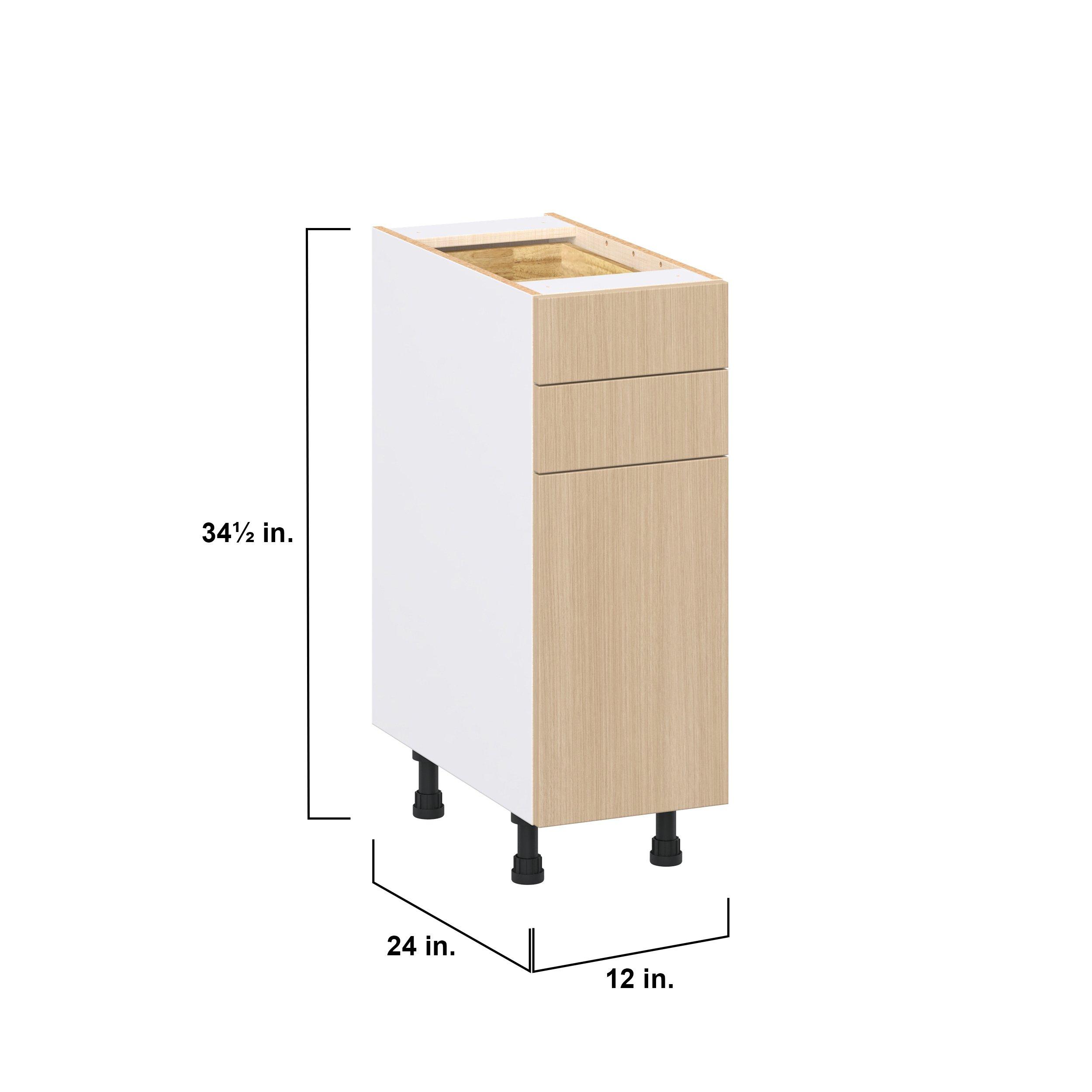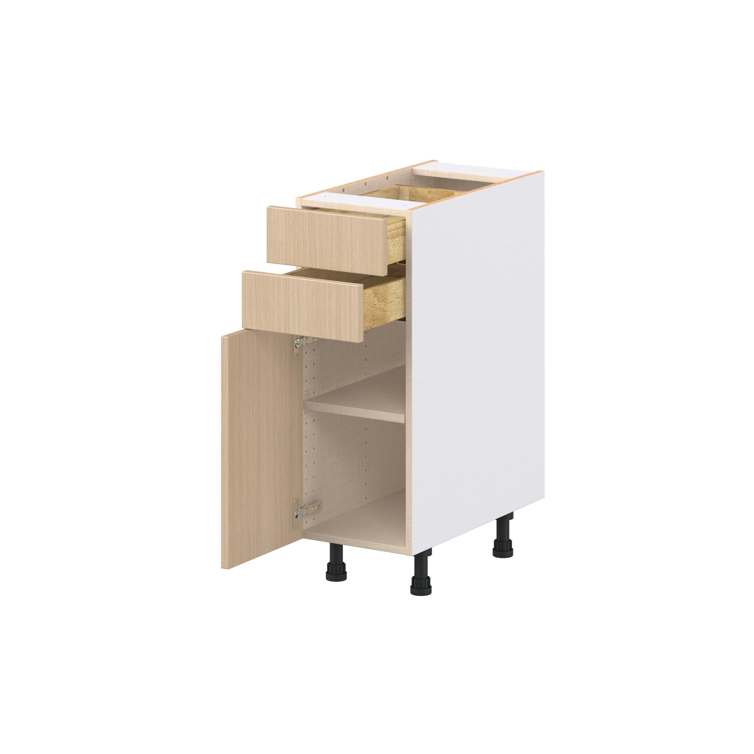 Elevate your project with the contemporary charm of Glenwood slab-style cabinets. Available in desert Mojavi oak and rich burnt walnut finishes, this collection captures the warmth and beauty of natural wood with the practicality of textured melamine. Crafted from one-piece MDF Studio Design Collection Glenwood 12 in. Mojavi Oak Door and Drawer Base Cabinet is designed to resist hairline cracks while the easy-to-clean finish stands up to stains and moisture. Featuring 5-piece doors and dovetail drawer joints, these cabinets offer durability and elegance. This collection combines style with everyday storage solutions.
