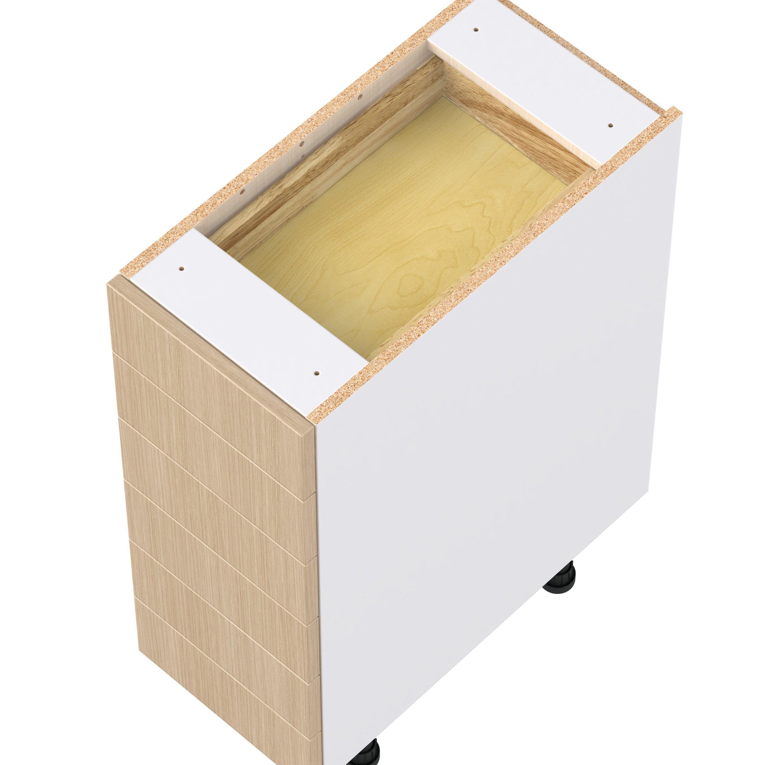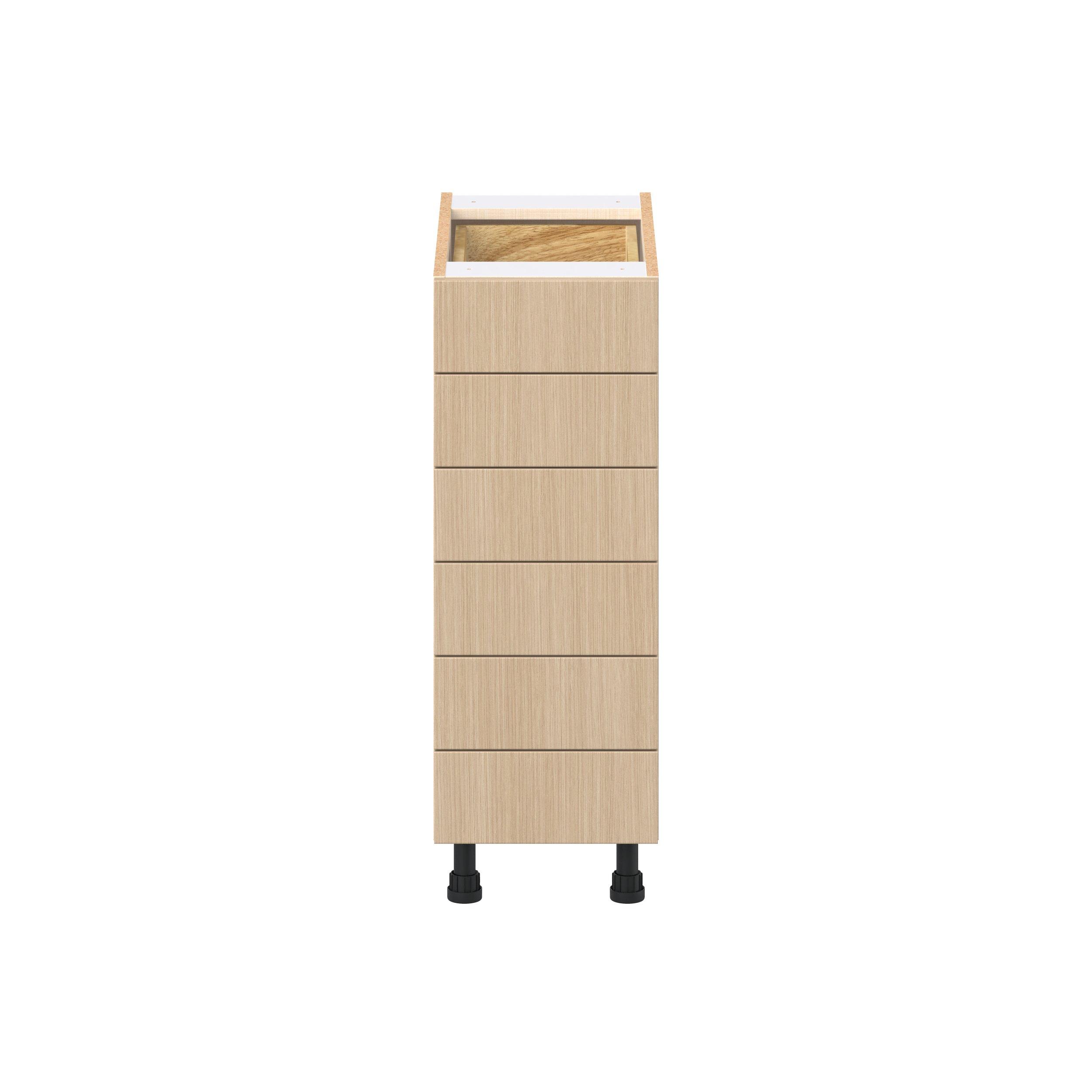 Elevate your project with the contemporary charm of Glenwood slab-style cabinets. Available in desert Mojavi oak and rich burnt walnut finishes, this collection captures the warmth and beauty of natural wood with the practicality of textured melamine. Crafted from one-piece MDF Studio Design Collection Glenwood 12 in. Mojavi Oak Drawer Base Cabinet is designed to resist hairline cracks while the easy-to-clean finish stands up to stains and moisture. Featuring 5-piece doors and dovetail drawer joints, these cabinets offer durability and elegance. This collection combines style with everyday storage solutions.