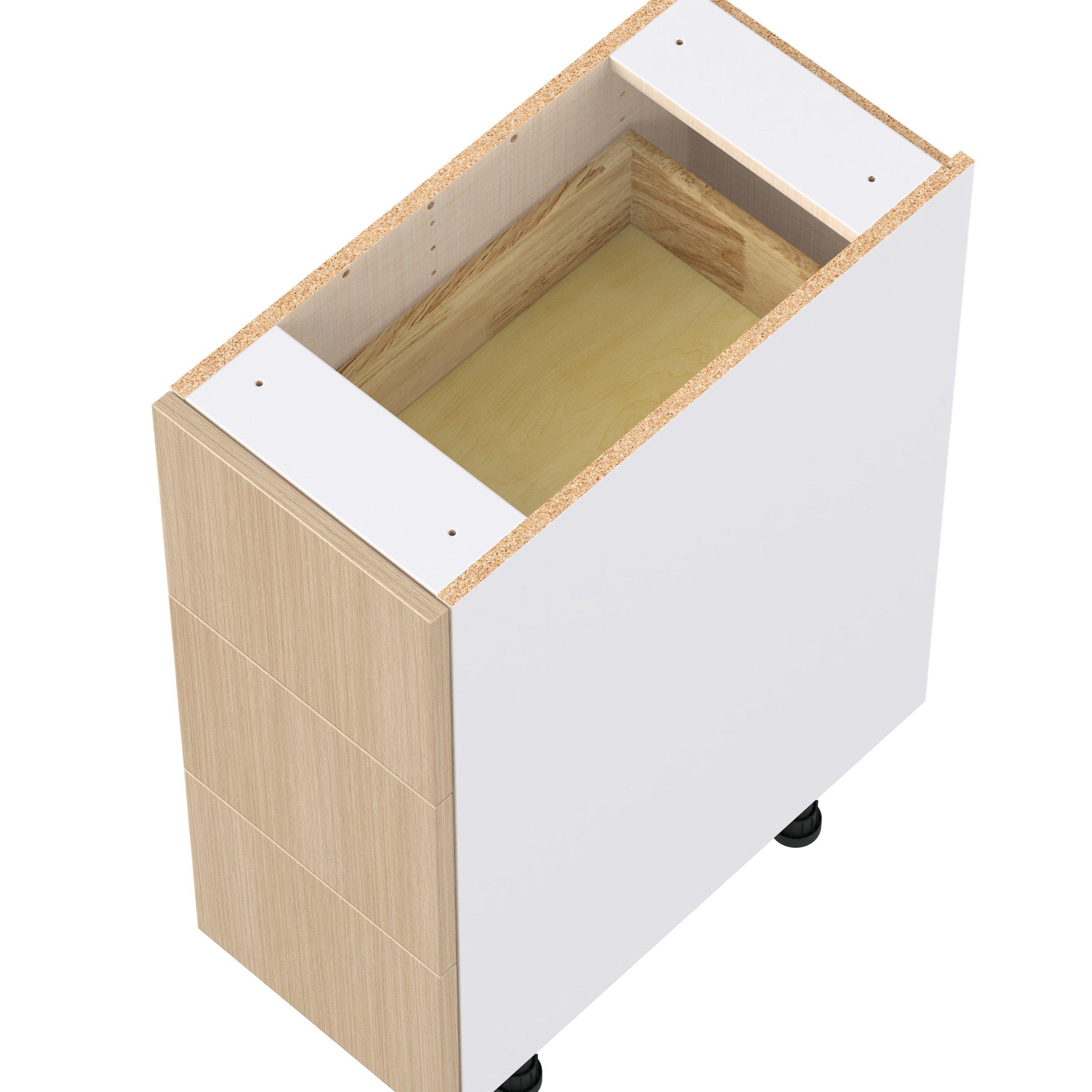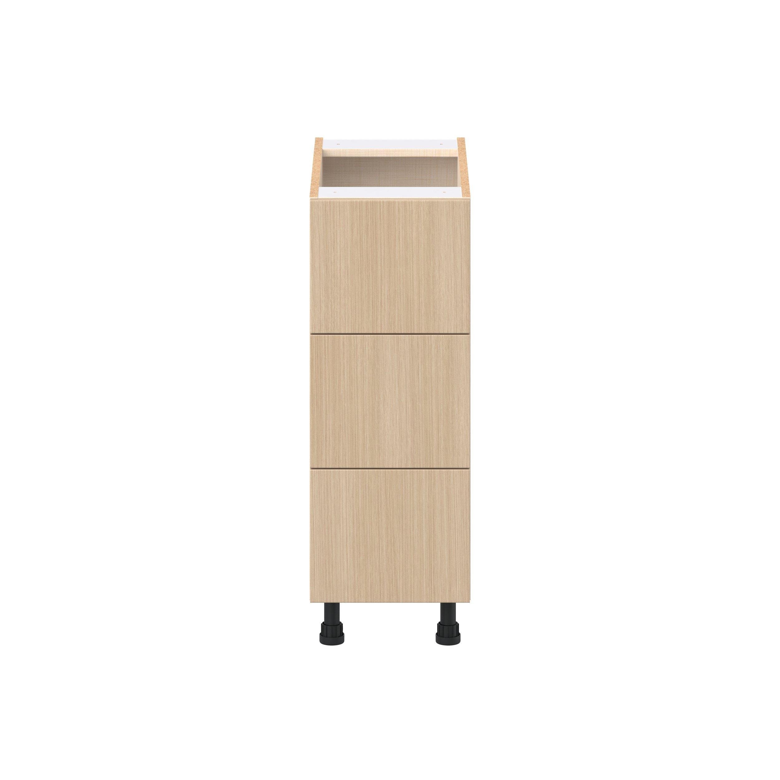 Elevate your project with the contemporary charm of Glenwood slab-style cabinets. Available in desert Mojavi oak and rich burnt walnut finishes, this collection captures the warmth and beauty of natural wood with the practicality of textured melamine. Crafted from one-piece MDF Studio Design Collection Glenwood 12 in. Mojavi Oak Drawer Base Cabinet is designed to resist hairline cracks while the easy-to-clean finish stands up to stains and moisture. Featuring 5-piece doors and dovetail drawer joints, these cabinets offer durability and elegance. This collection combines style with everyday storage solutions.
