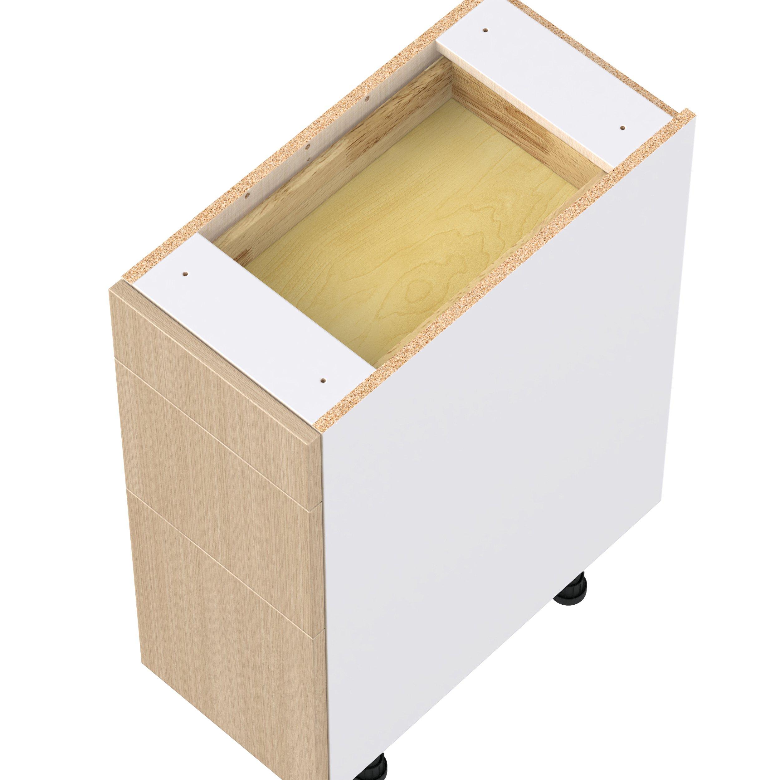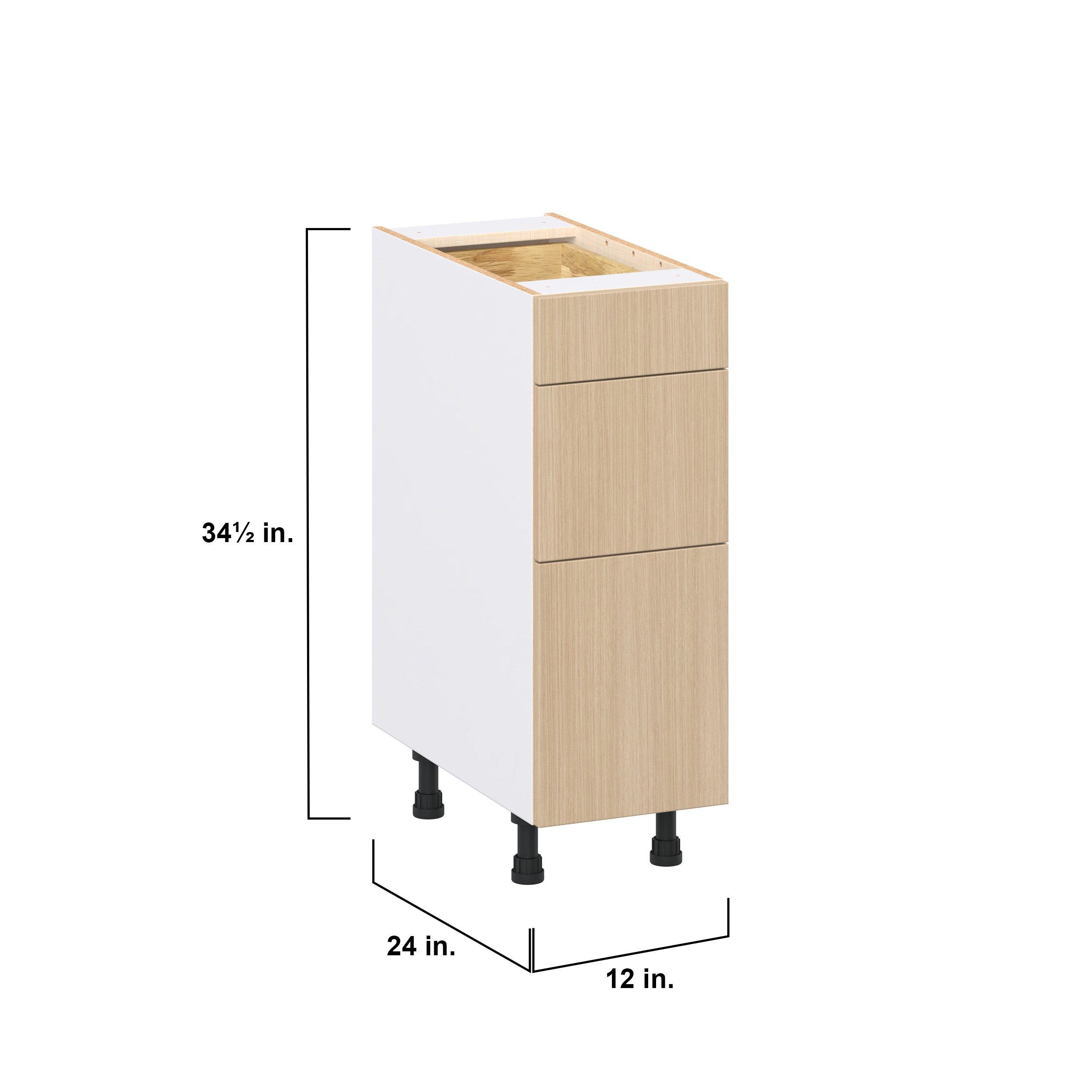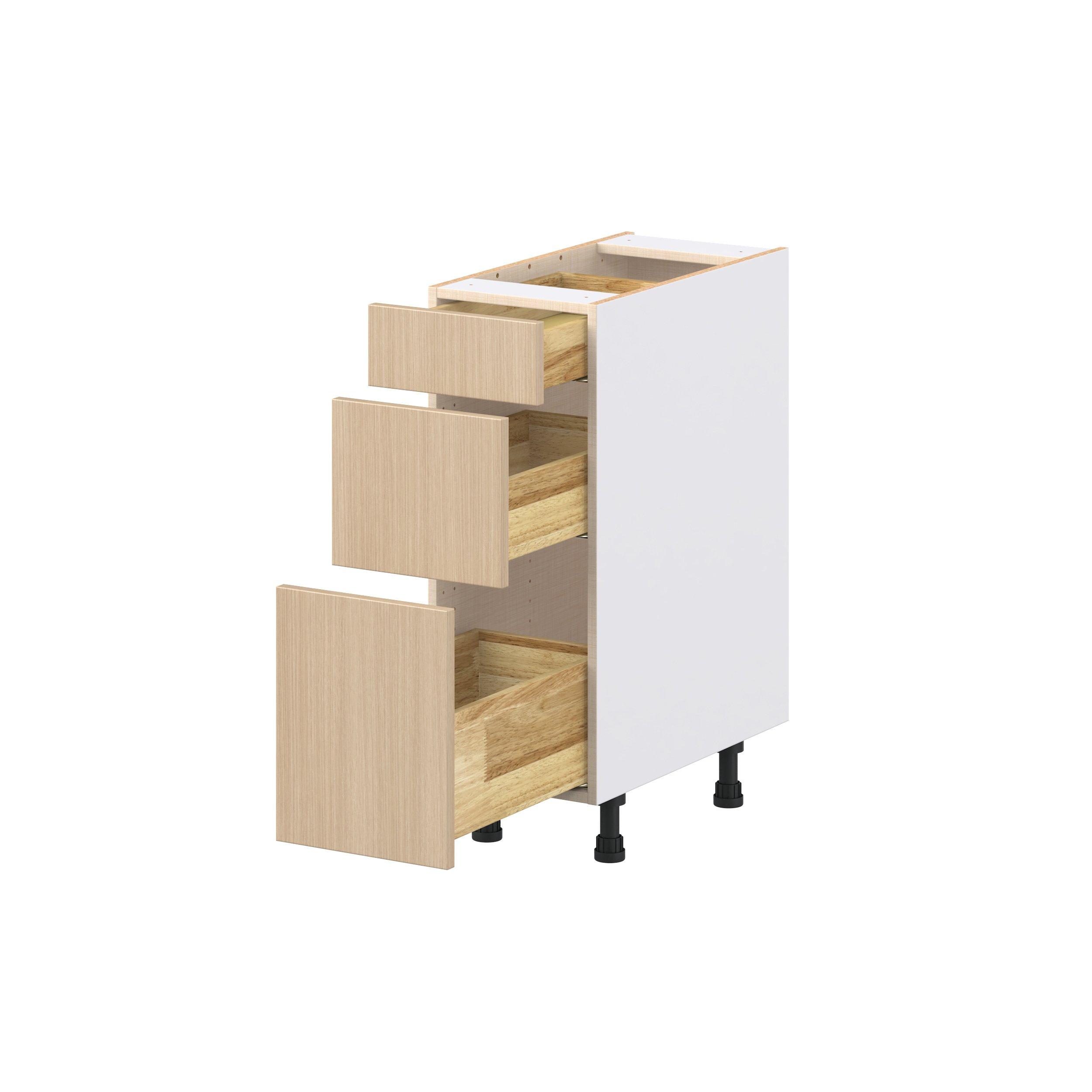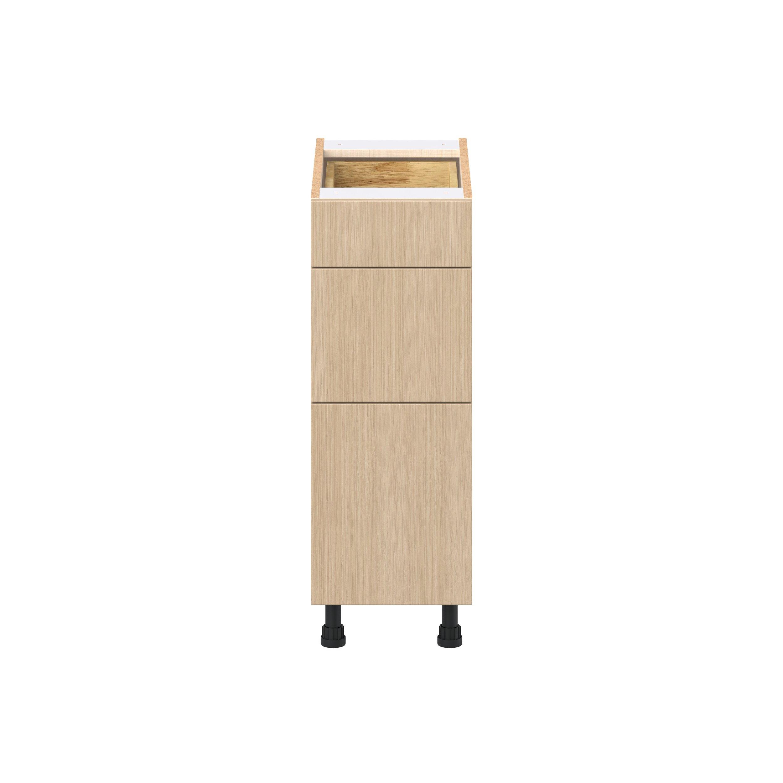 Elevate your project with the contemporary charm of Glenwood slab-style cabinets. Available in desert Mojavi oak and rich burnt walnut finishes, this collection captures the warmth and beauty of natural wood with the practicality of textured melamine. Crafted from one-piece MDF Studio Design Collection Glenwood 12 in. Mojavi Oak Drawer Base Cabinet is designed to resist hairline cracks while the easy-to-clean finish stands up to stains and moisture. Featuring 5-piece doors and dovetail drawer joints, these cabinets offer durability and elegance. This collection combines style with everyday storage solutions.