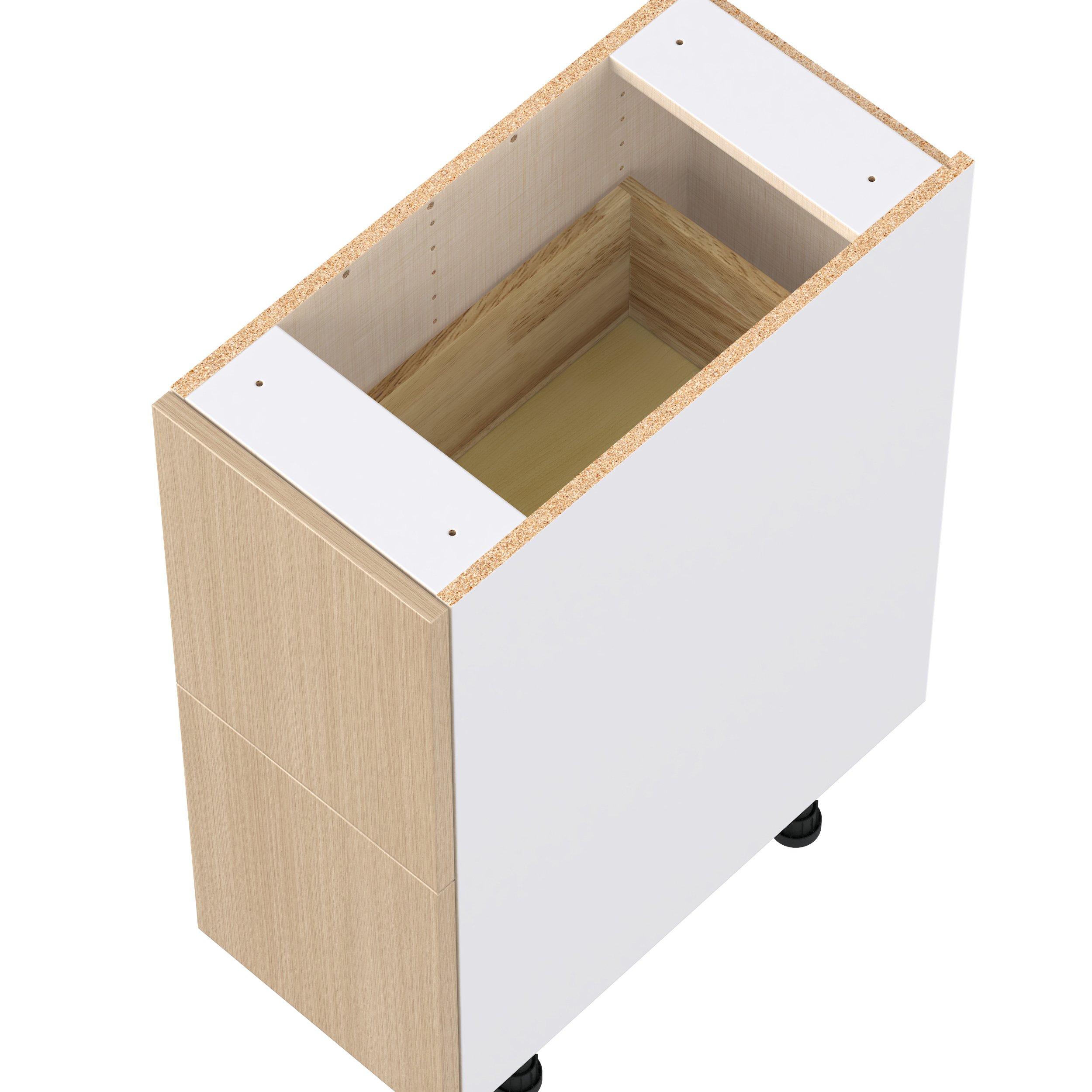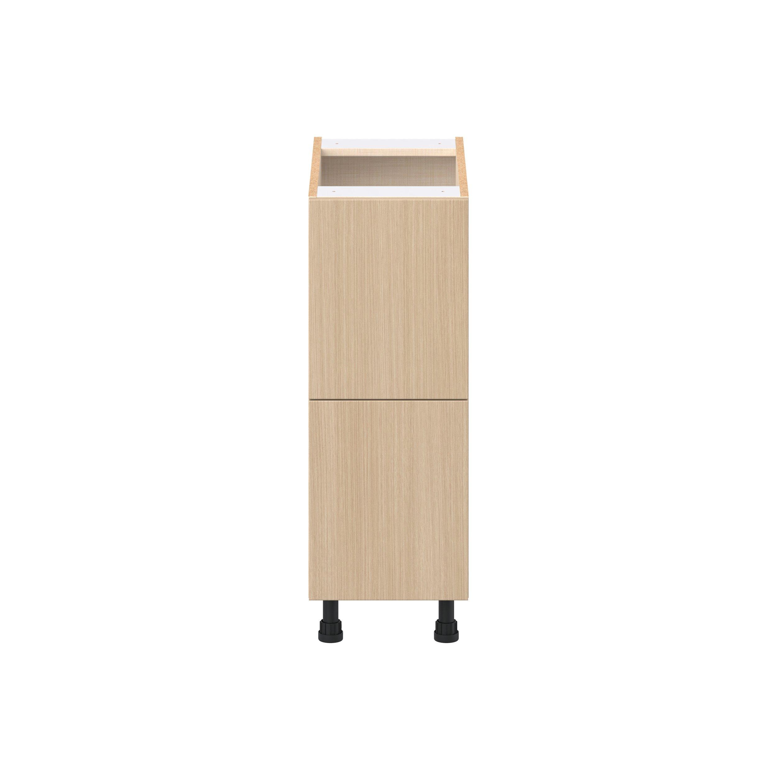 Elevate your project with the contemporary charm of Glenwood slab-style cabinets. Available in desert Mojavi oak and rich burnt walnut finishes, this collection captures the warmth and beauty of natural wood with the practicality of textured melamine. Crafted from one-piece MDF Studio Design Collection Glenwood 12 in. Mojavi Oak Drawer Base Cabinet is designed to resist hairline cracks while the easy-to-clean finish stands up to stains and moisture. Featuring 5-piece doors and dovetail drawer joints, these cabinets offer durability and elegance. This collection combines style with everyday storage solutions.