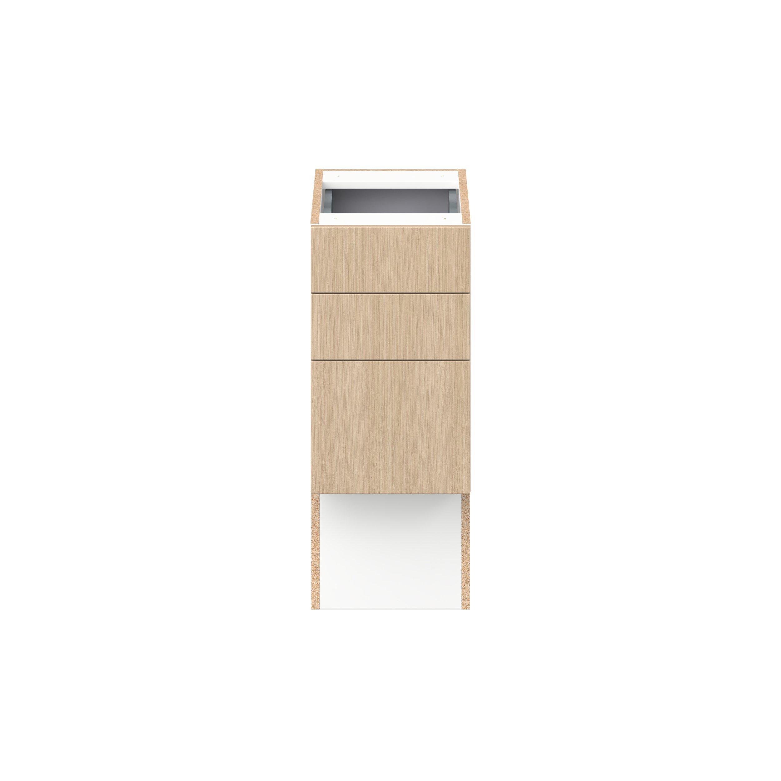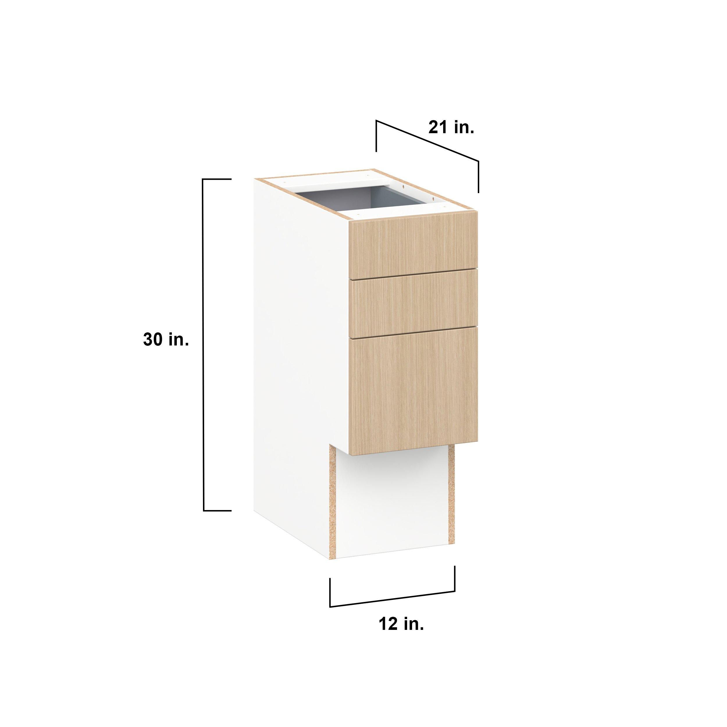 Elevate your project with the contemporary charm of Glenwood slab-style cabinets. Available in desert Mojavi oak and rich burnt walnut finishes, this collection captures the warmth and beauty of natural wood with the practicality of textured melamine. Crafted from one-piece MDF Studio Design Collection Glenwood 12 in. Mojavi Oak Vanity Drawer Base Cabinet - ADA is designed to resist hairline cracks while the easy-to-clean finish stands up to stains and moisture. Featuring 5-piece doors and dovetail drawer joints, these cabinets offer durability and elegance. This collection combines style with everyday storage solutions.