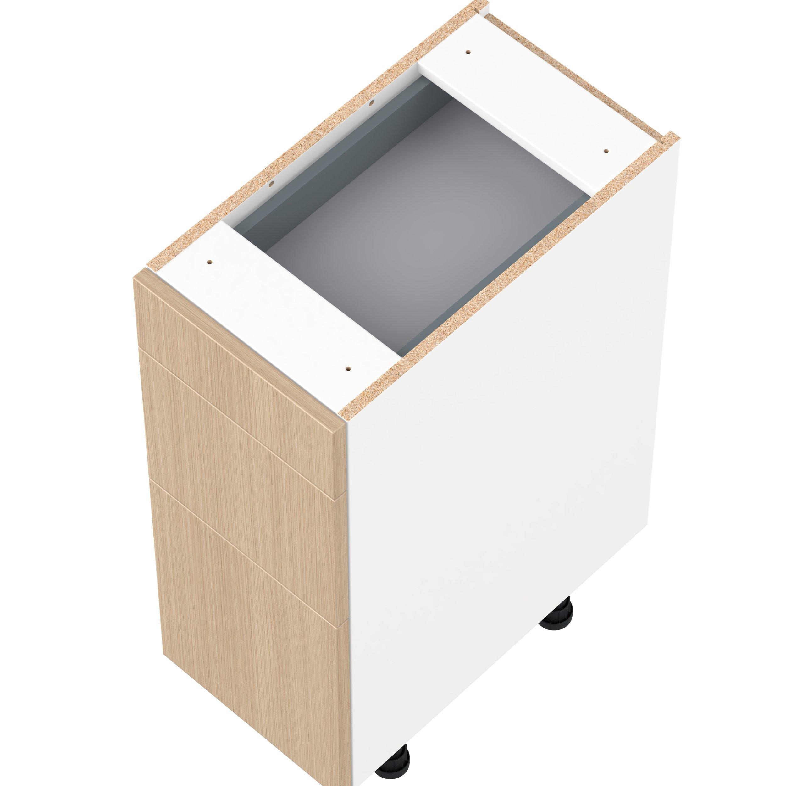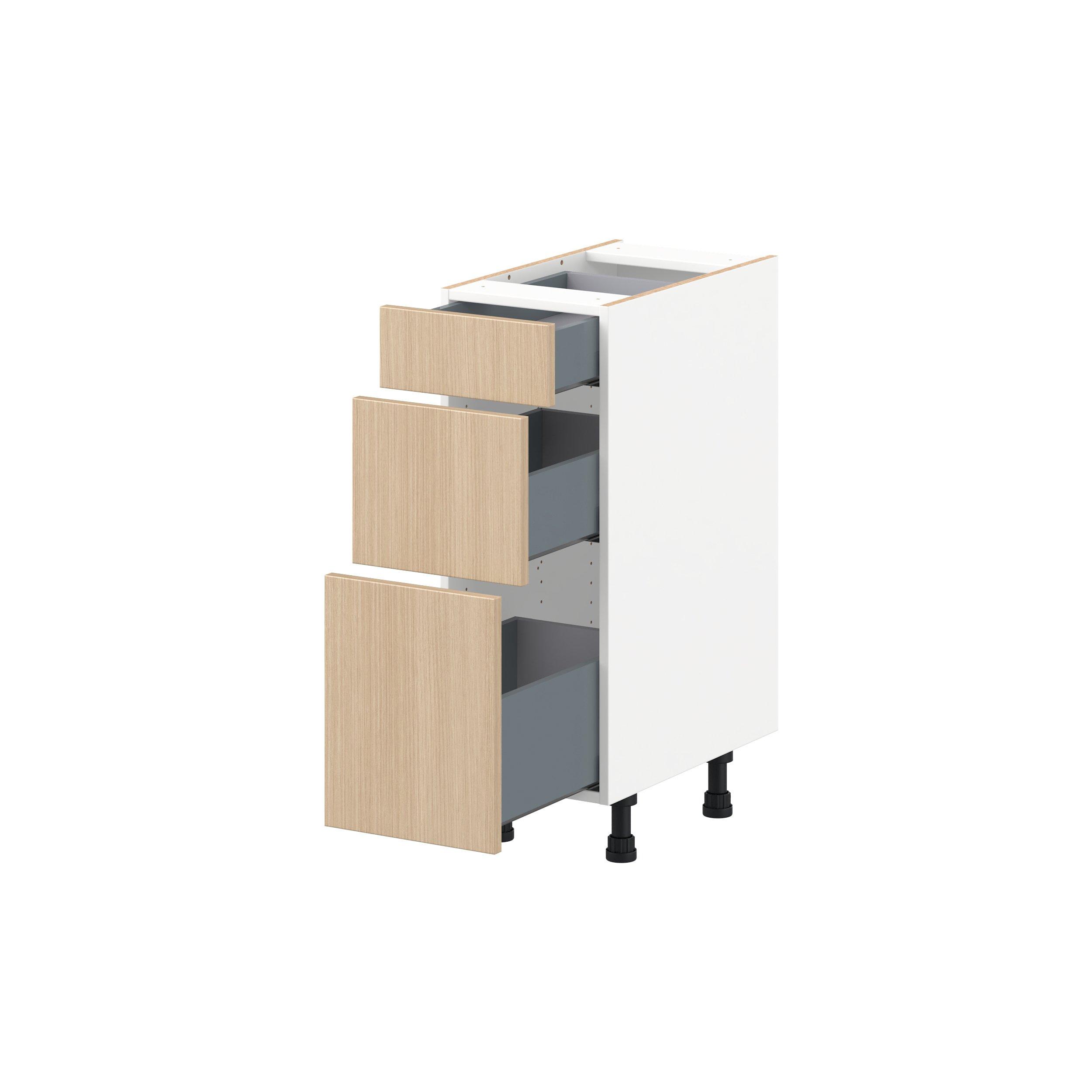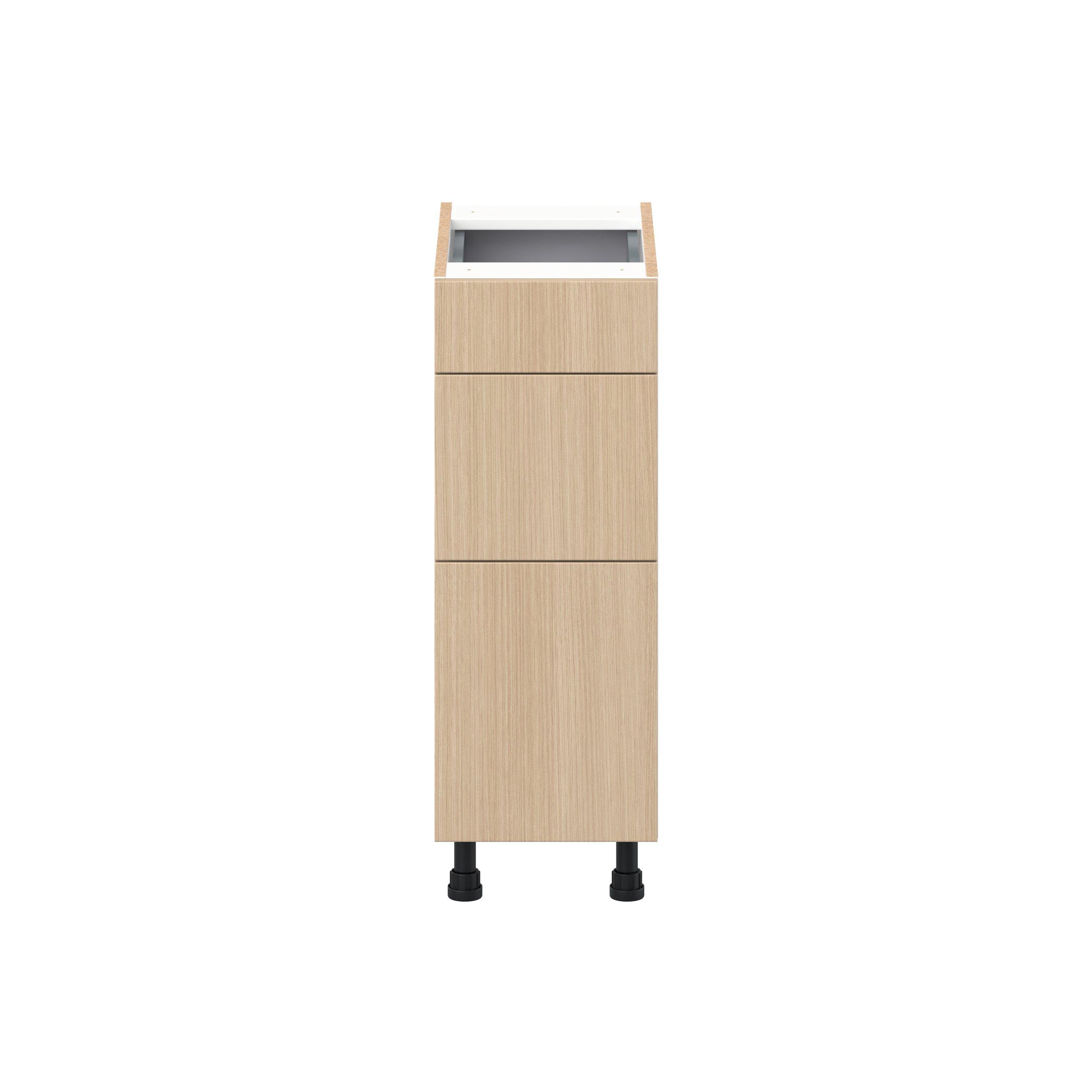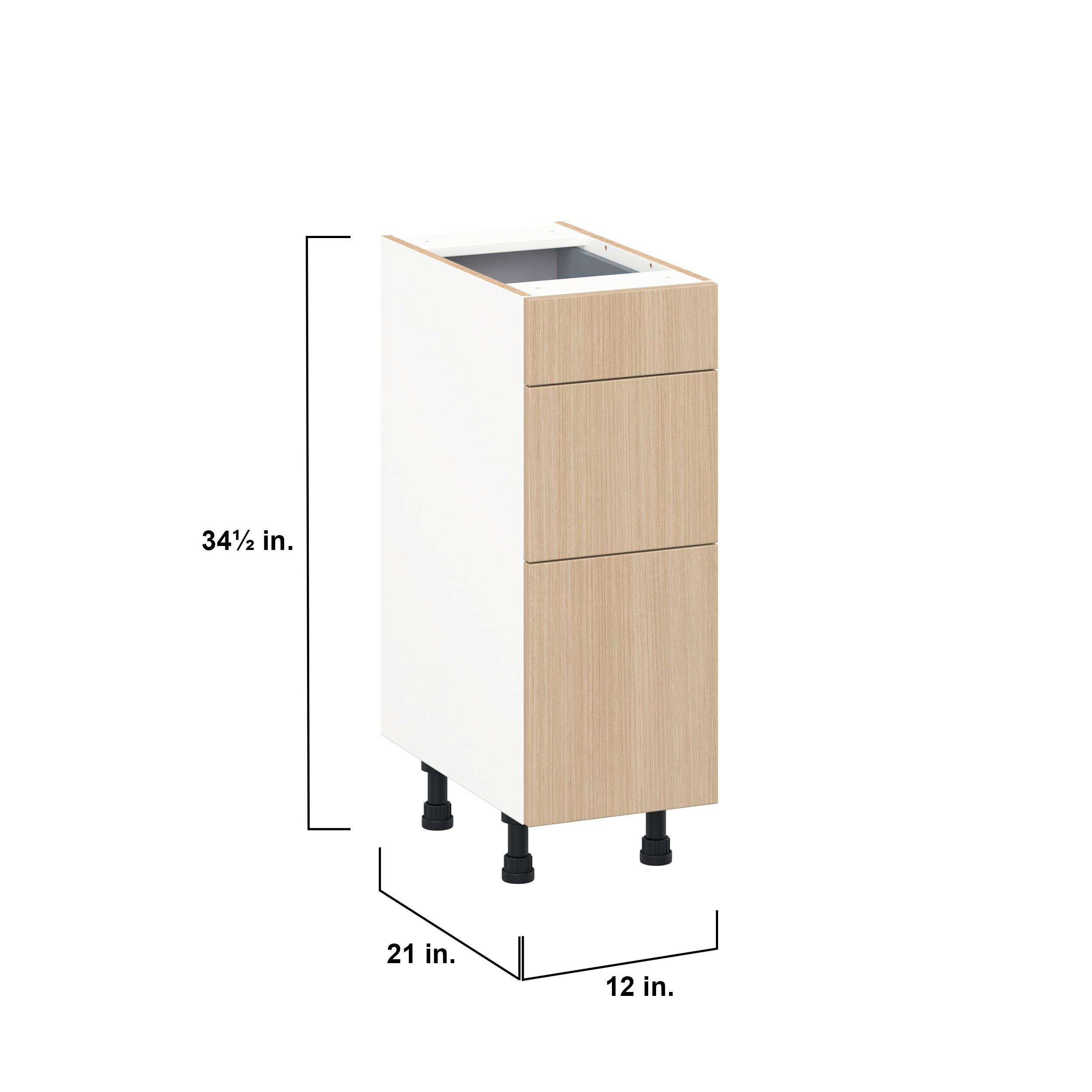 Elevate your project with the contemporary charm of Glenwood slab-style cabinets. Available in desert Mojavi oak and rich burnt walnut finishes, this collection captures the warmth and beauty of natural wood with the practicality of textured melamine. Crafted from one-piece MDF Studio Design Collection Glenwood 12 in. Mojavi Oak Vanity Drawer Base Cabinet - ADA is designed to resist hairline cracks while the easy-to-clean finish stands up to stains and moisture. Featuring 5-piece doors and dovetail drawer joints, these cabinets offer durability and elegance. This collection combines style with everyday storage solutions.