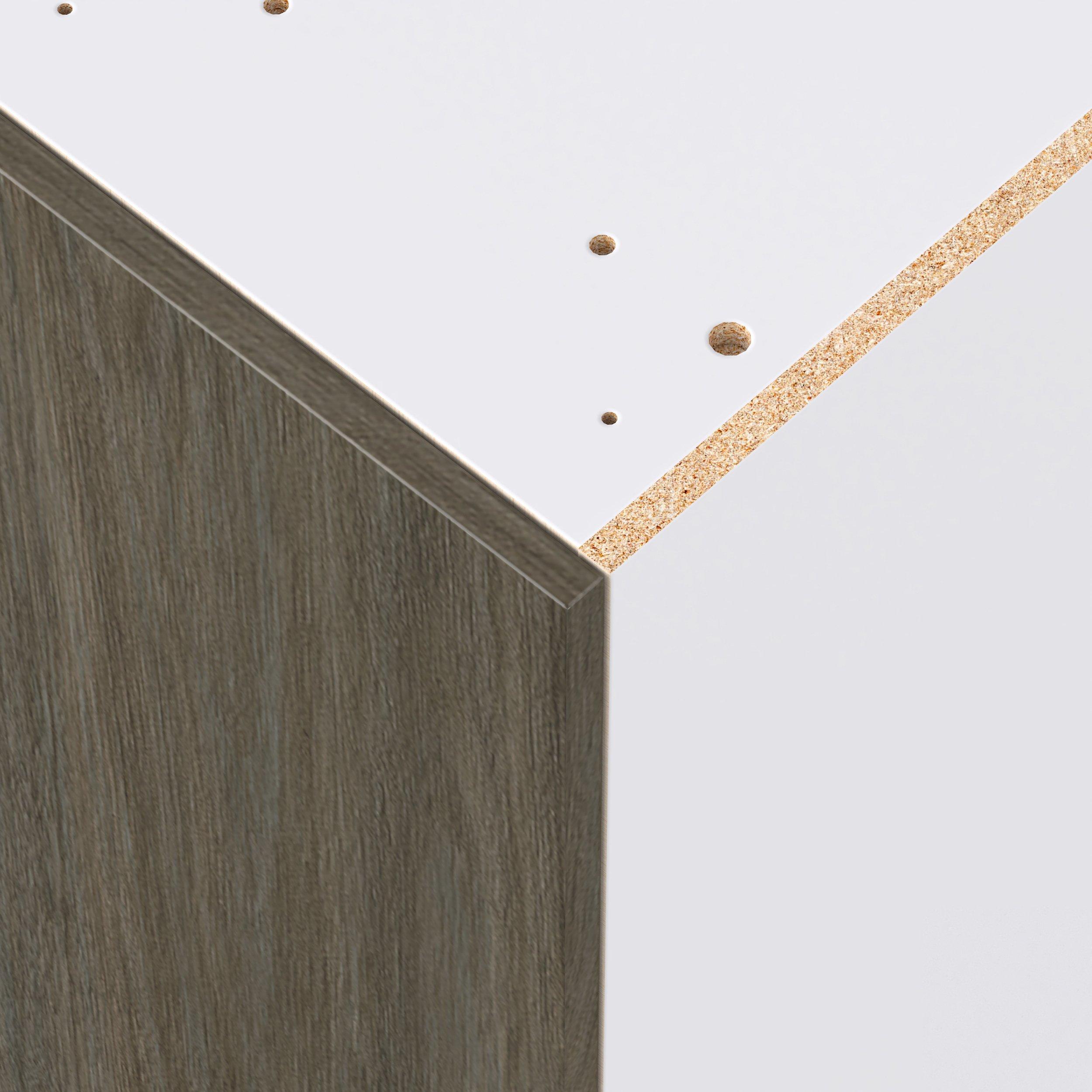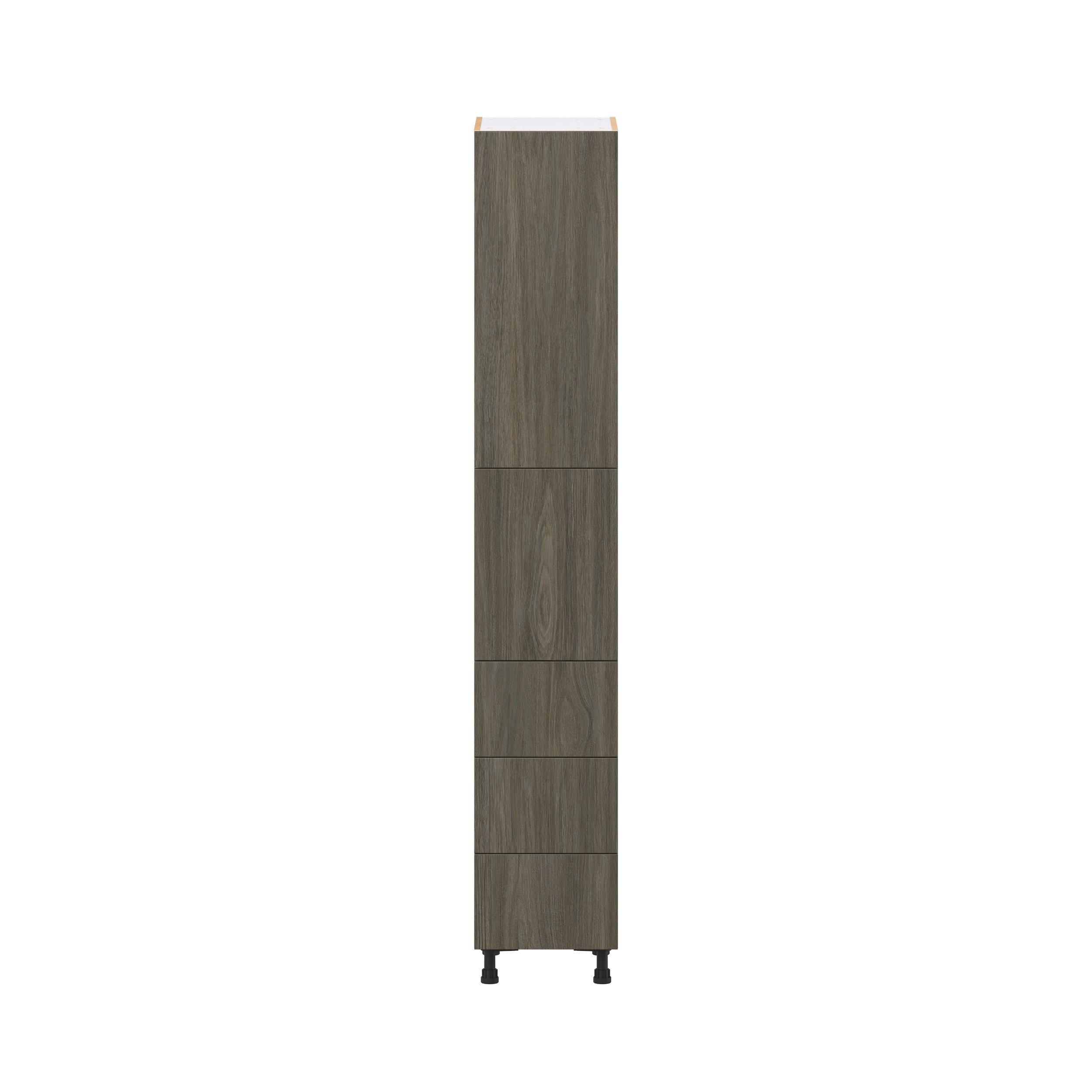 Elevate your project with the contemporary charm of Glenwood slab-style cabinets. Available in desert Mojavi oak and rich burnt walnut finishes, this collection captures the warmth and beauty of natural wood with the practicality of textured melamine. Crafted from one-piece MDF Studio Design Collection Glenwood 15 in. Burnt Walnut Door and Drawer Pantry Cabinet with Inner Pull-Out is designed to resist hairline cracks while the easy-to-clean finish stands up to stains and moisture. Featuring 5-piece doors and dovetail drawer joints, these cabinets offer durability and elegance. This collection combines style with everyday storage solutions.