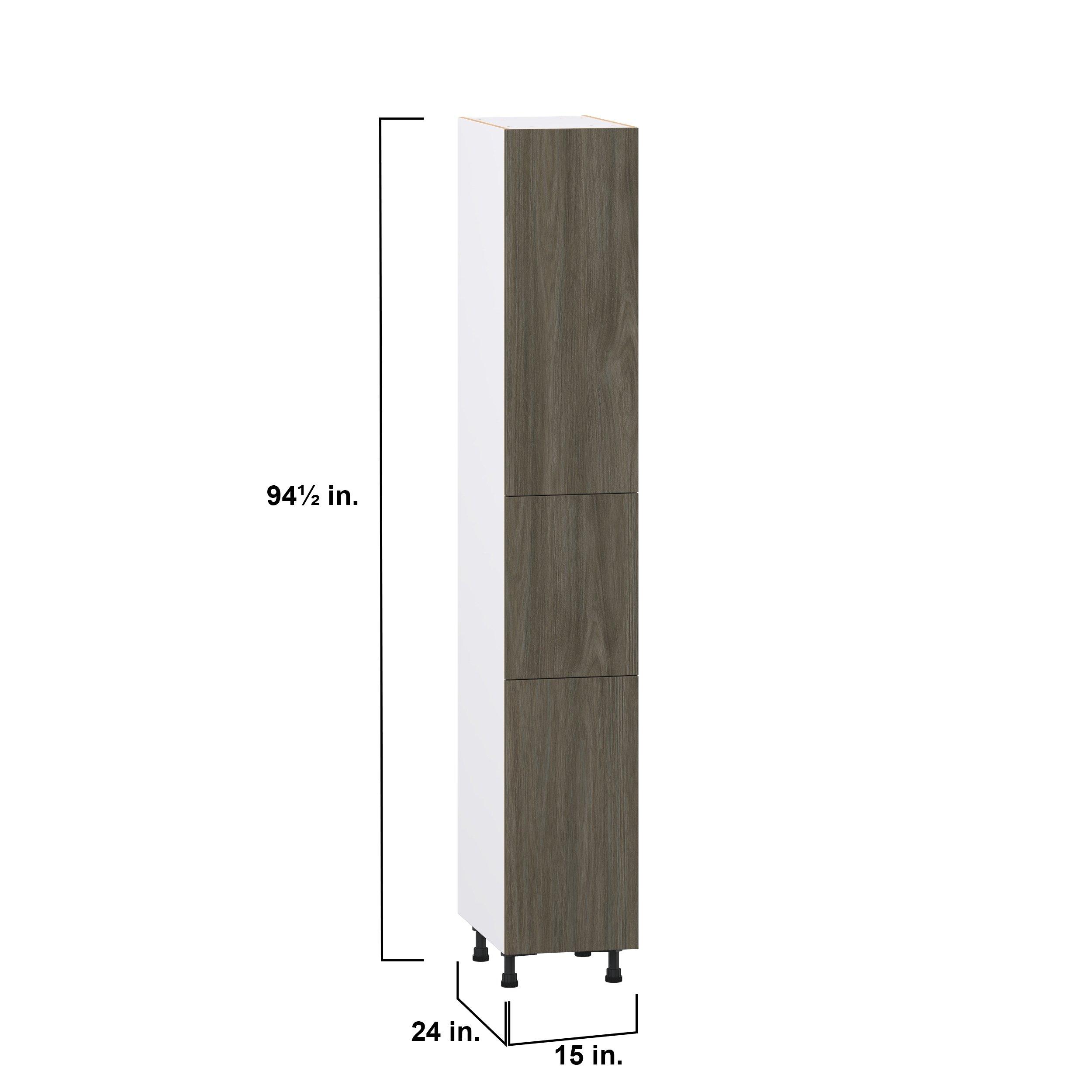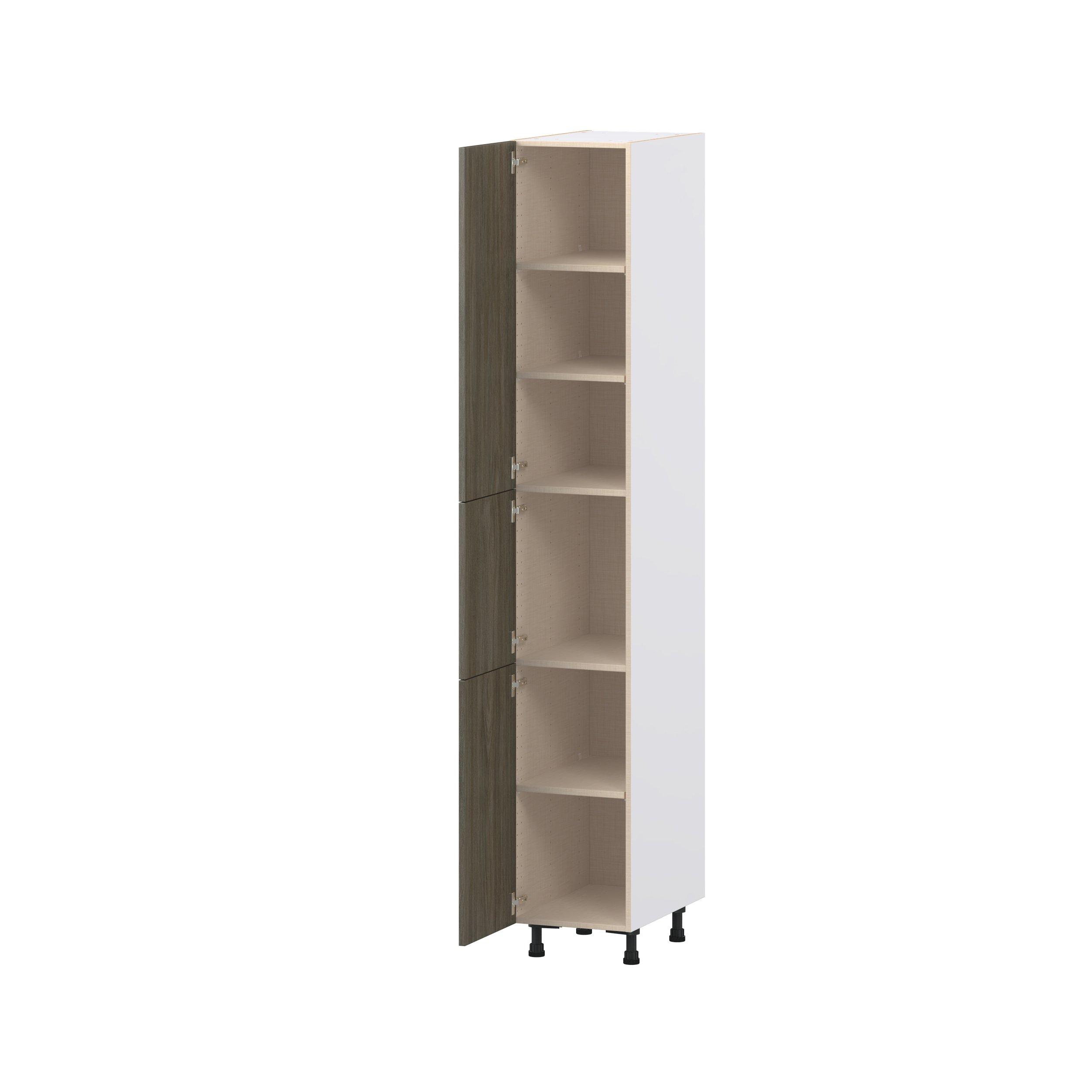 Elevate your project with the contemporary charm of Glenwood slab-style cabinets. Available in desert Mojavi oak and rich burnt walnut finishes, this collection captures the warmth and beauty of natural wood with the practicality of textured melamine. Crafted from one-piece MDF Studio Design Collection Glenwood 15 in. Burnt Walnut Door Pantry Cabinet is designed to resist hairline cracks while the easy-to-clean finish stands up to stains and moisture. Featuring 5-piece doors and dovetail drawer joints, these cabinets offer durability and elegance. This collection combines style with everyday storage solutions.