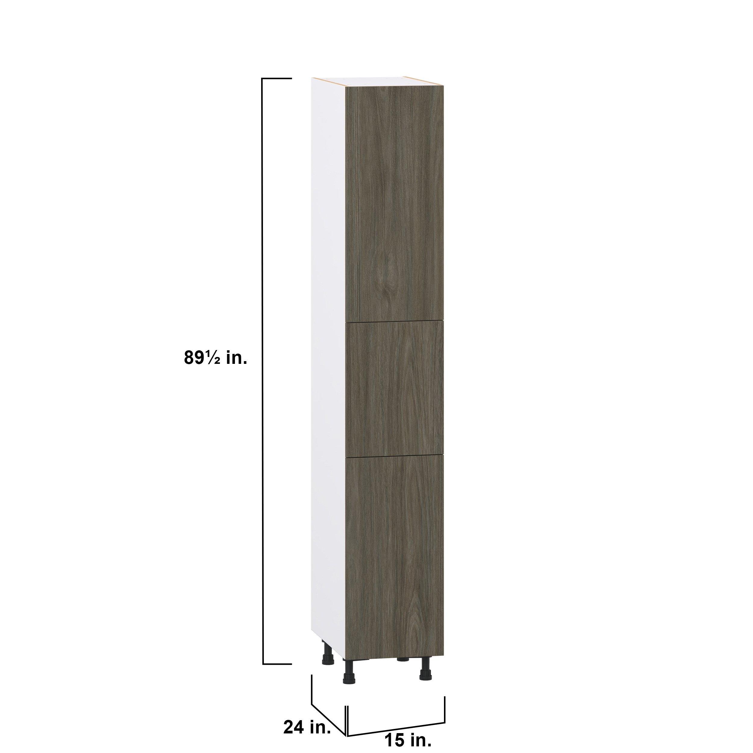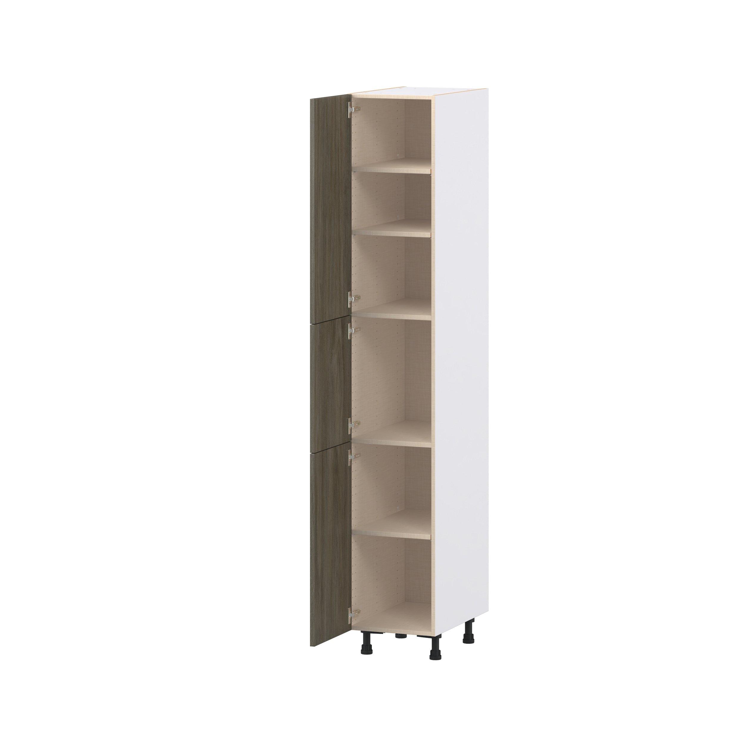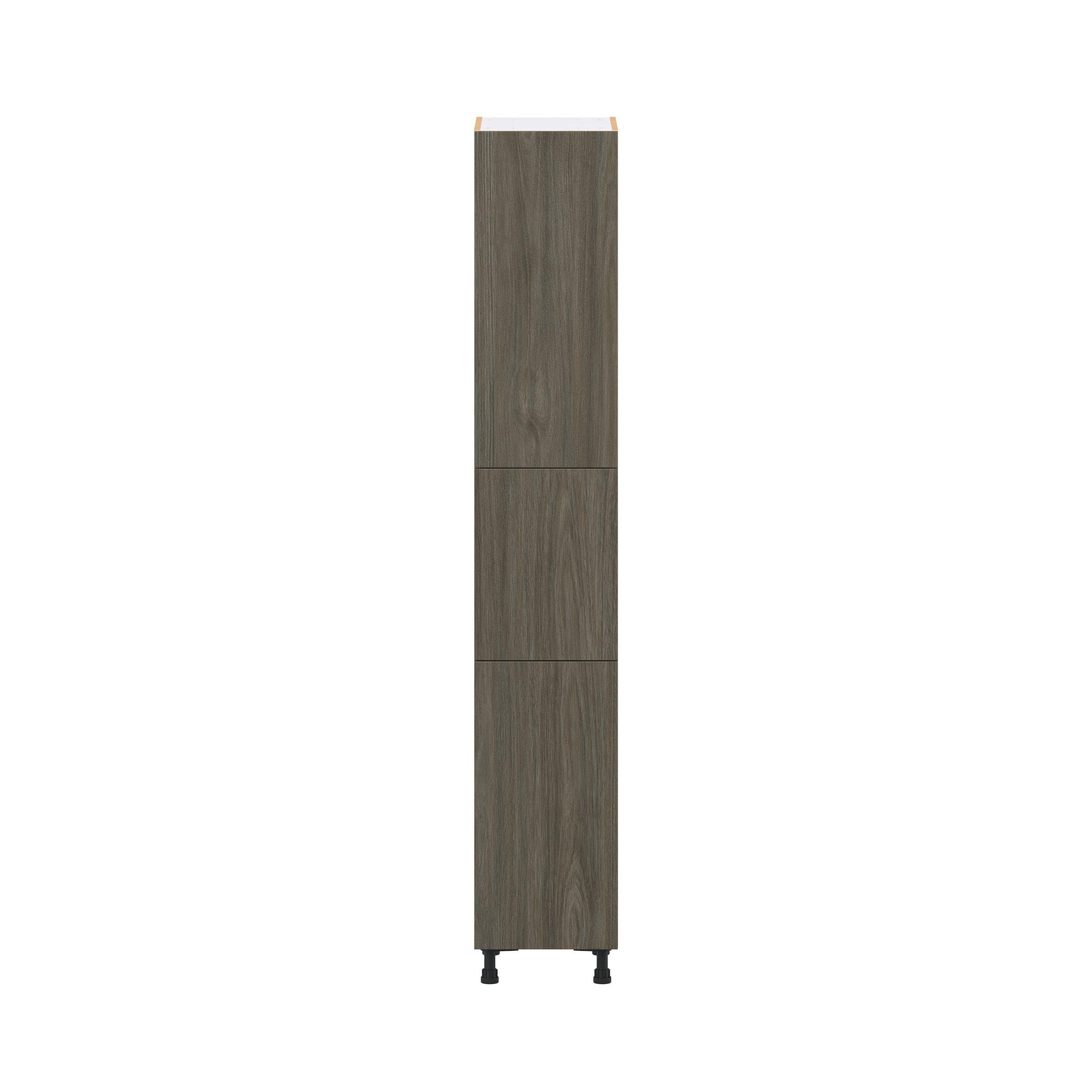 Elevate your project with the contemporary charm of Glenwood slab-style cabinets. Available in desert Mojavi oak and rich burnt walnut finishes, this collection captures the warmth and beauty of natural wood with the practicality of textured melamine. Crafted from one-piece MDF Studio Design Collection Glenwood 15 in. Burnt Walnut Door Pantry Cabinet is designed to resist hairline cracks while the easy-to-clean finish stands up to stains and moisture. Featuring 5-piece doors and dovetail drawer joints, these cabinets offer durability and elegance. This collection combines style with everyday storage solutions.