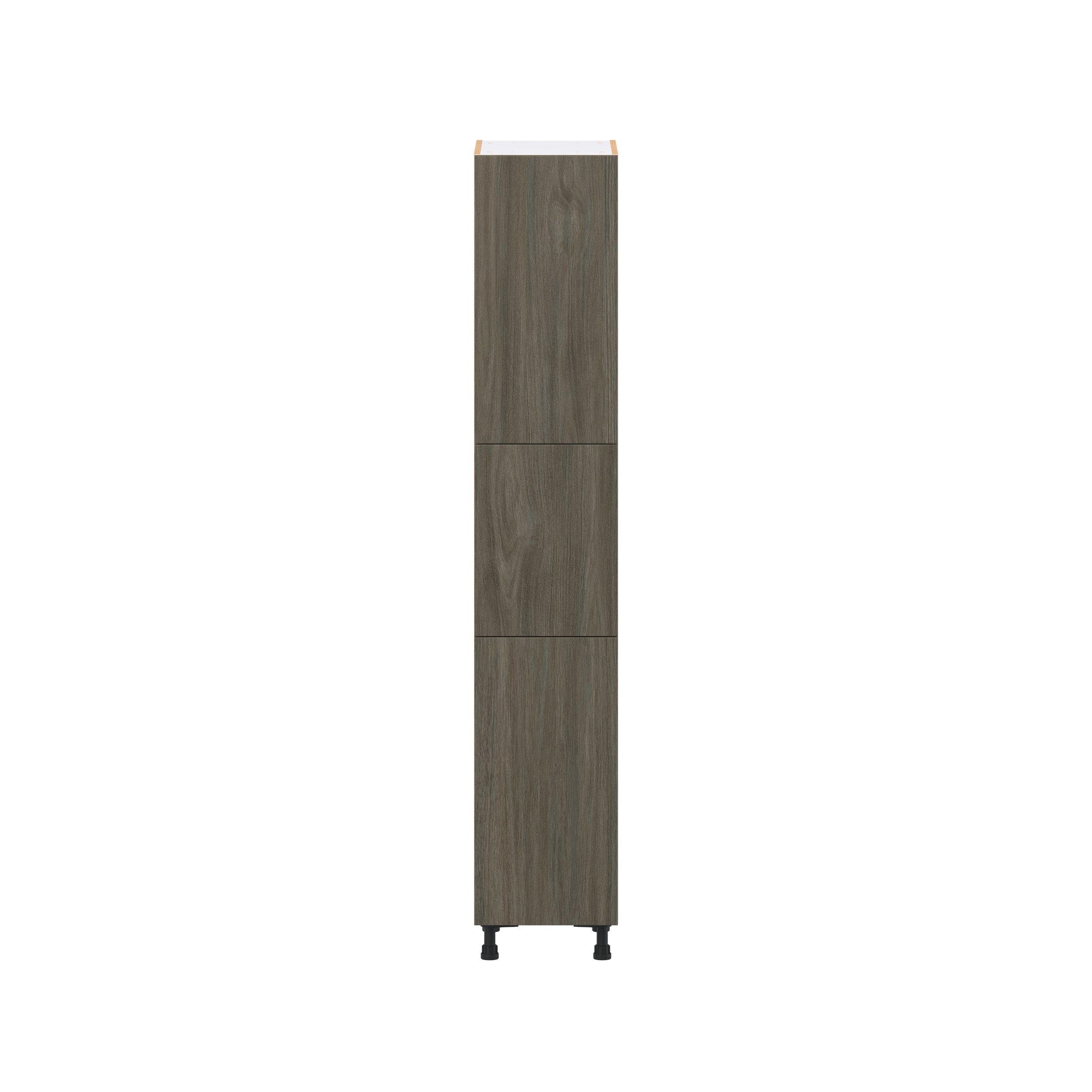 Elevate your project with the contemporary charm of Glenwood slab-style cabinets. Available in desert Mojavi oak and rich burnt walnut finishes, this collection captures the warmth and beauty of natural wood with the practicality of textured melamine. Crafted from one-piece MDF Studio Design Collection Glenwood 15 in. Burnt Walnut Door Pantry Cabinet is designed to resist hairline cracks while the easy-to-clean finish stands up to stains and moisture. Featuring 5-piece doors and dovetail drawer joints, these cabinets offer durability and elegance. This collection combines style with everyday storage solutions.