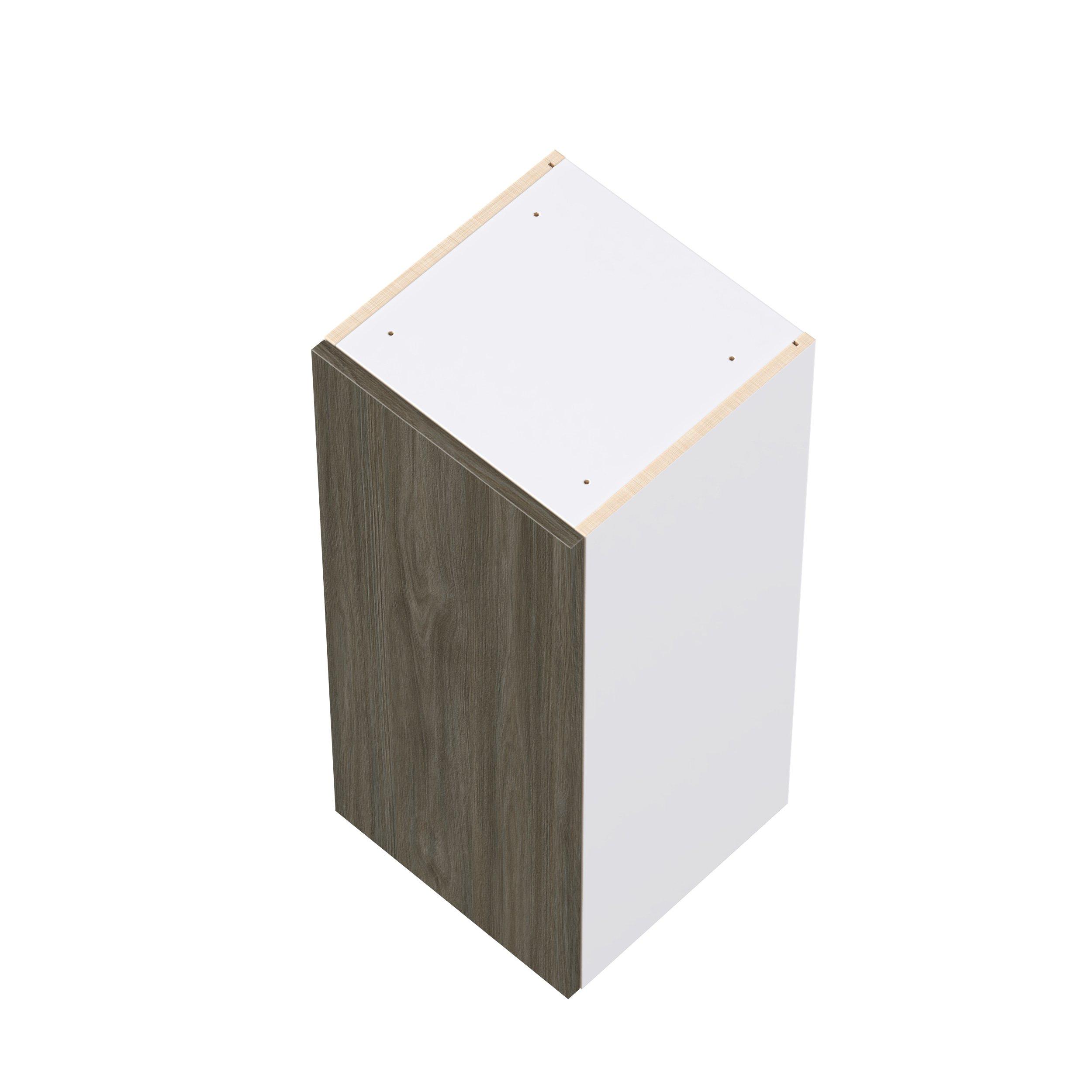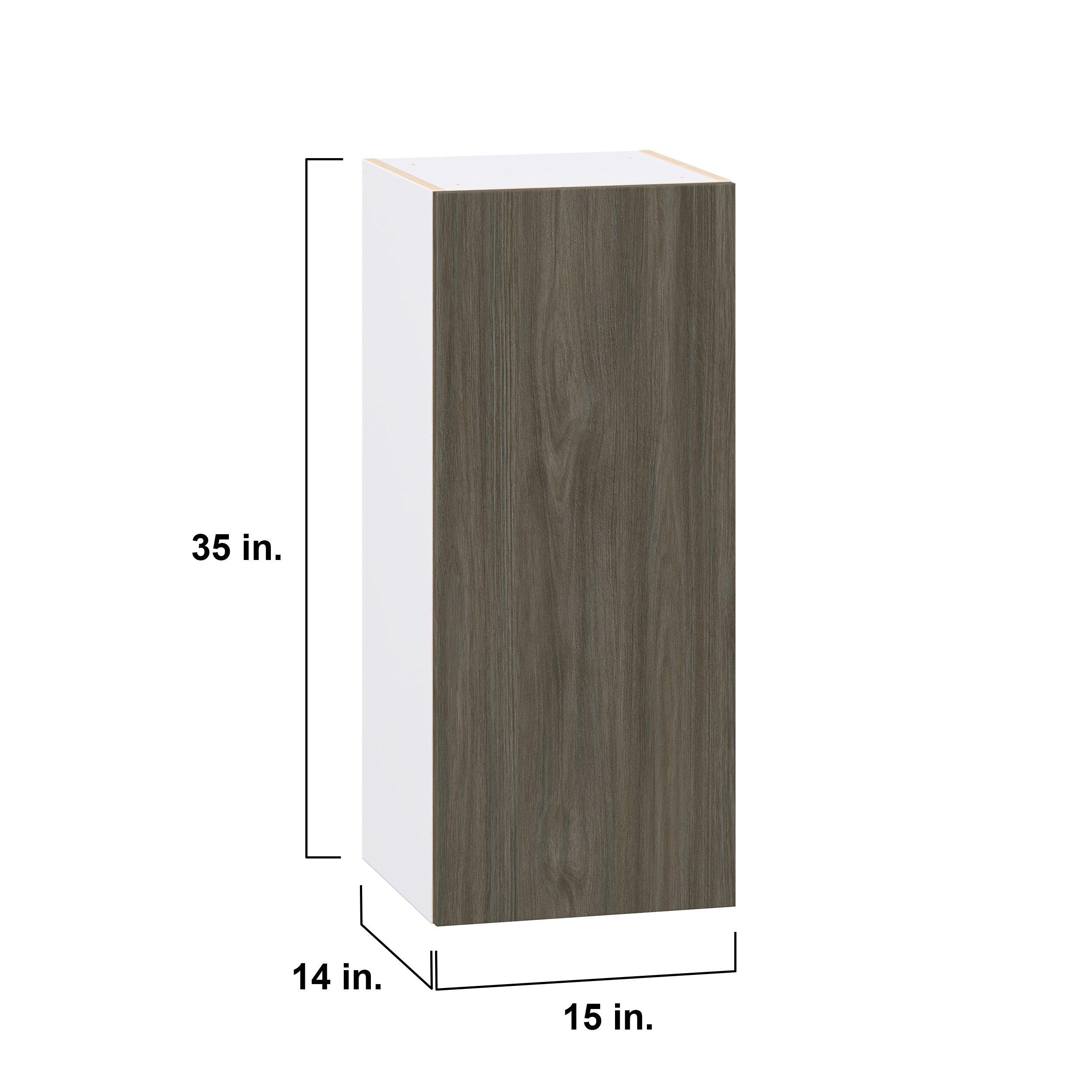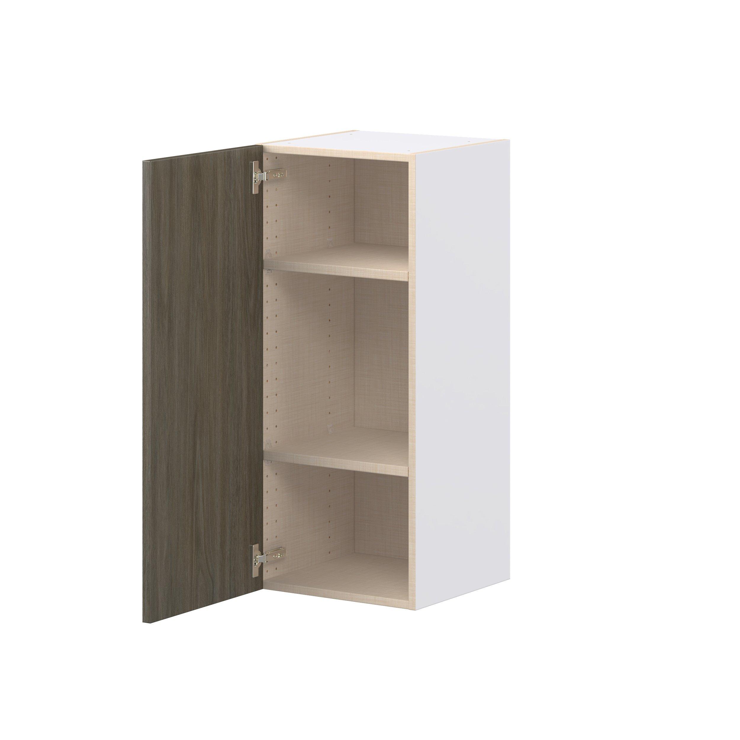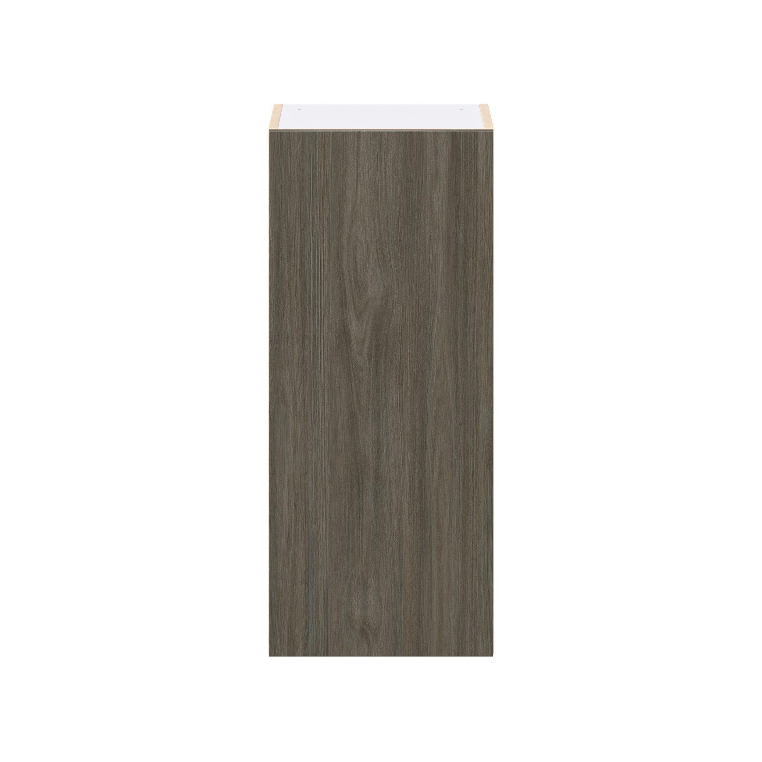 Elevate your project with the contemporary charm of Glenwood slab-style cabinets. Available in desert Mojavi oak and rich burnt walnut finishes, this collection captures the warmth and beauty of natural wood with the practicality of textured melamine. Crafted from one-piece MDF Studio Design Collection Glenwood 15 in. Burnt Walnut Door Wall Cabinet is designed to resist hairline cracks while the easy-to-clean finish stands up to stains and moisture. Featuring 5-piece doors and dovetail drawer joints, these cabinets offer durability and elegance. This collection combines style with everyday storage solutions.
