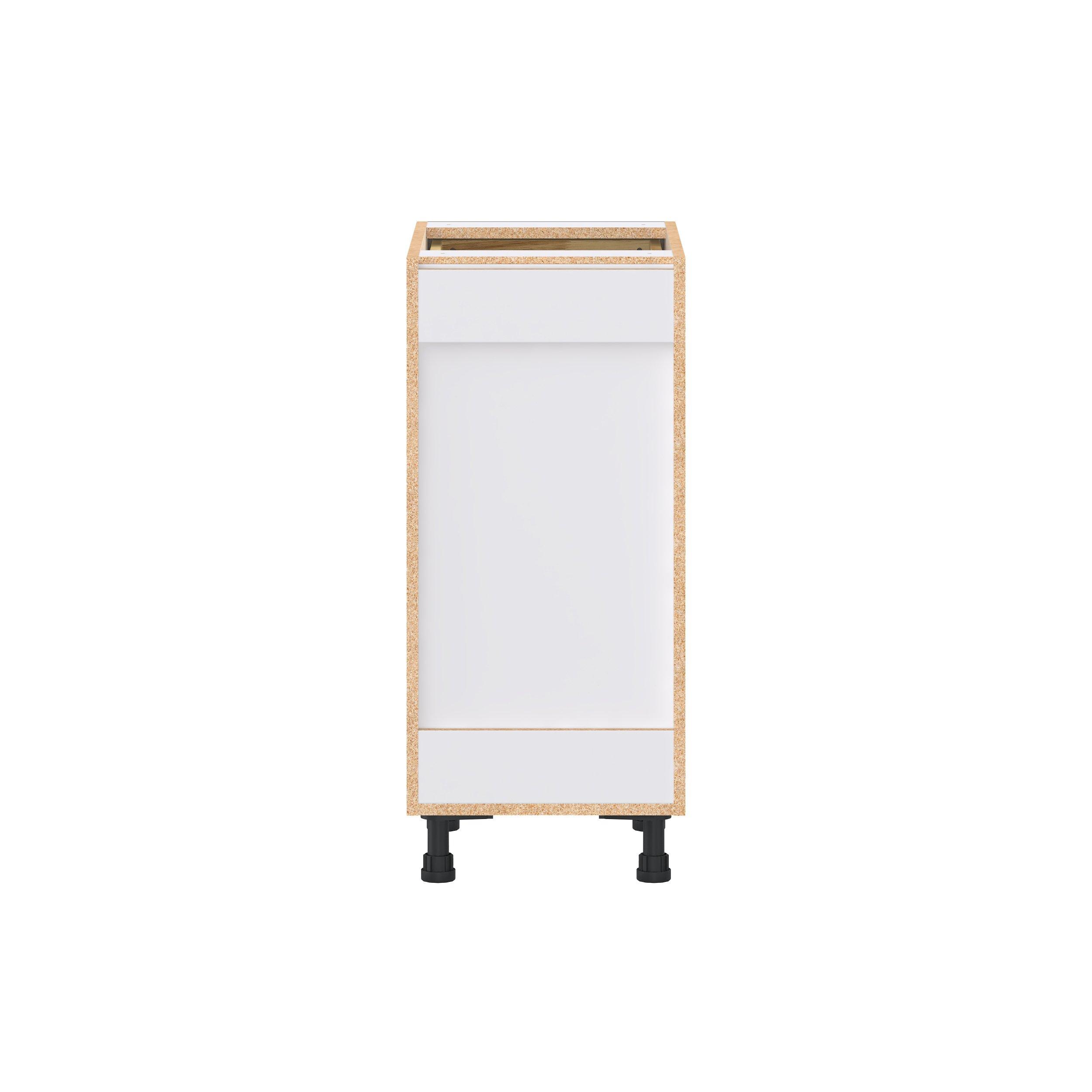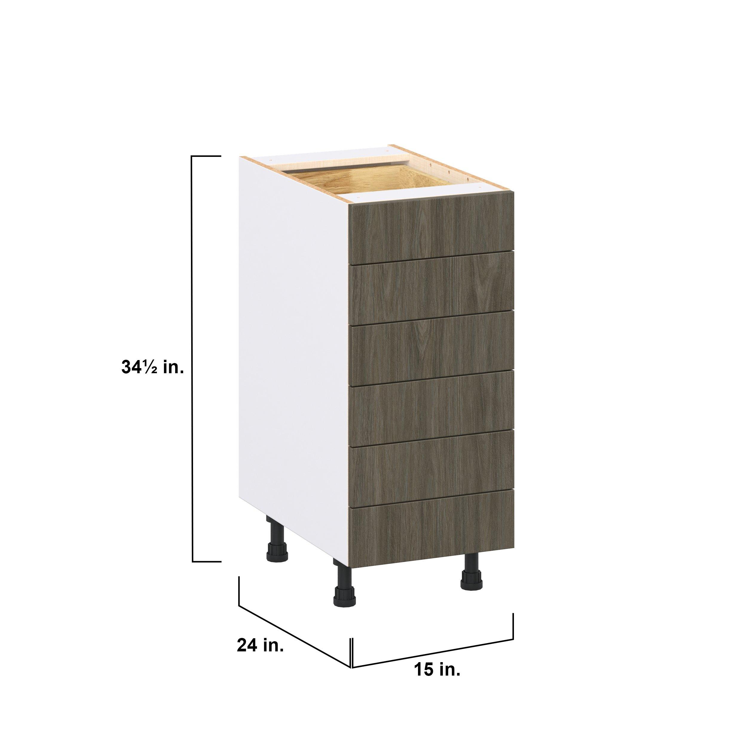 Elevate your project with the contemporary charm of Glenwood slab-style cabinets. Available in desert Mojavi oak and rich burnt walnut finishes, this collection captures the warmth and beauty of natural wood with the practicality of textured melamine. Crafted from one-piece MDF Studio Design Collection Glenwood 15 in. Burnt Walnut Drawer Base Cabinet is designed to resist hairline cracks while the easy-to-clean finish stands up to stains and moisture. Featuring 5-piece doors and dovetail drawer joints, these cabinets offer durability and elegance. This collection combines style with everyday storage solutions.