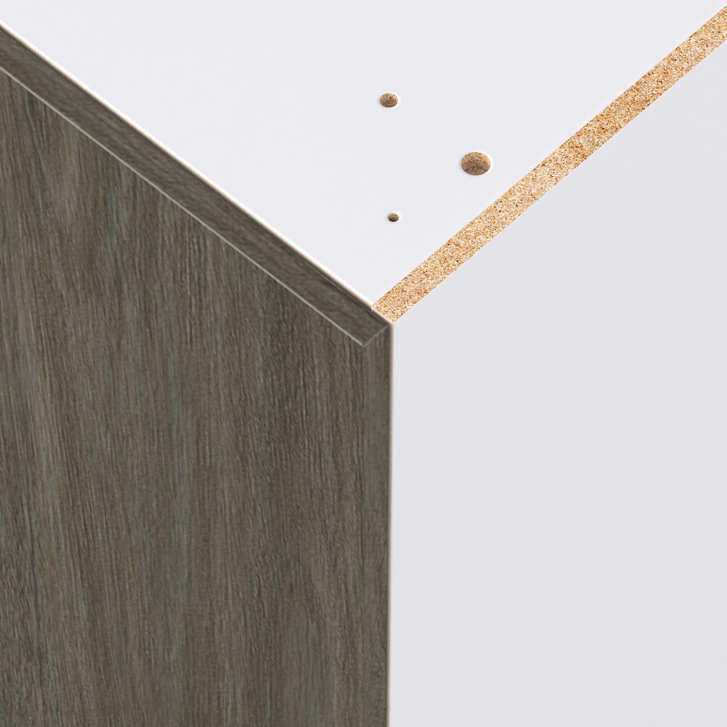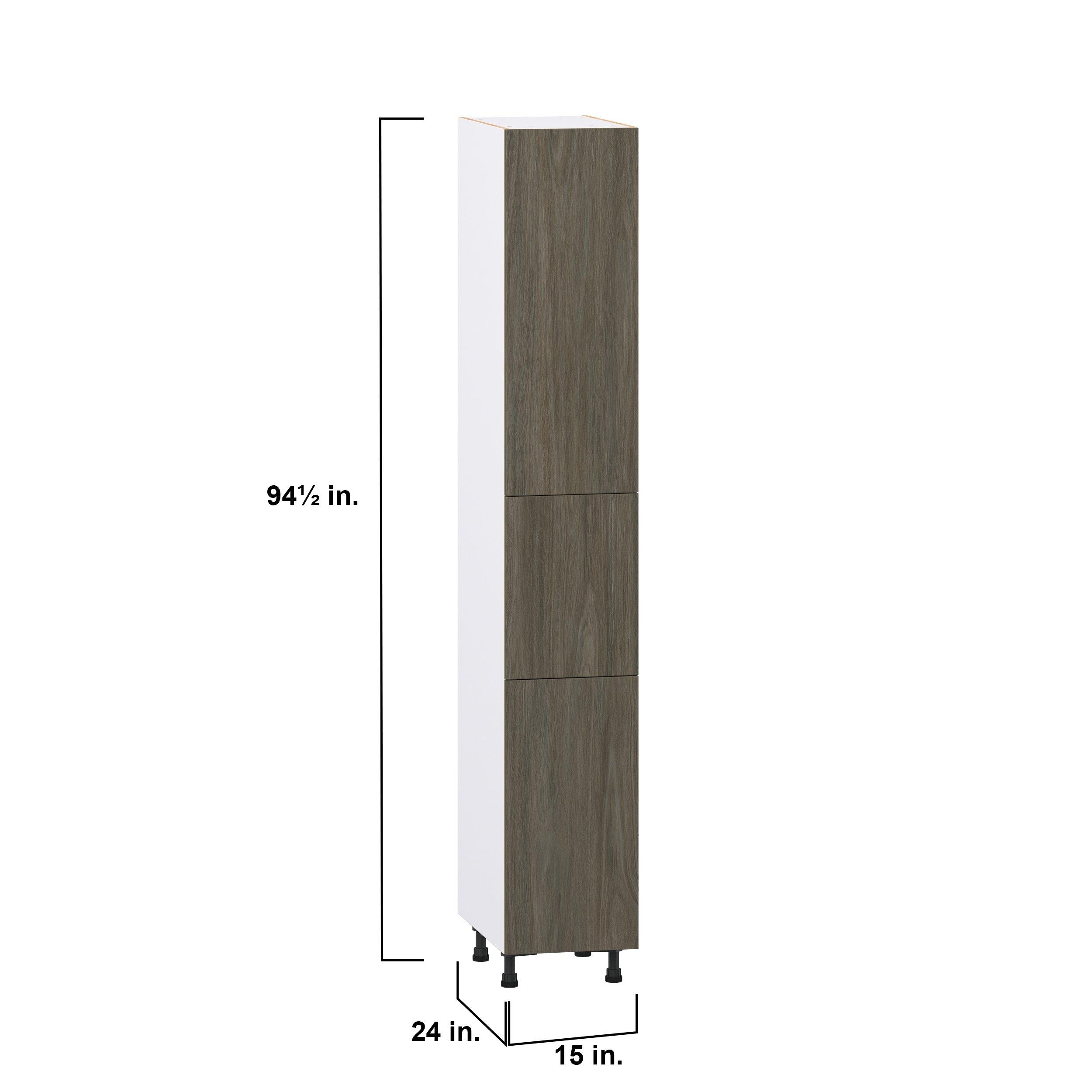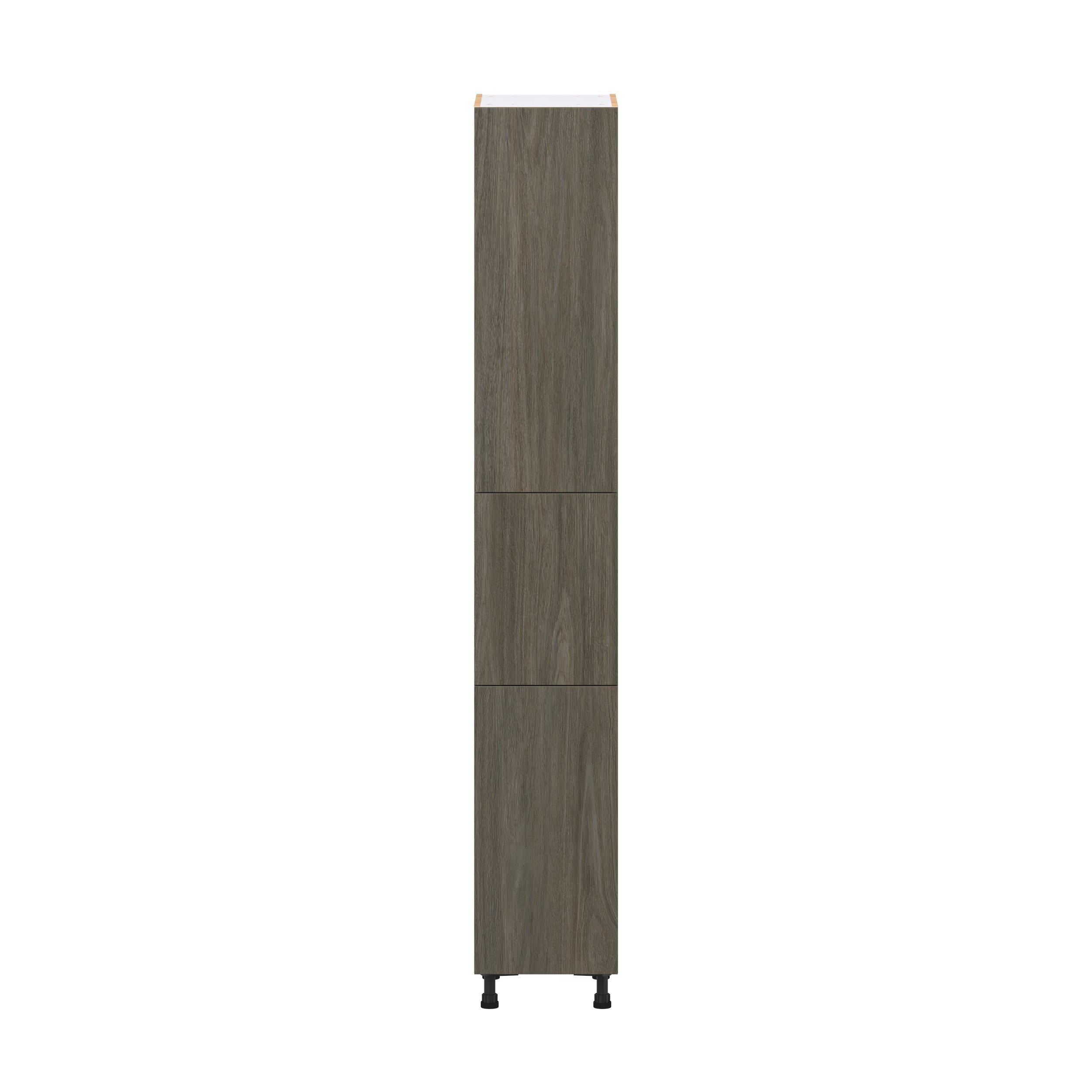 Elevate your project with the contemporary charm of Glenwood slab-style cabinets. Available in desert Mojavi oak and rich burnt walnut finishes, this collection captures the warmth and beauty of natural wood with the practicality of textured melamine. Crafted from one-piece MDF Studio Design Collection Glenwood 15 in. Burnt Walnut Pantry Cabinet with Inner Pull-Out Drawer is designed to resist hairline cracks while the easy-to-clean finish stands up to stains and moisture. Featuring 5-piece doors and dovetail drawer joints, these cabinets offer durability and elegance. This collection combines style with everyday storage solutions.