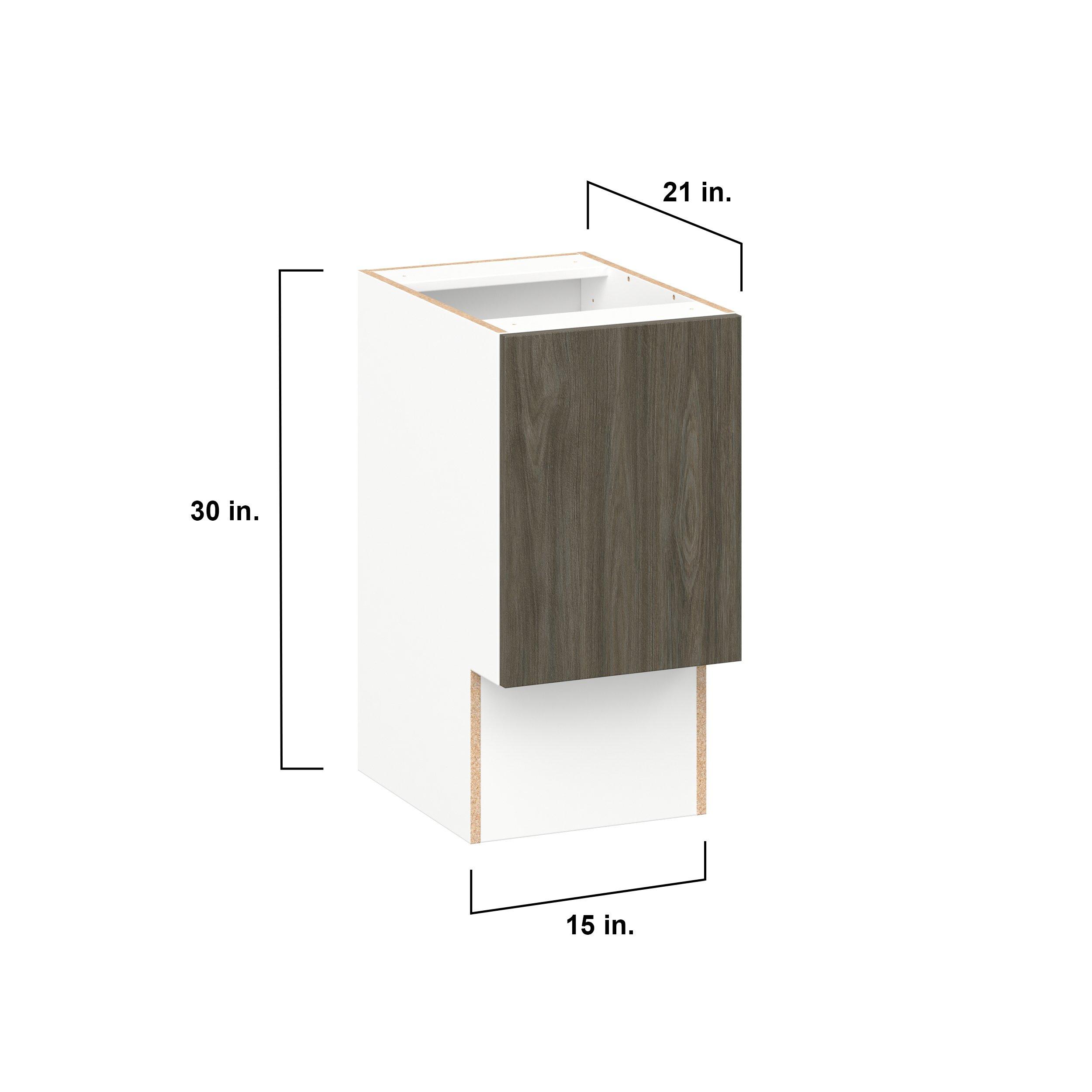 Elevate your project with the contemporary charm of Glenwood slab-style cabinets. Available in desert Mojavi oak and rich burnt walnut finishes, this collection captures the warmth and beauty of natural wood with the practicality of textured melamine. Crafted from one-piece MDF Studio Design Collection Glenwood 15 in. Burnt Walnut Vanity Base Cabinet - ADA is designed to resist hairline cracks while the easy-to-clean finish stands up to stains and moisture. Featuring 5-piece doors and dovetail drawer joints, these cabinets offer durability and elegance. This collection combines style with everyday storage solutions.