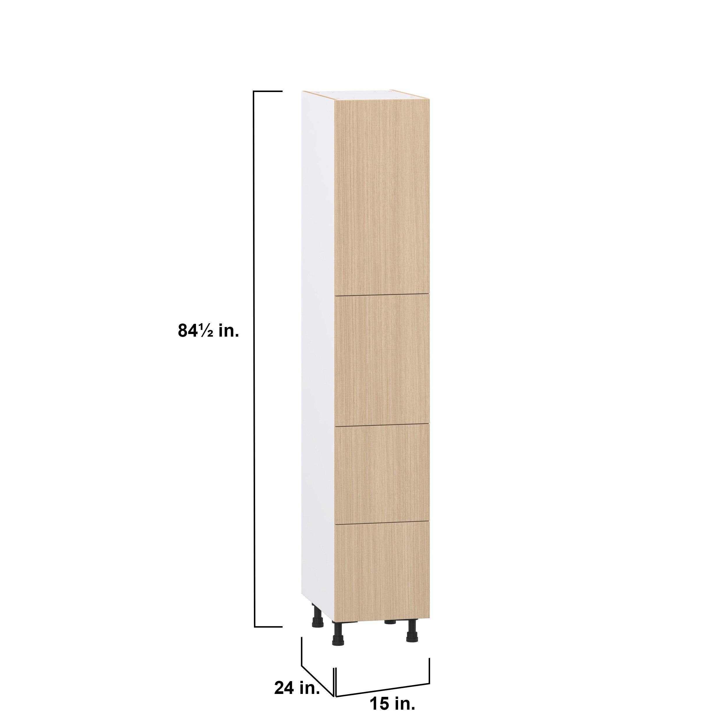 Elevate your project with the contemporary charm of Glenwood slab-style cabinets. Available in desert Mojavi oak and rich burnt walnut finishes, this collection captures the warmth and beauty of natural wood with the practicality of textured melamine. Crafted from one-piece MDF Studio Design Collection Glenwood 15 in. Mojavi Oak Door and Drawer Pantry Cabinet with Inner Pull-Out is designed to resist hairline cracks while the easy-to-clean finish stands up to stains and moisture. Featuring 5-piece doors and dovetail drawer joints, these cabinets offer durability and elegance. This collection combines style with everyday storage solutions.