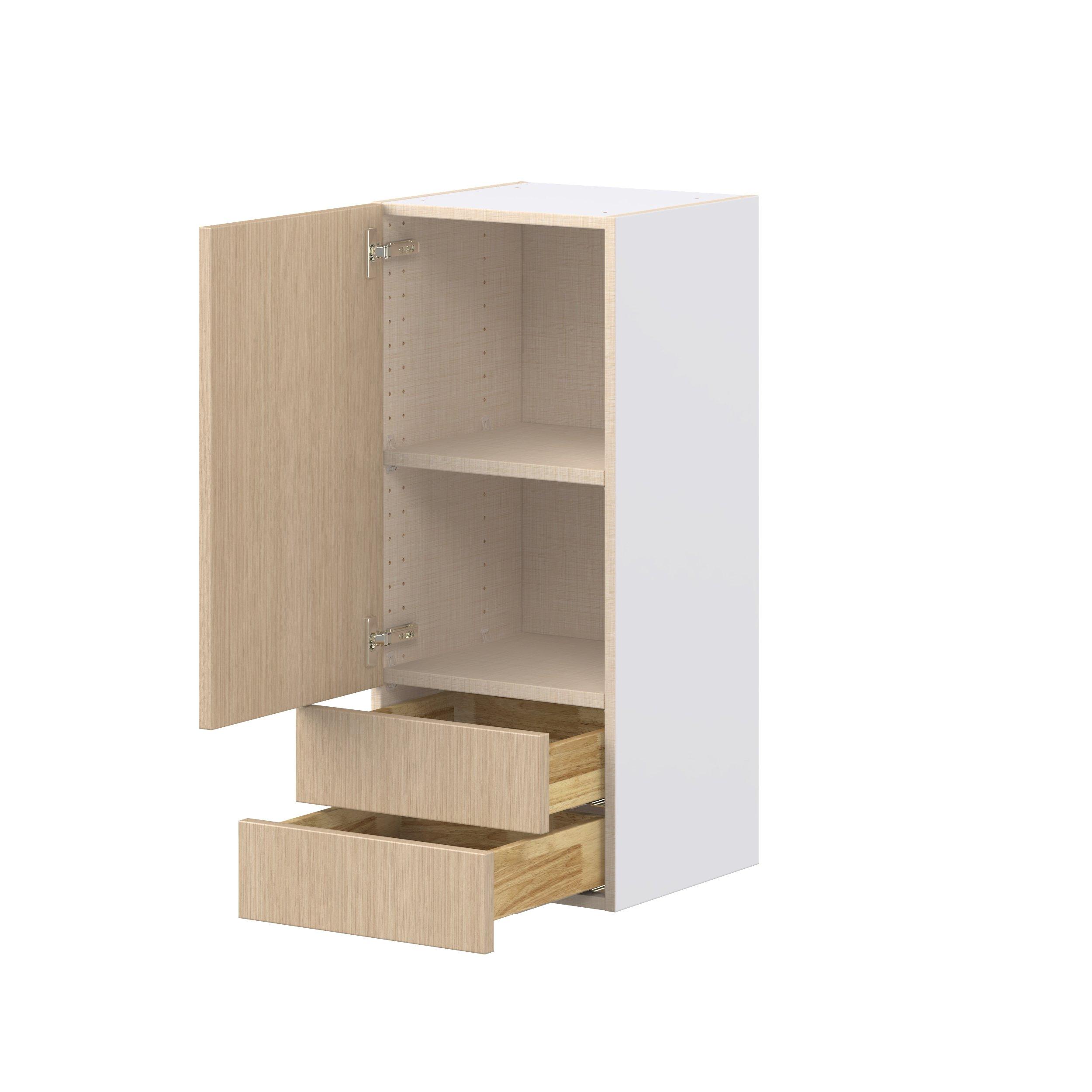 Elevate your project with the contemporary charm of Glenwood slab-style cabinets. Available in desert Mojavi oak and rich burnt walnut finishes, this collection captures the warmth and beauty of natural wood with the practicality of textured melamine. Crafted from one-piece MDF Studio Design Collection Glenwood 15 in. Mojavi Oak Door and Drawer Wall Cabinet is designed to resist hairline cracks while the easy-to-clean finish stands up to stains and moisture. Featuring 5-piece doors and dovetail drawer joints, these cabinets offer durability and elegance. This collection combines style with everyday storage solutions.