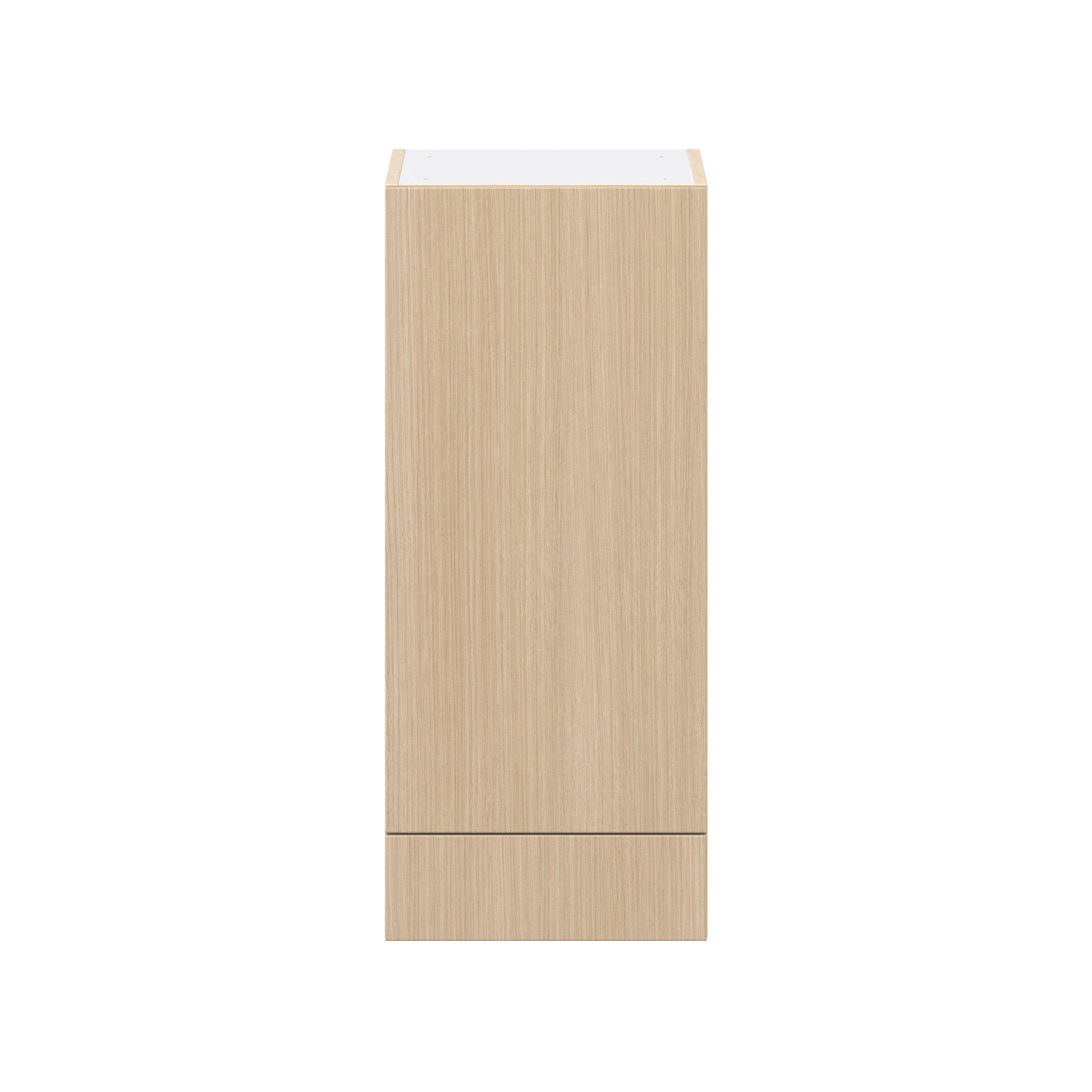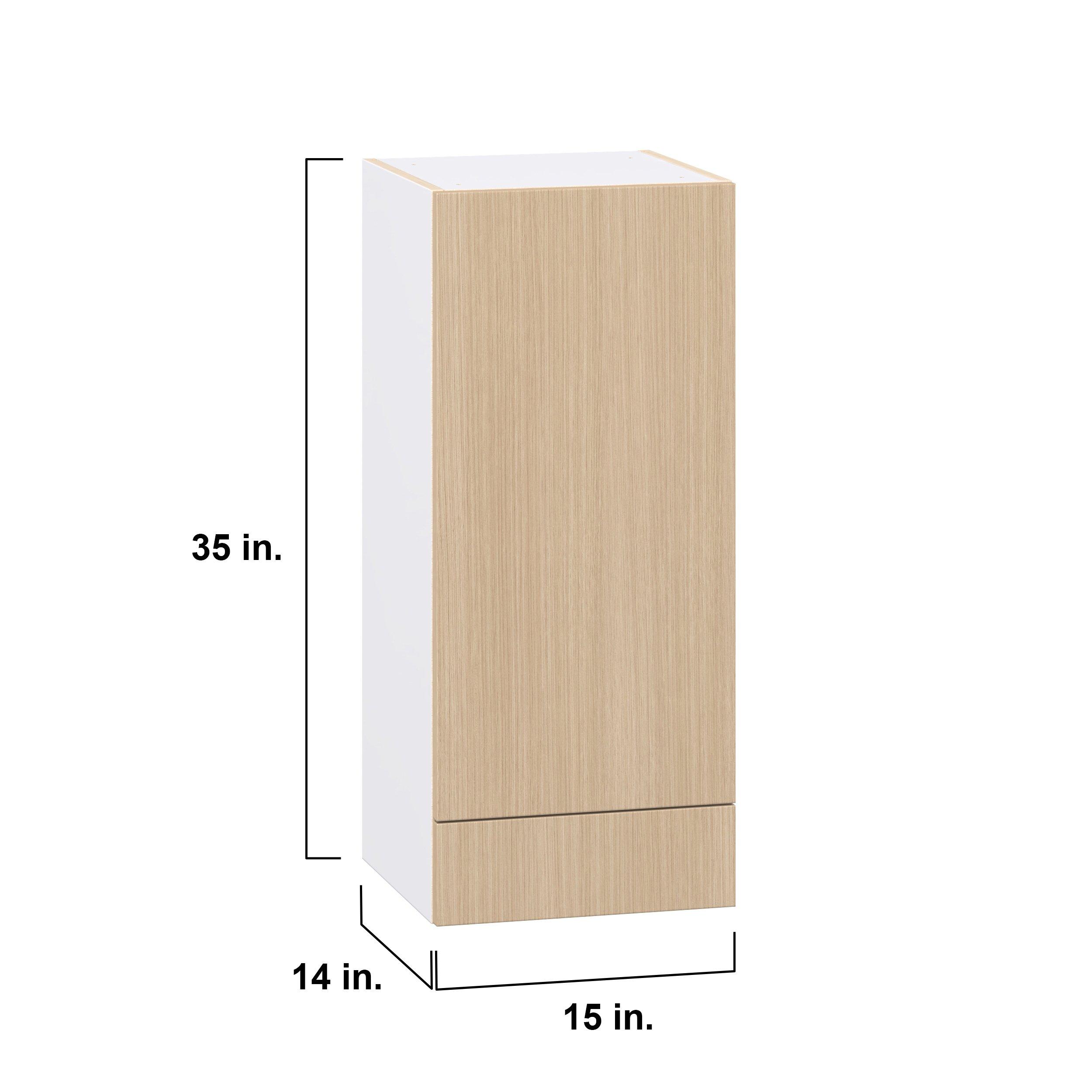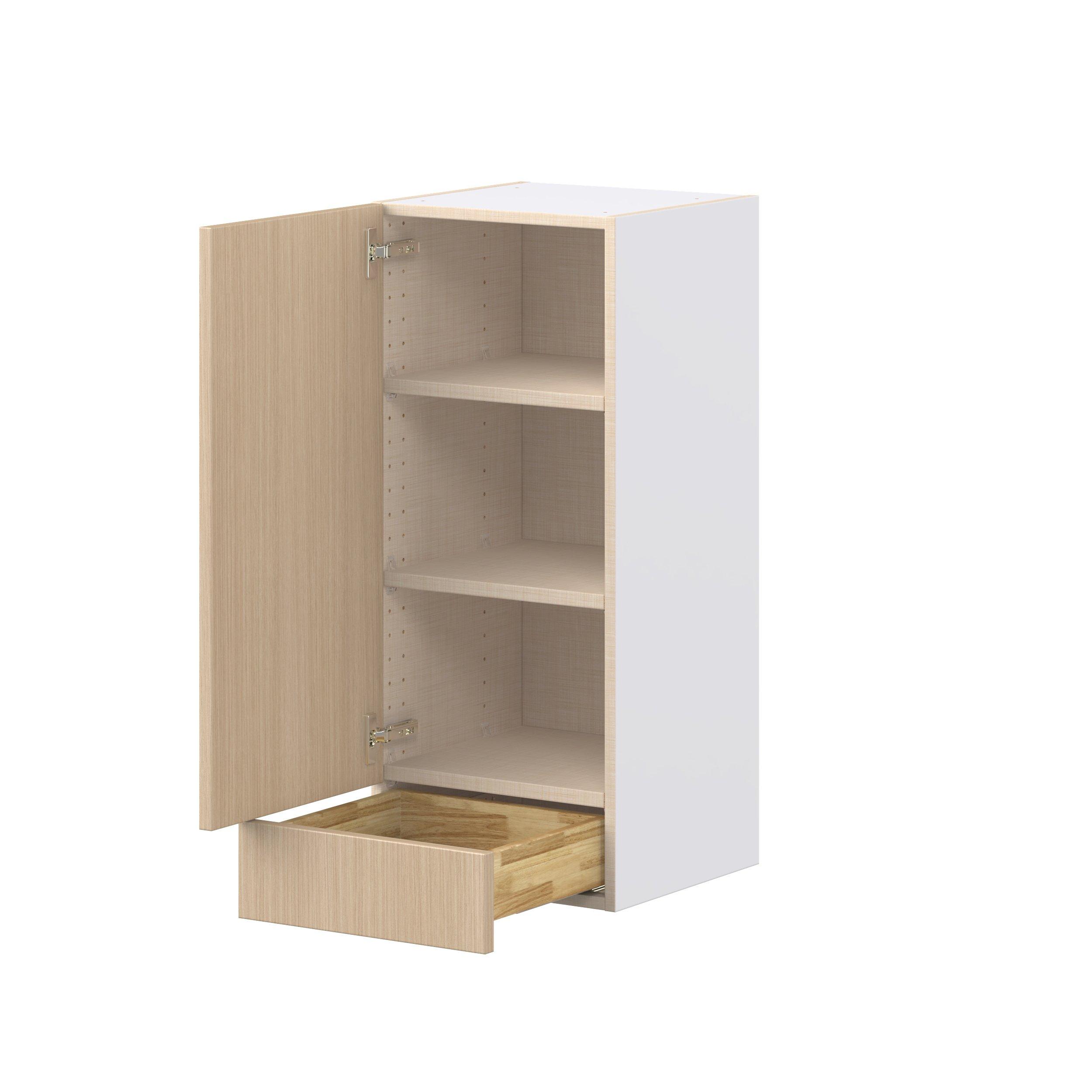 Elevate your project with the contemporary charm of Glenwood slab-style cabinets. Available in desert Mojavi oak and rich burnt walnut finishes, this collection captures the warmth and beauty of natural wood with the practicality of textured melamine. Crafted from one-piece MDF Studio Design Collection Glenwood 15 in. Mojavi Oak Door and Drawer Wall Cabinet is designed to resist hairline cracks while the easy-to-clean finish stands up to stains and moisture. Featuring 5-piece doors and dovetail drawer joints, these cabinets offer durability and elegance. This collection combines style with everyday storage solutions.