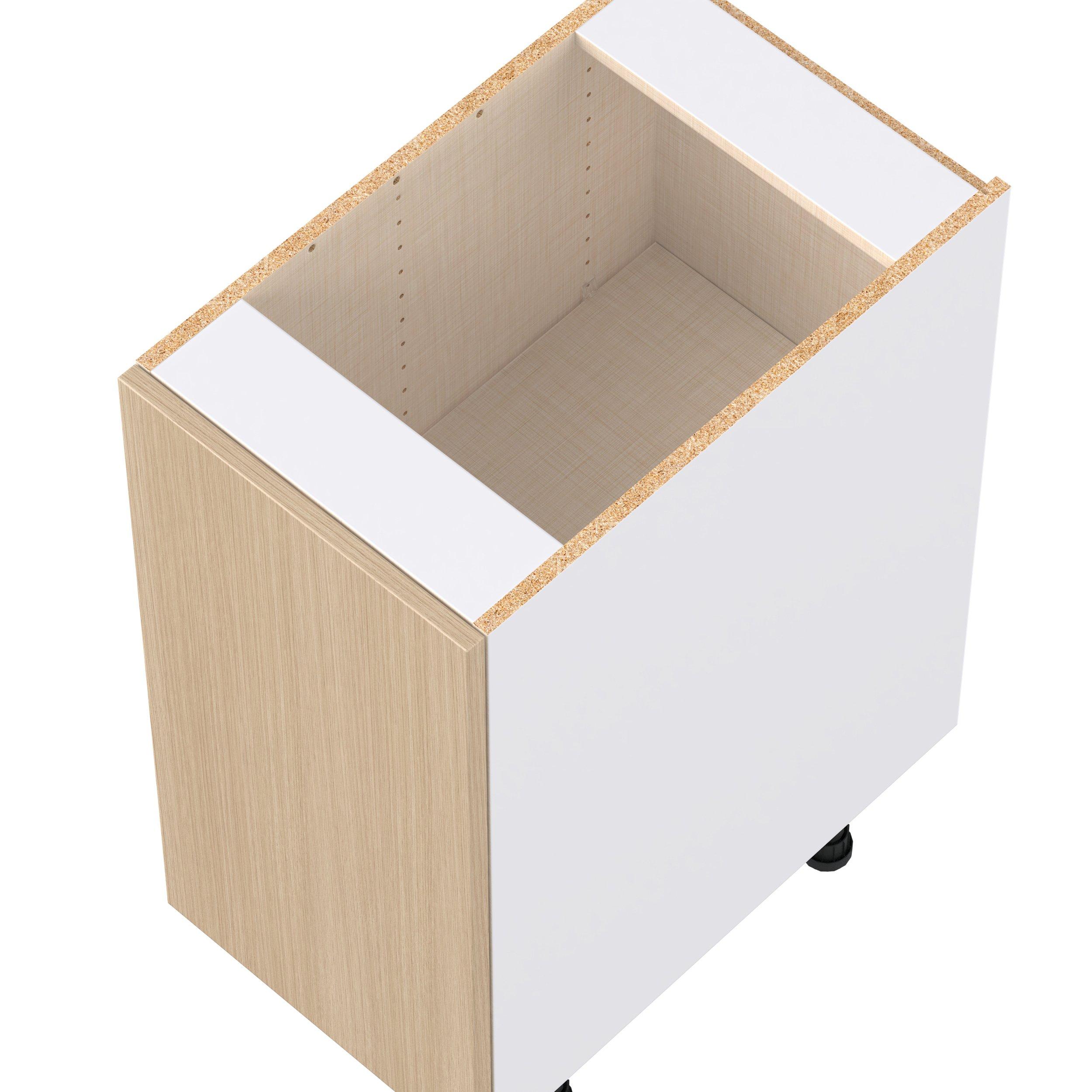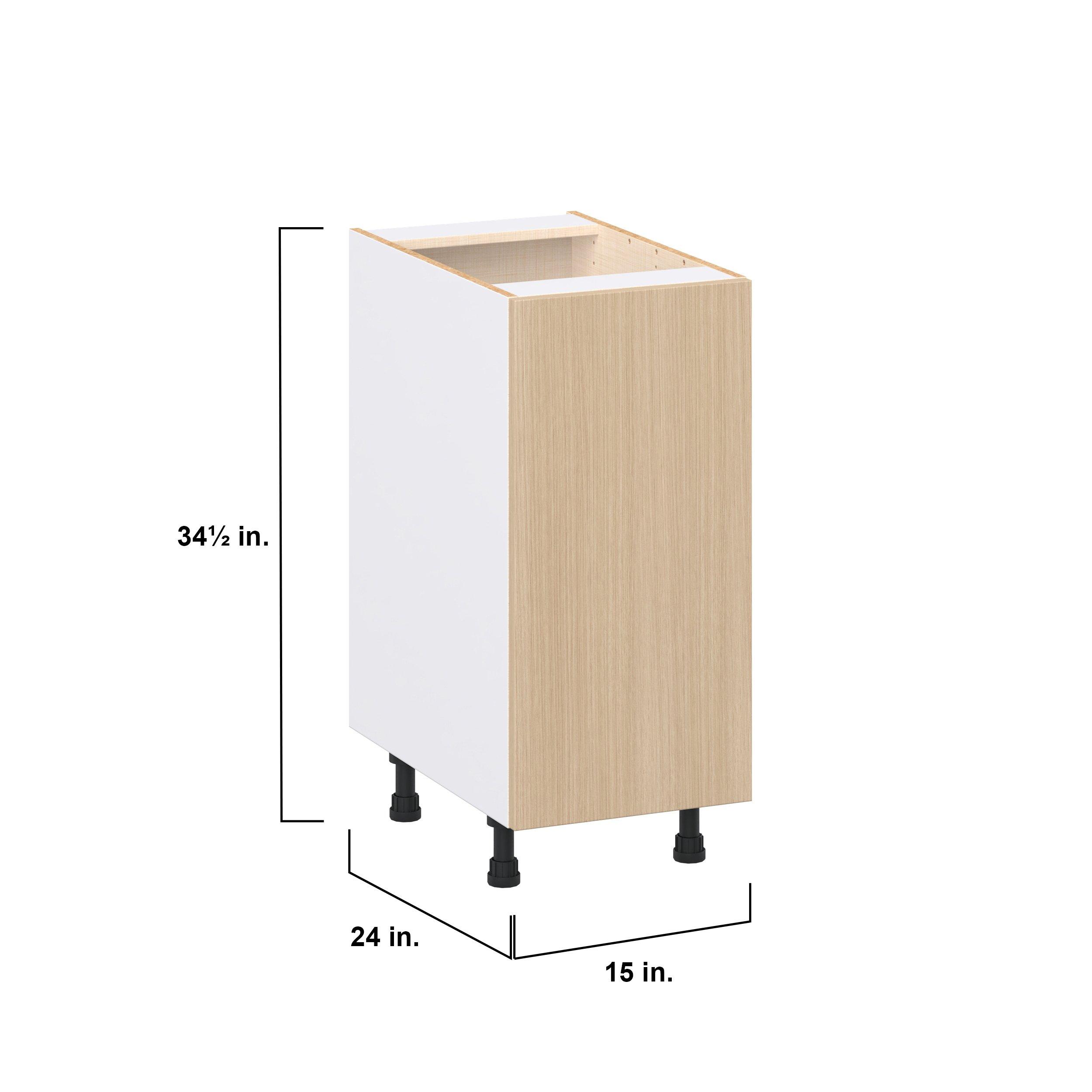 Elevate your project with the contemporary charm of Glenwood slab-style cabinets. Available in desert Mojavi oak and rich burnt walnut finishes, this collection captures the warmth and beauty of natural wood with the practicality of textured melamine. Crafted from one-piece MDF Studio Design Collection Glenwood 15 in. Mojavi Oak Door Base Cabinet is designed to resist hairline cracks while the easy-to-clean finish stands up to stains and moisture. Featuring 5-piece doors and dovetail drawer joints, these cabinets offer durability and elegance. This collection combines style with everyday storage solutions.