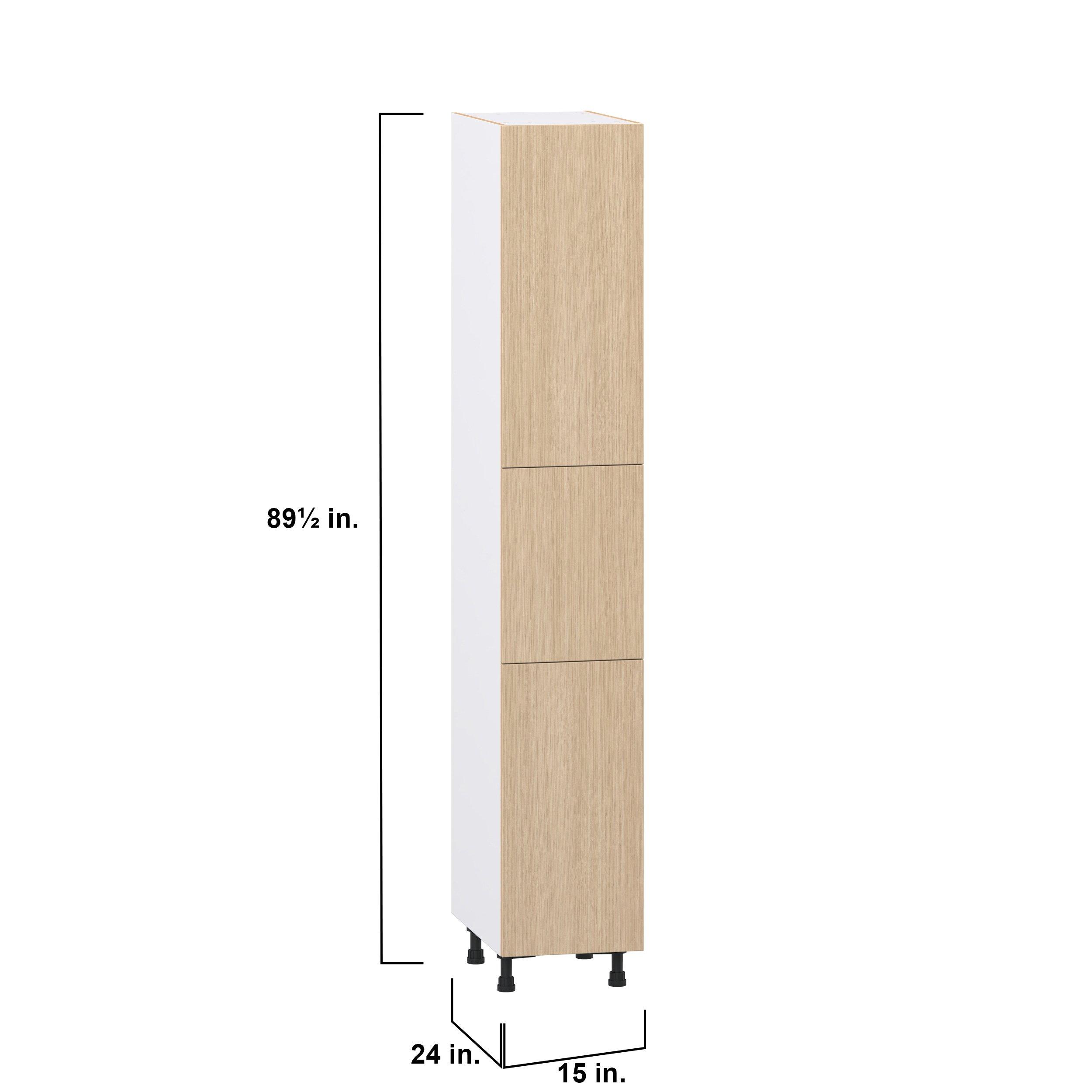 Elevate your project with the contemporary charm of Glenwood slab-style cabinets. Available in desert Mojavi oak and rich burnt walnut finishes, this collection captures the warmth and beauty of natural wood with the practicality of textured melamine. Crafted from one-piece MDF Studio Design Collection Glenwood 15 in. Mojavi Oak Door Pantry Cabinet is designed to resist hairline cracks while the easy-to-clean finish stands up to stains and moisture. Featuring 5-piece doors and dovetail drawer joints, these cabinets offer durability and elegance. This collection combines style with everyday storage solutions.