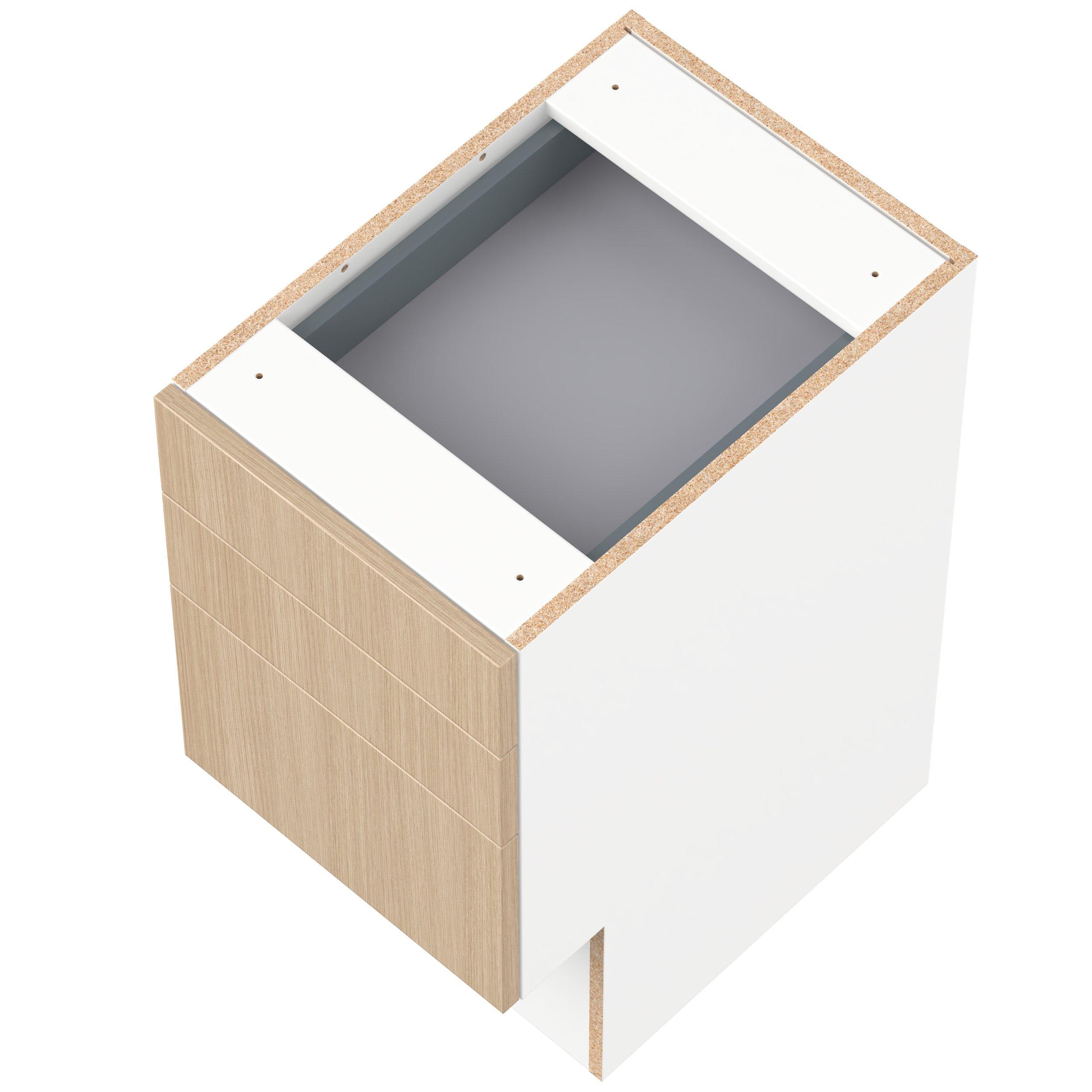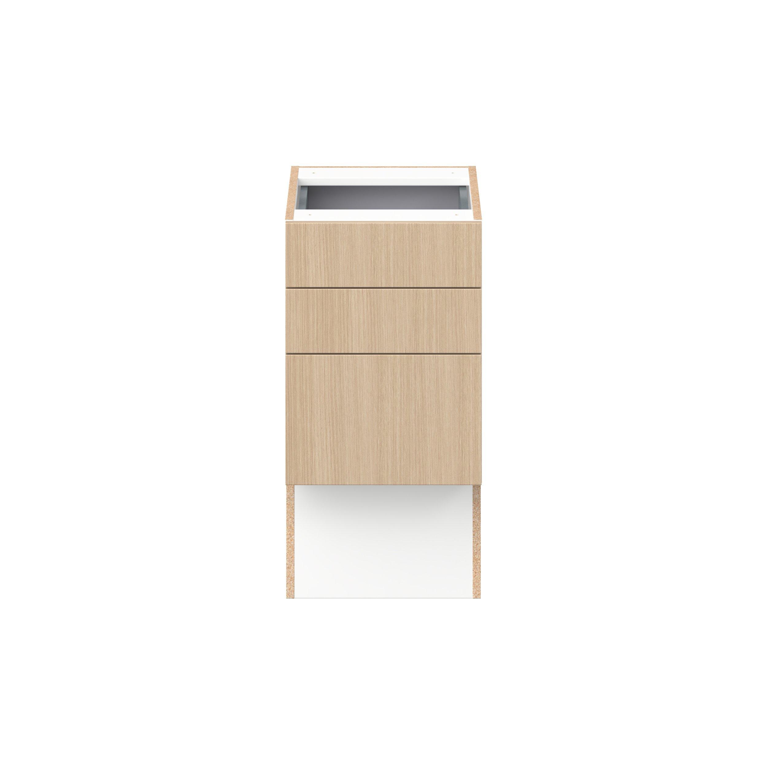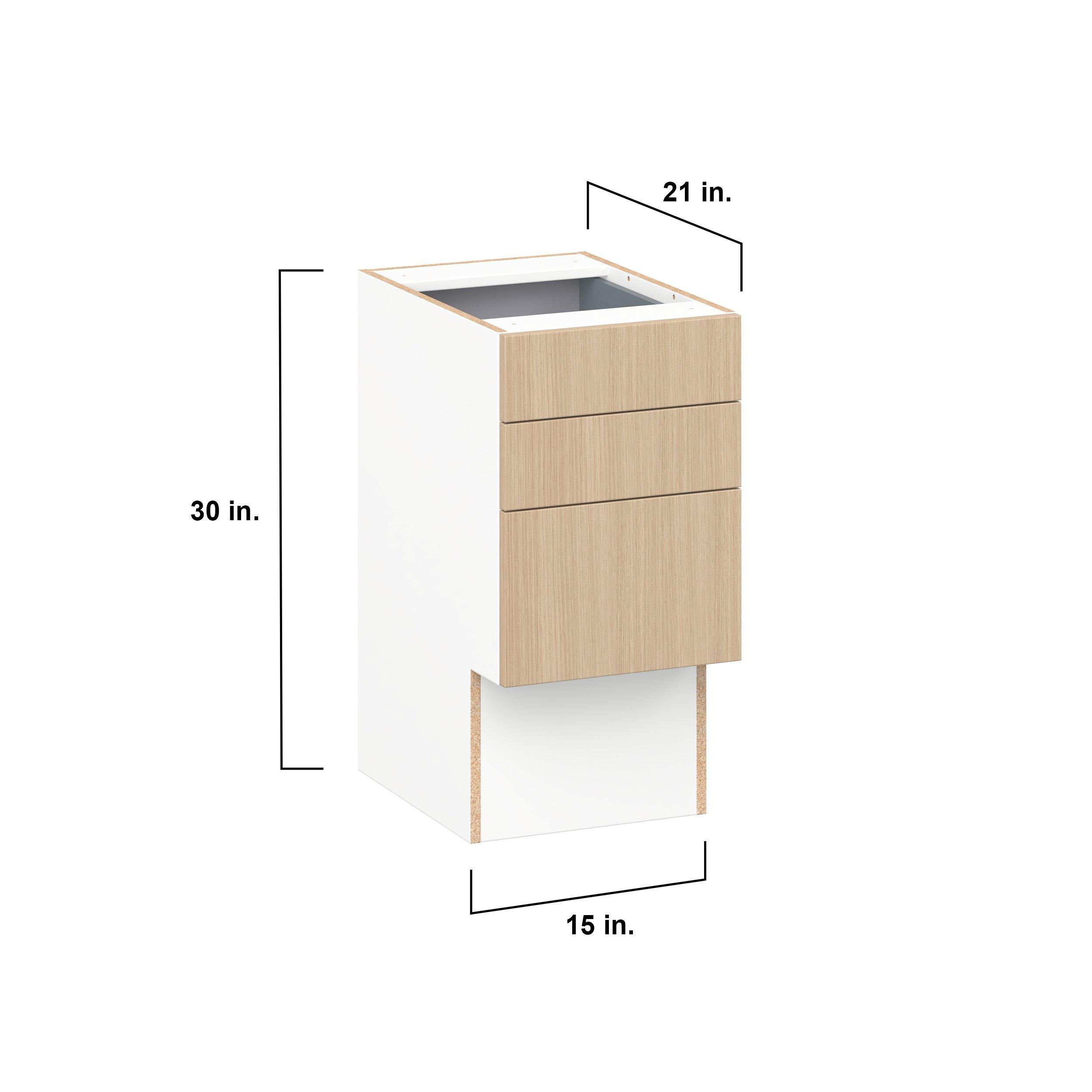 Elevate your project with the contemporary charm of Glenwood slab-style cabinets. Available in desert Mojavi oak and rich burnt walnut finishes, this collection captures the warmth and beauty of natural wood with the practicality of textured melamine. Crafted from one-piece MDF Studio Design Collection Glenwood 15 in. Mojavi Oak Vanity Drawer Base Cabinet - ADA is designed to resist hairline cracks while the easy-to-clean finish stands up to stains and moisture. Featuring 5-piece doors and dovetail drawer joints, these cabinets offer durability and elegance. This collection combines style with everyday storage solutions.