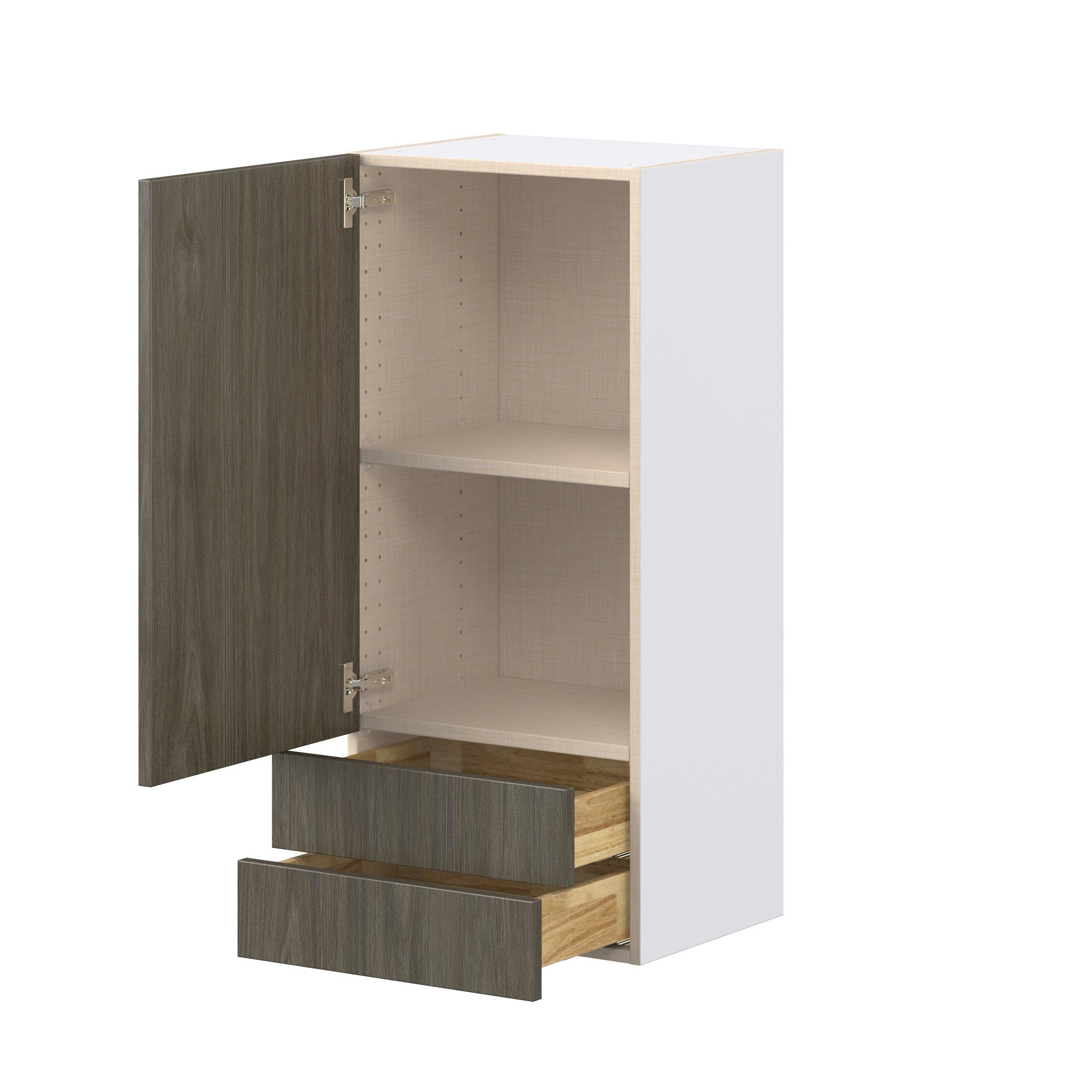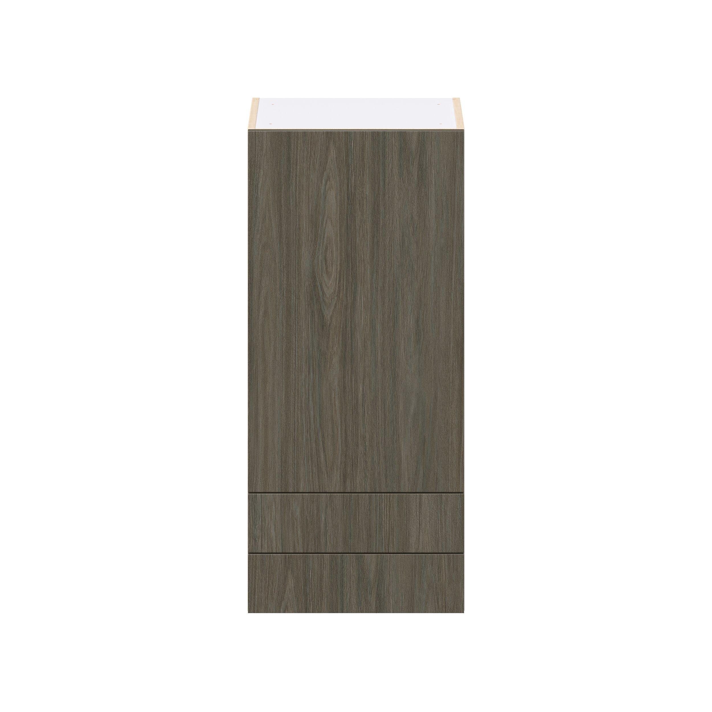 Elevate your project with the contemporary charm of Glenwood slab-style cabinets. Available in desert Mojavi oak and rich burnt walnut finishes, this collection captures the warmth and beauty of natural wood with the practicality of textured melamine. Crafted from one-piece MDF Studio Design Collection Glenwood 18 in. Burnt Walnut Door and Drawer Wall Cabinet is designed to resist hairline cracks while the easy-to-clean finish stands up to stains and moisture. Featuring 5-piece doors and dovetail drawer joints, these cabinets offer durability and elegance. This collection combines style with everyday storage solutions.