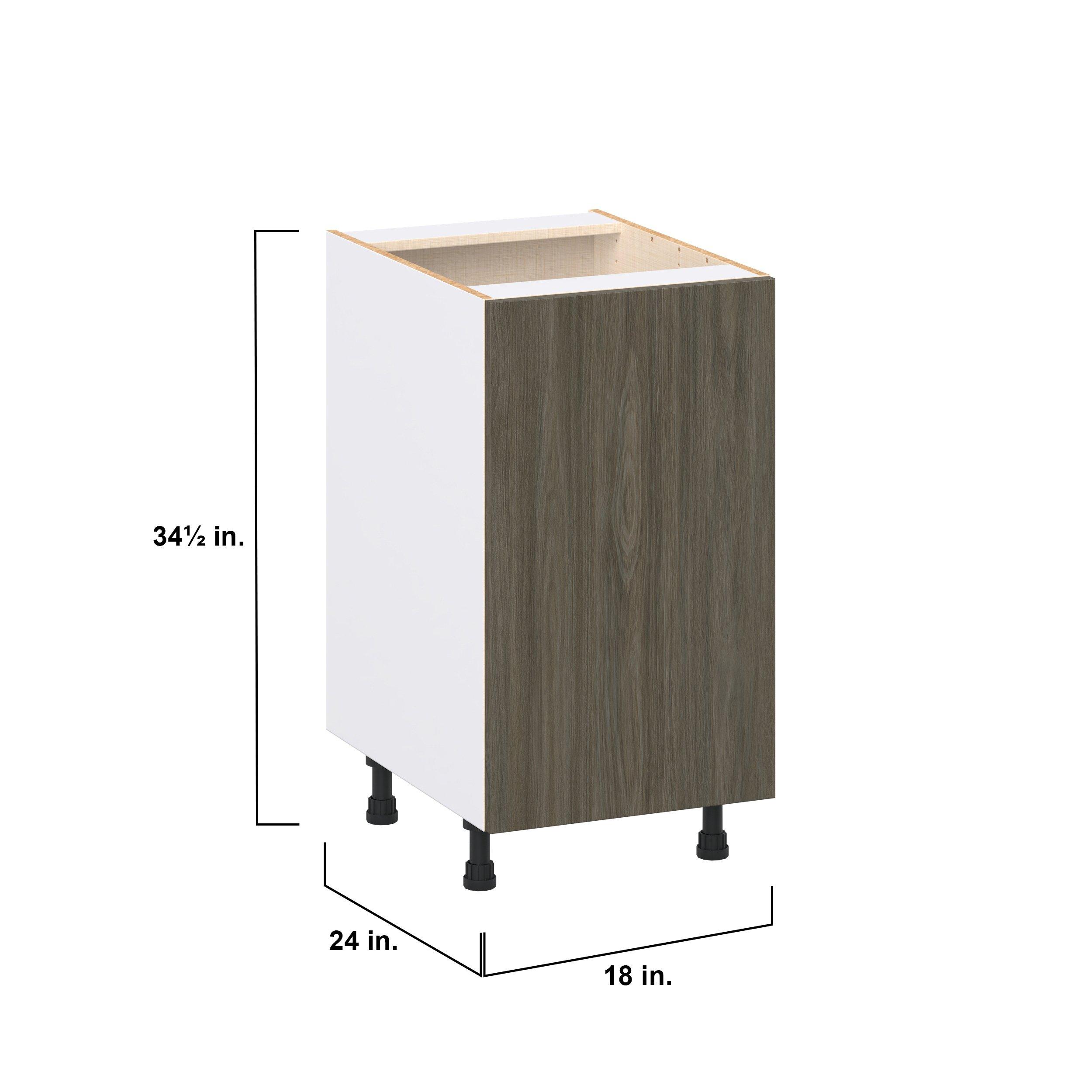 Elevate your project with the contemporary charm of Glenwood slab-style cabinets. Available in desert Mojavi oak and rich burnt walnut finishes, this collection captures the warmth and beauty of natural wood with the practicality of textured melamine. Crafted from one-piece MDF Studio Design Collection Glenwood 18 in. Burnt Walnut Door Base Cabinet is designed to resist hairline cracks while the easy-to-clean finish stands up to stains and moisture. Featuring 5-piece doors and dovetail drawer joints, these cabinets offer durability and elegance. This collection combines style with everyday storage solutions.