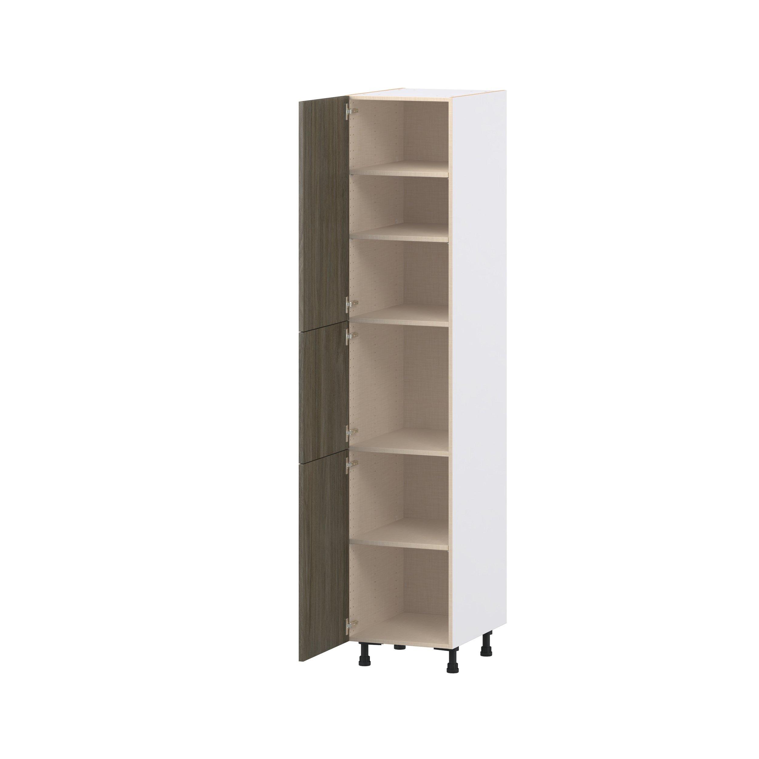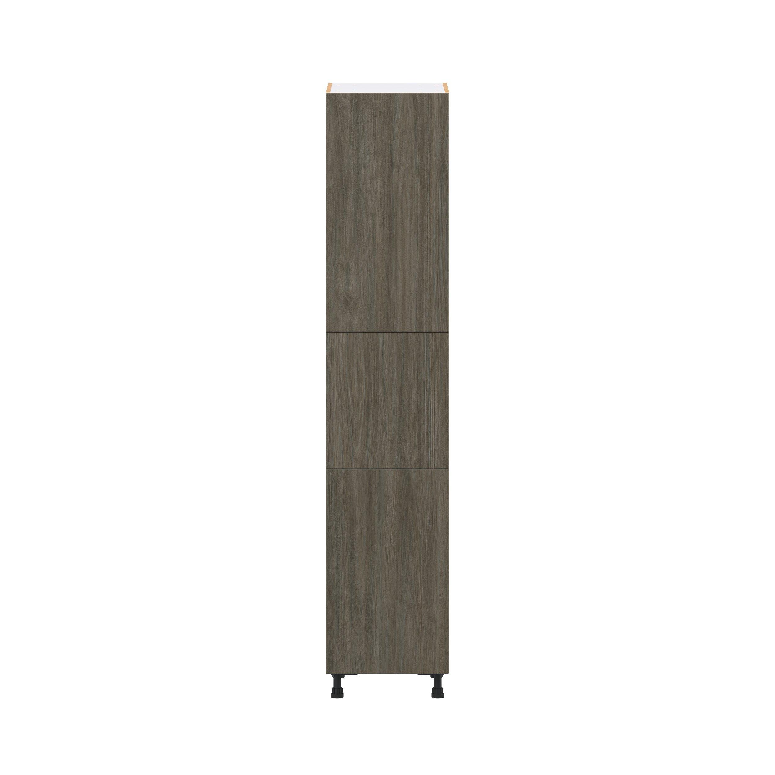 Elevate your project with the contemporary charm of Glenwood slab-style cabinets. Available in desert Mojavi oak and rich burnt walnut finishes, this collection captures the warmth and beauty of natural wood with the practicality of textured melamine. Crafted from one-piece MDF Studio Design Collection Glenwood 18 in. Burnt Walnut Door Pantry Cabinet is designed to resist hairline cracks while the easy-to-clean finish stands up to stains and moisture. Featuring 5-piece doors and dovetail drawer joints, these cabinets offer durability and elegance. This collection combines style with everyday storage solutions.