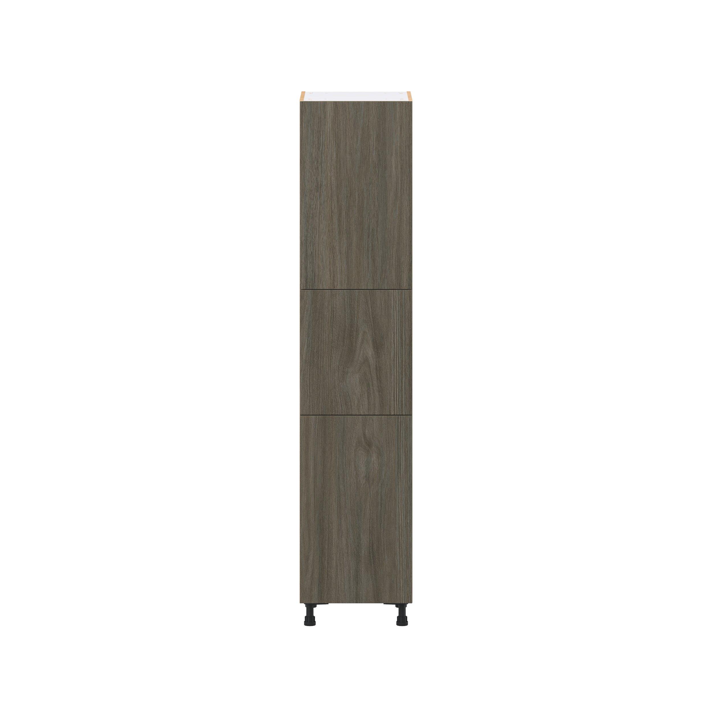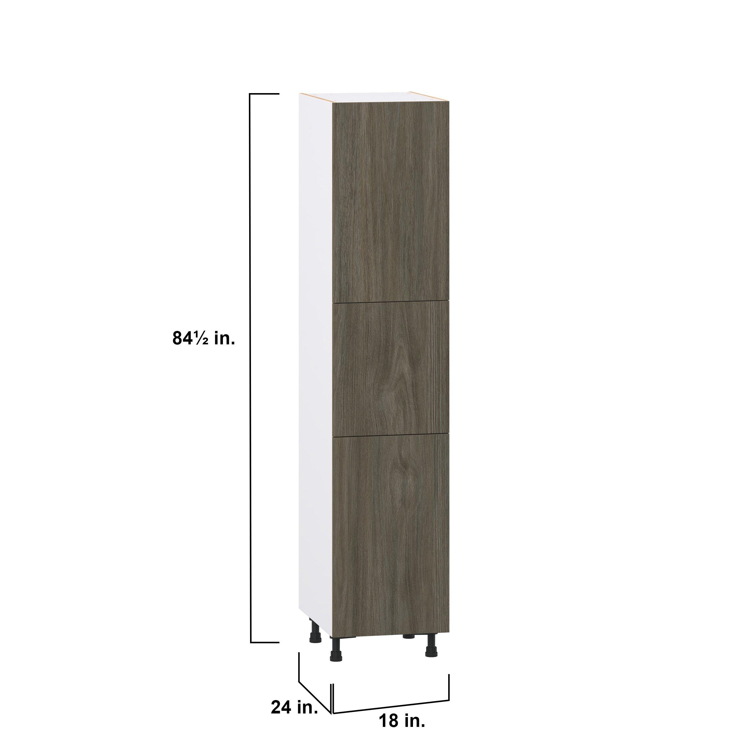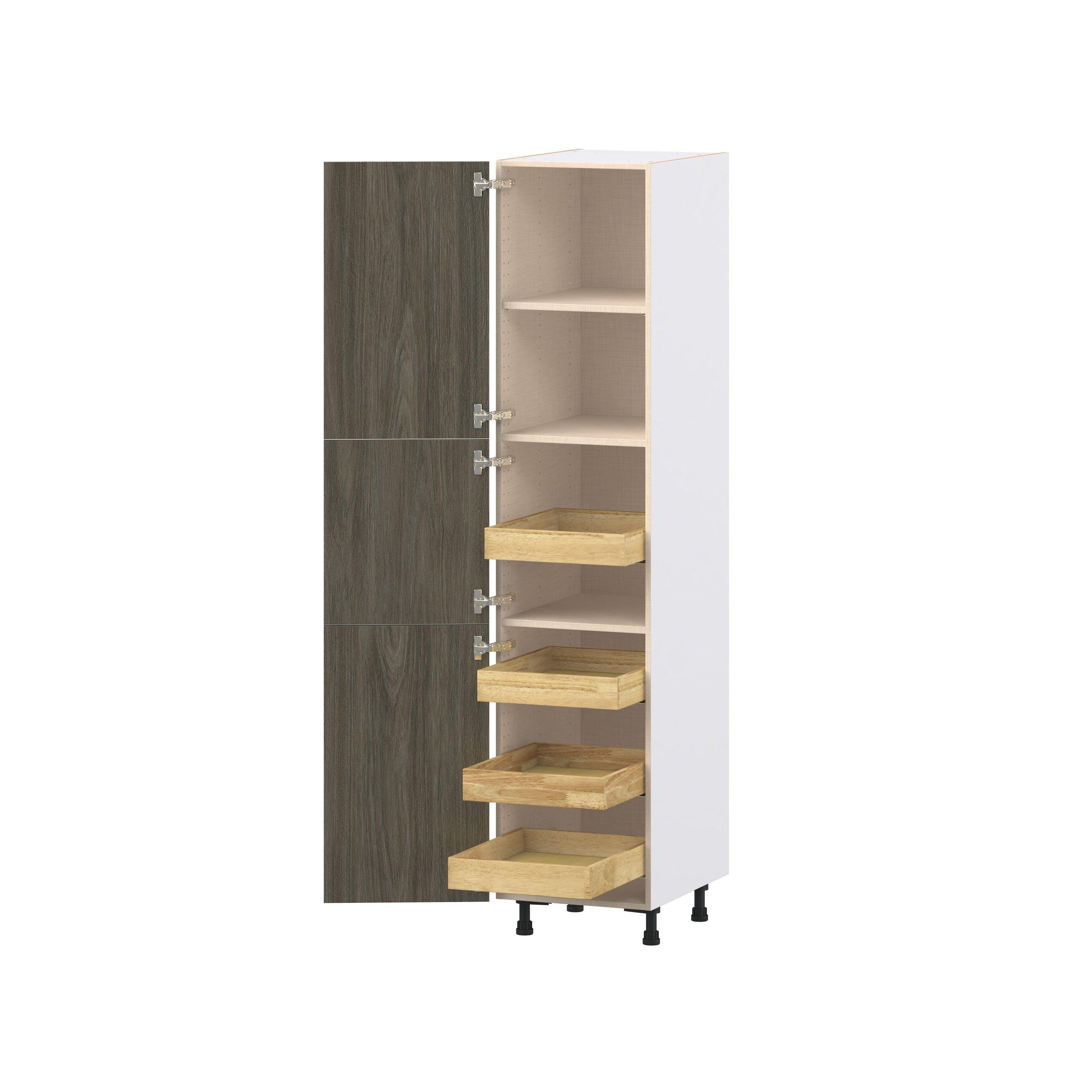Elevate your project with the contemporary charm of Glenwood slab-style cabinets. Available in desert Mojavi oak and rich burnt walnut finishes, this collection captures the warmth and beauty of natural wood with the practicality of textured melamine. Crafted from one-piece MDF Studio Design Collection Glenwood 18 in. Burnt Walnut Pantry Cabinet with Inner Pull-Out Drawer is designed to resist hairline cracks while the easy-to-clean finish stands up to stains and moisture. Featuring 5-piece doors and dovetail drawer joints, these cabinets offer durability and elegance. This collection combines style with everyday storage solutions.