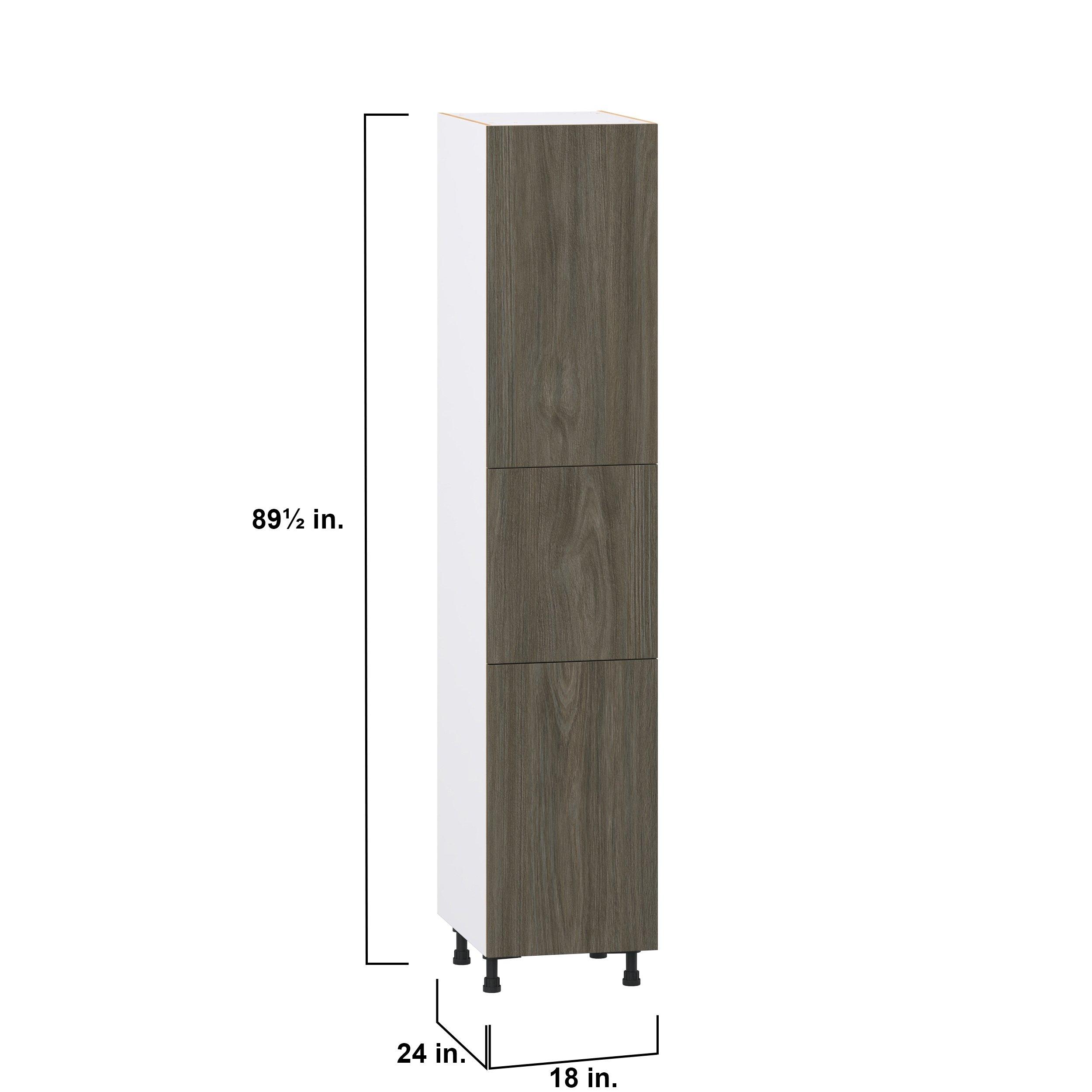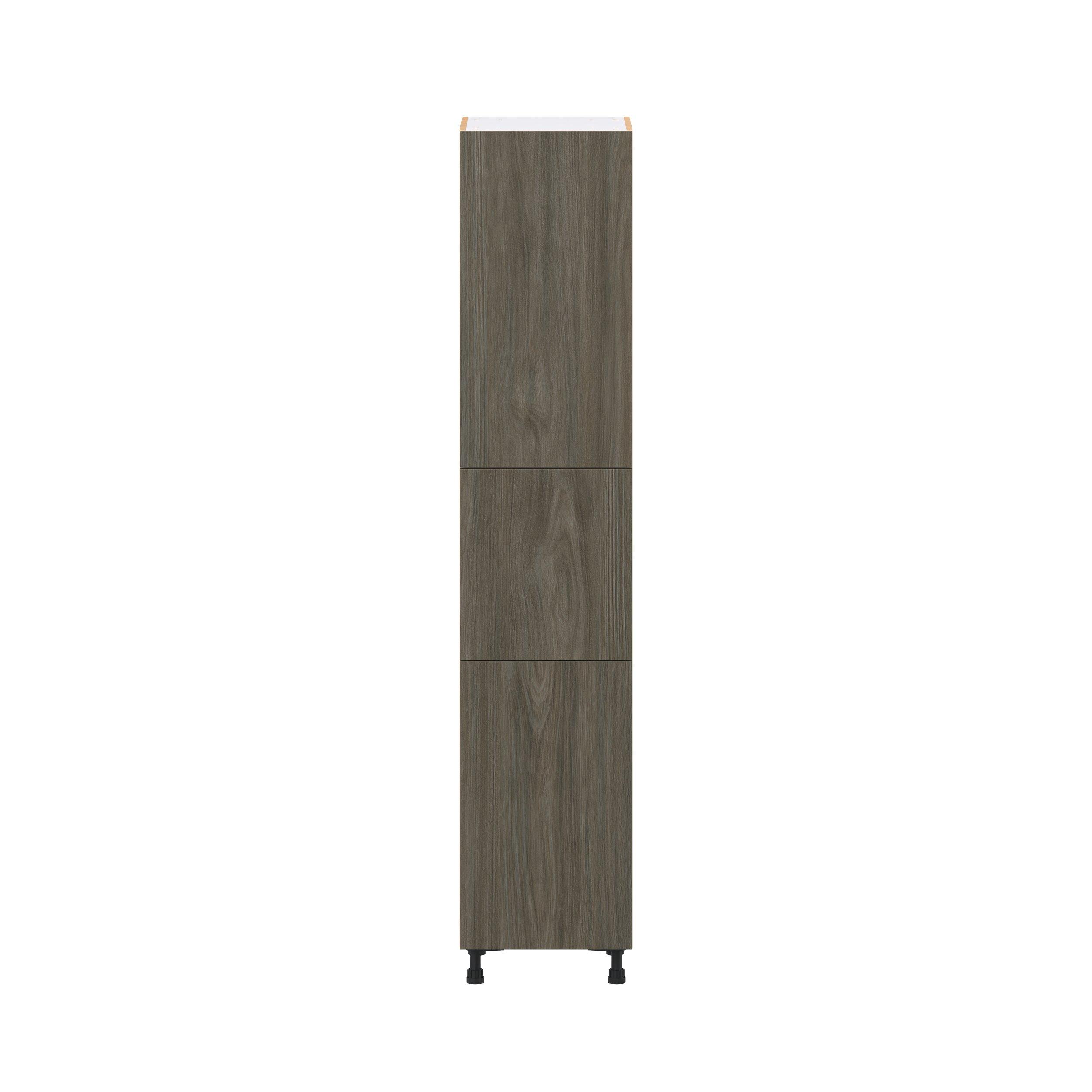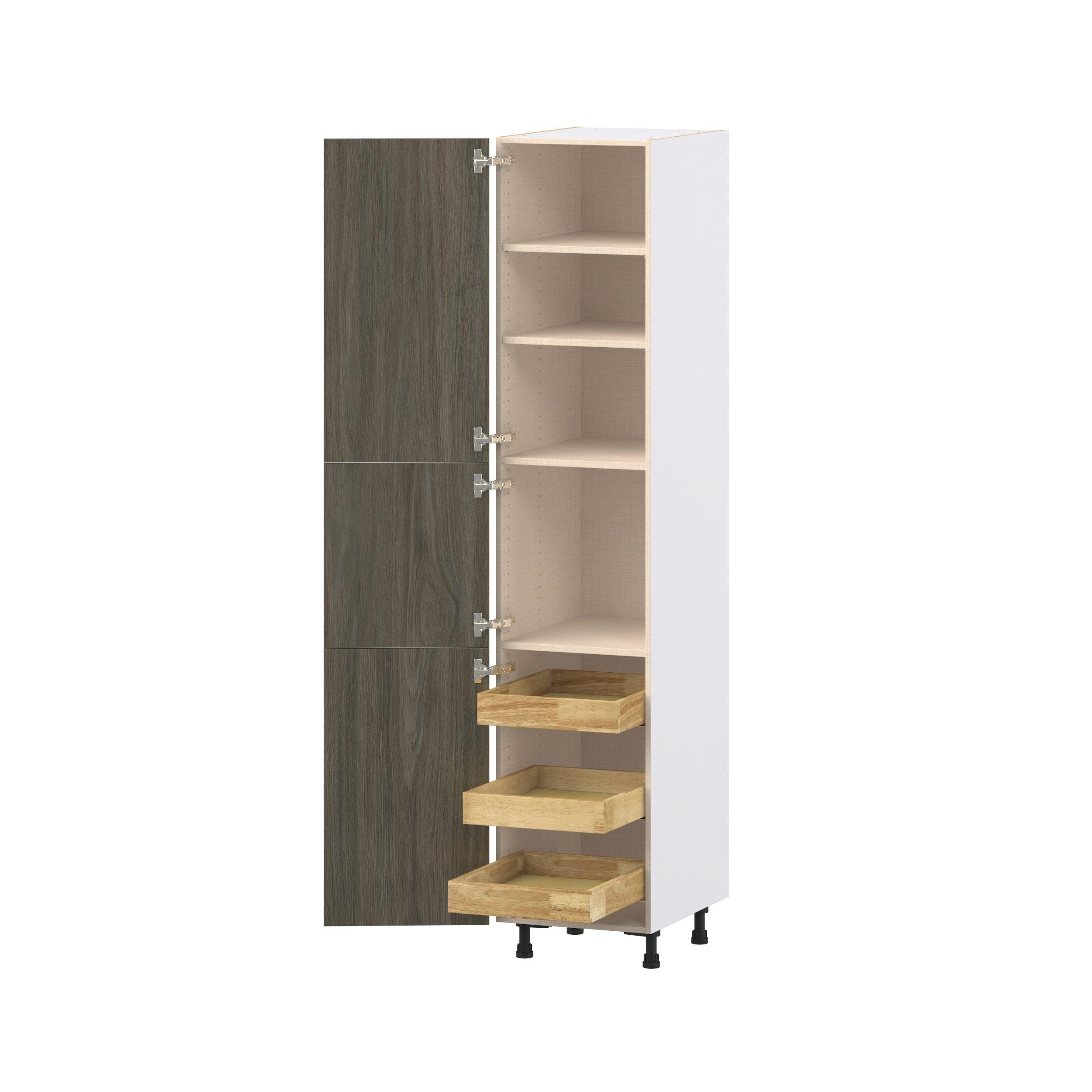 Elevate your project with the contemporary charm of Glenwood slab-style cabinets. Available in desert Mojavi oak and rich burnt walnut finishes, this collection captures the warmth and beauty of natural wood with the practicality of textured melamine. Crafted from one-piece MDF Studio Design Collection Glenwood 18 in. Burnt Walnut Pantry Cabinet with Inner Pull-Out Drawer is designed to resist hairline cracks while the easy-to-clean finish stands up to stains and moisture. Featuring 5-piece doors and dovetail drawer joints, these cabinets offer durability and elegance. This collection combines style with everyday storage solutions.