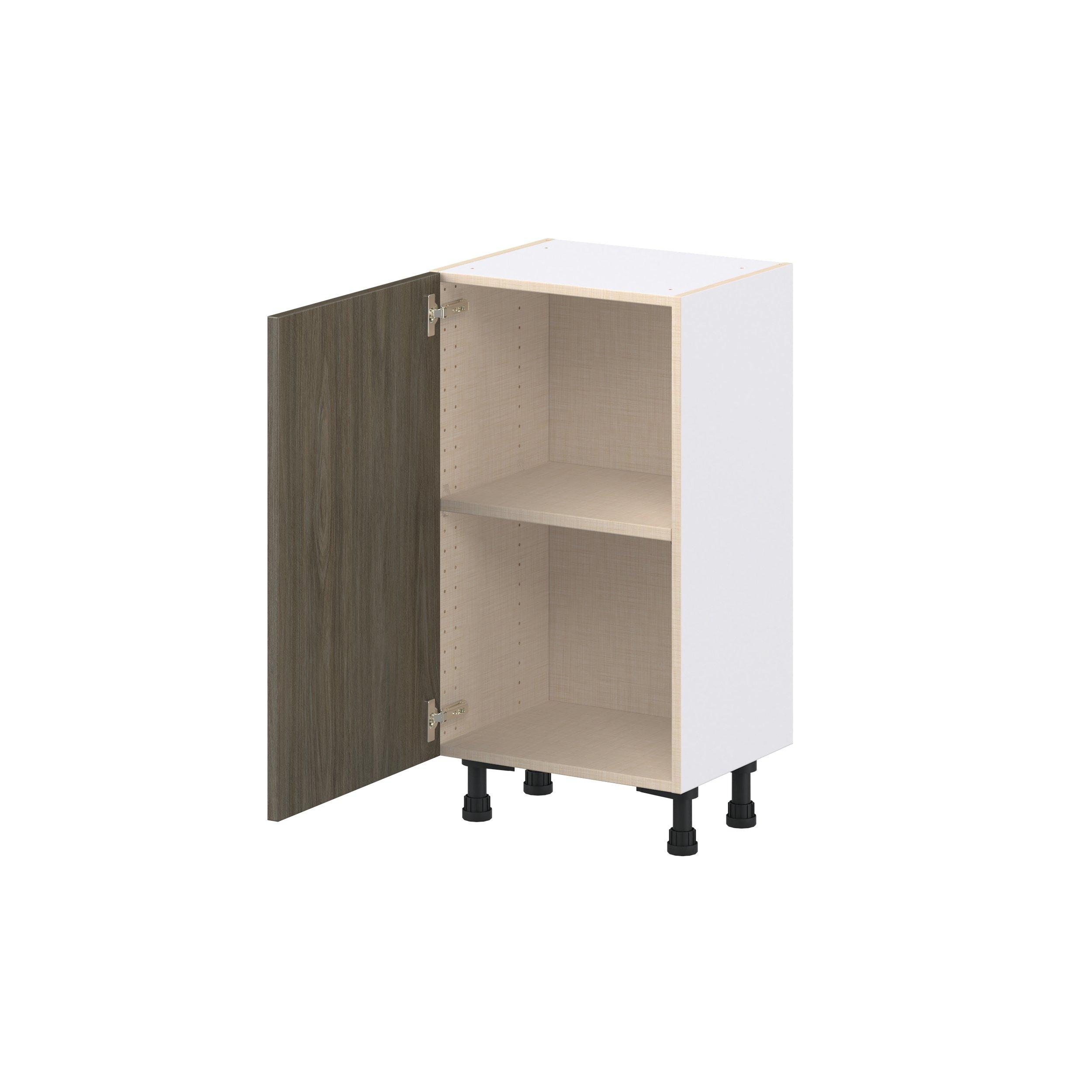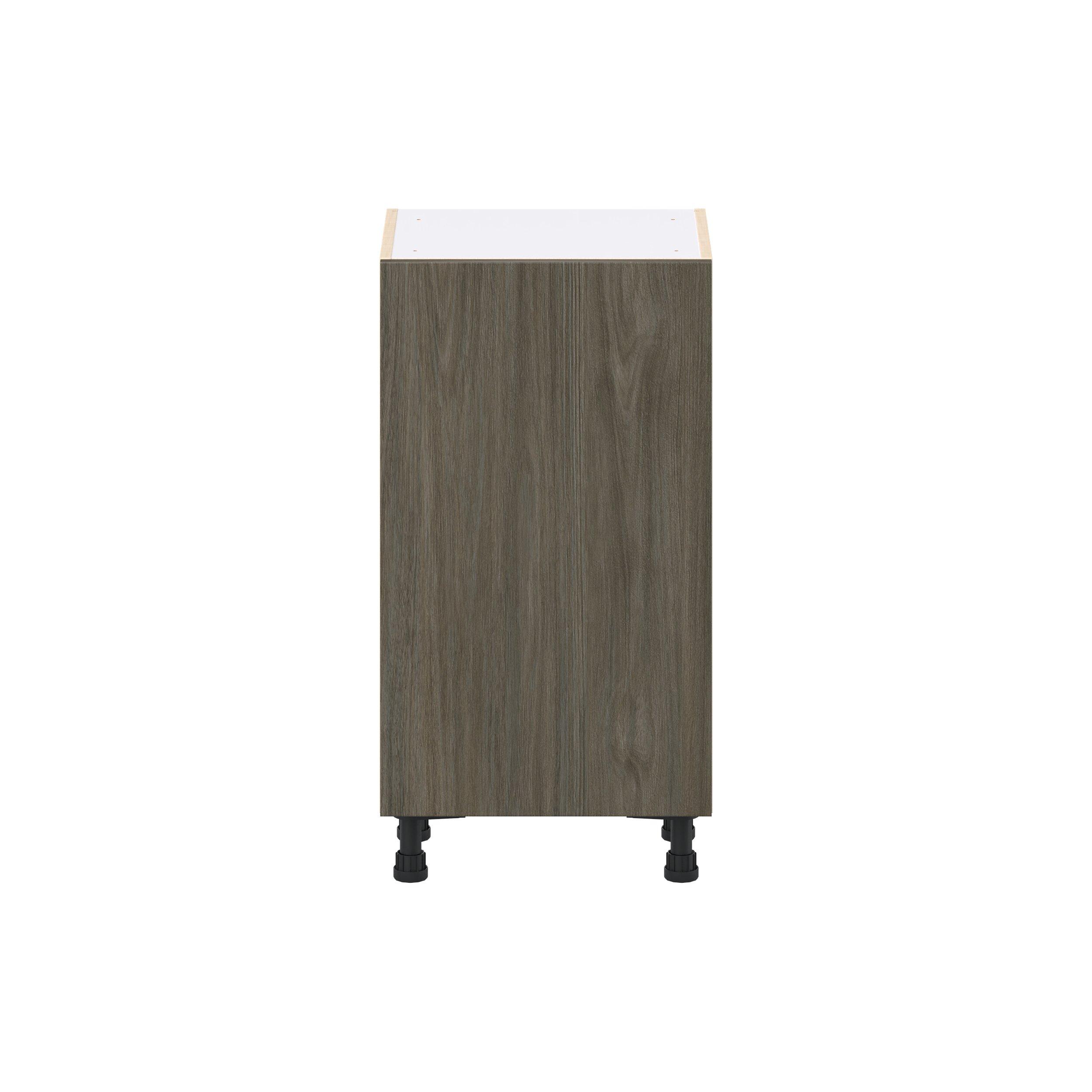 Elevate your project with the contemporary charm of Glenwood slab-style cabinets. Available in desert Mojavi oak and rich burnt walnut finishes, this collection captures the warmth and beauty of natural wood with the practicality of textured melamine. Crafted from one-piece MDF Studio Design Collection Glenwood 18 in. Burnt Walnut Shallow Base Cabinet is designed to resist hairline cracks while the easy-to-clean finish stands up to stains and moisture. Featuring 5-piece doors and dovetail drawer joints, these cabinets offer durability and elegance. This collection combines style with everyday storage solutions.