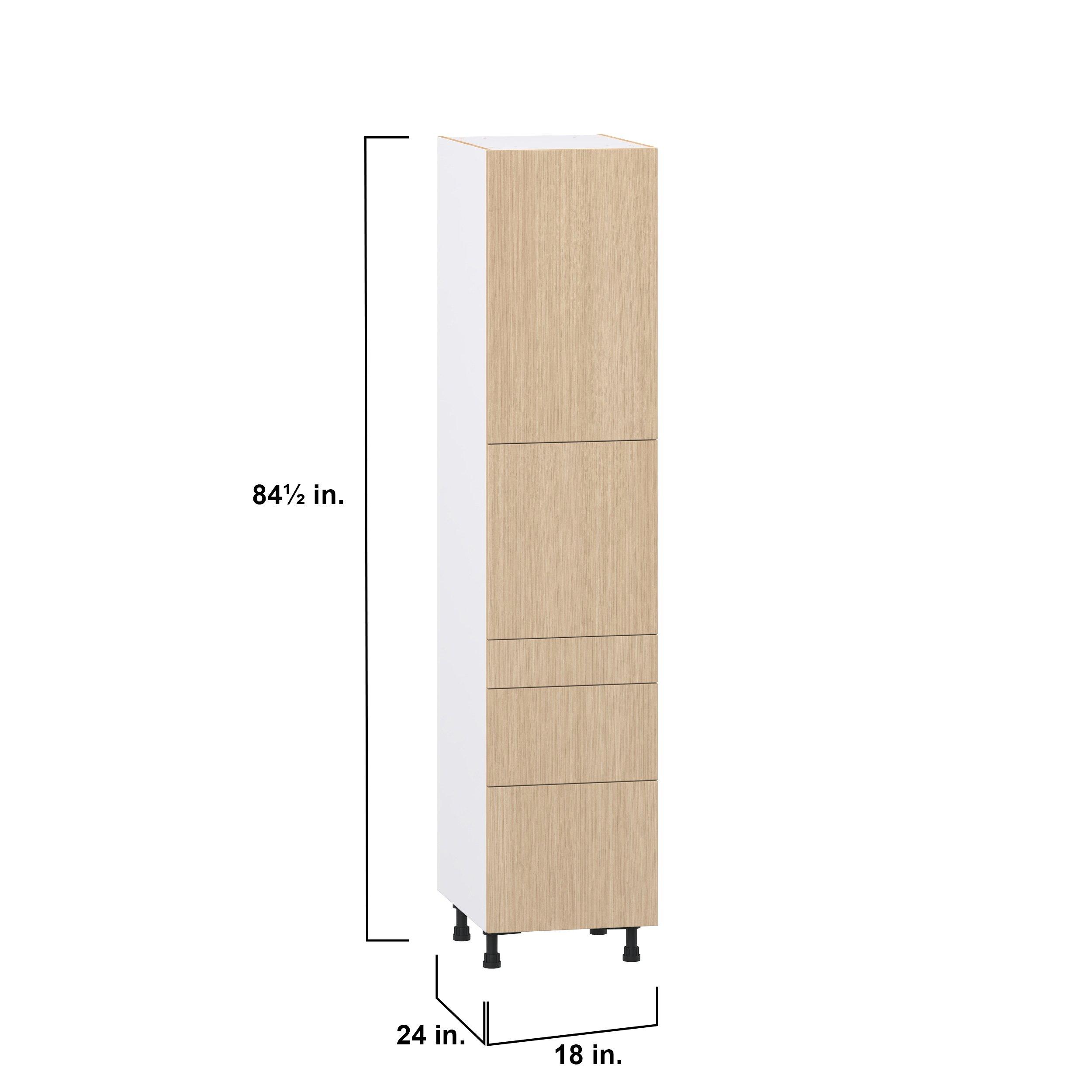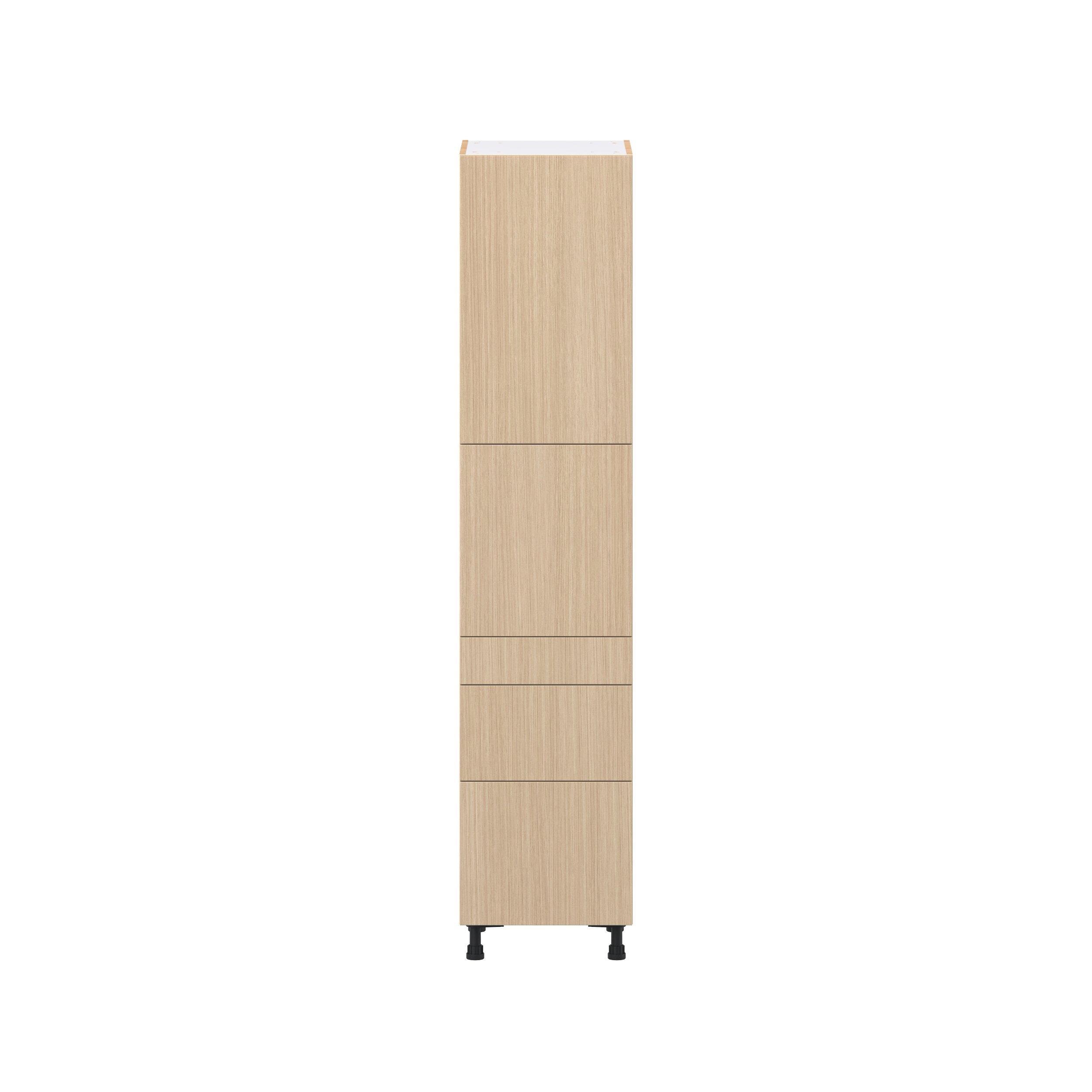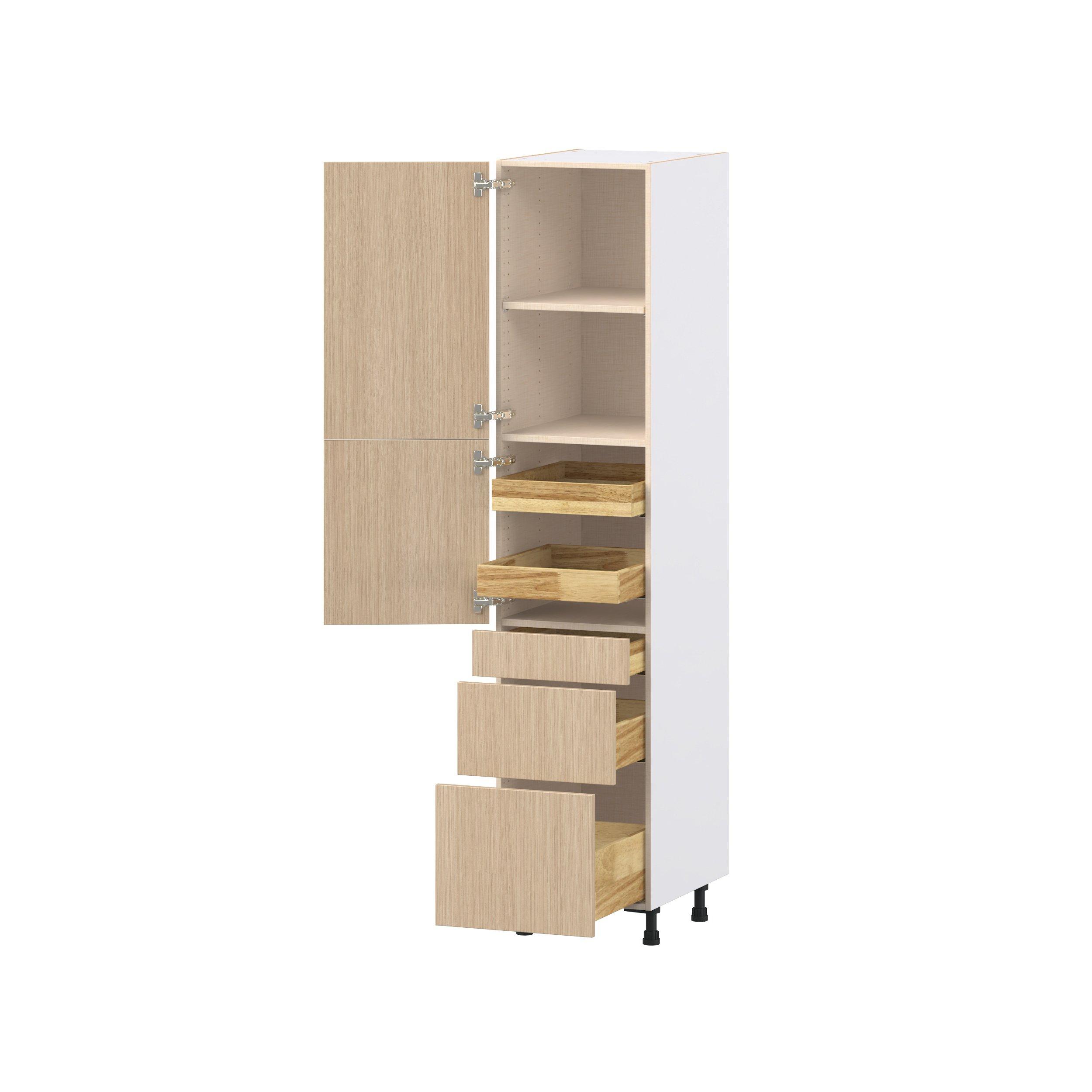 Elevate your project with the contemporary charm of Glenwood slab-style cabinets. Available in desert Mojavi oak and rich burnt walnut finishes, this collection captures the warmth and beauty of natural wood with the practicality of textured melamine. Crafted from one-piece MDF Studio Design Collection Glenwood 18 in. Mojavi Oak Door and Drawer Pantry Cabinet with Inner Pull-Out is designed to resist hairline cracks while the easy-to-clean finish stands up to stains and moisture. Featuring 5-piece doors and dovetail drawer joints, these cabinets offer durability and elegance. This collection combines style with everyday storage solutions.