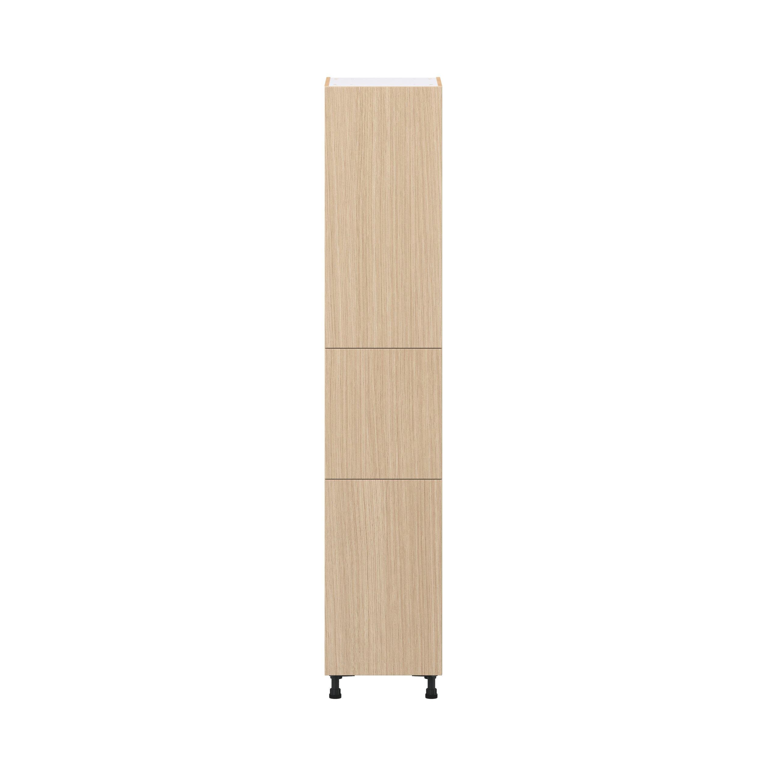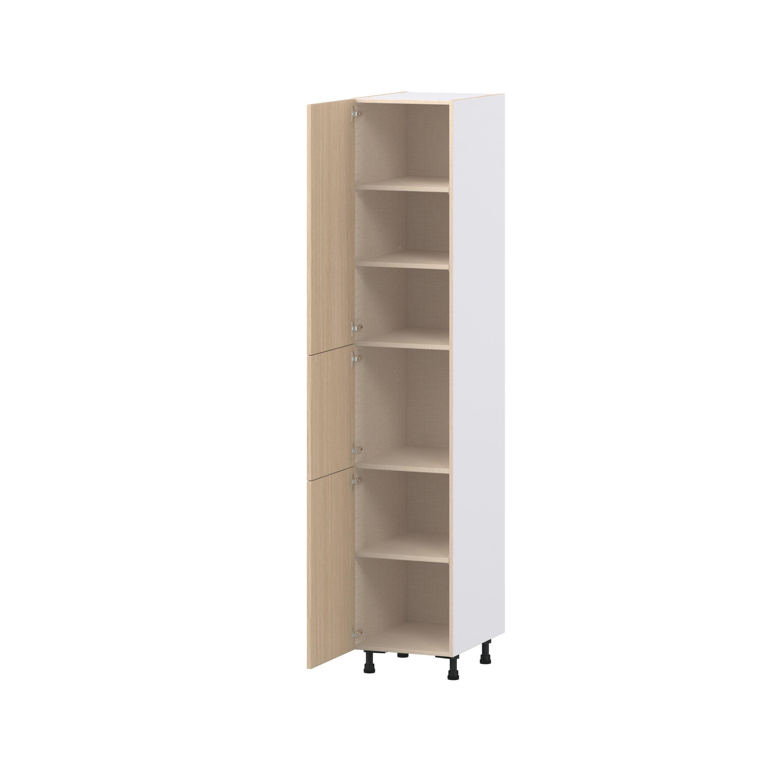 Elevate your project with the contemporary charm of Glenwood slab-style cabinets. Available in desert Mojavi oak and rich burnt walnut finishes, this collection captures the warmth and beauty of natural wood with the practicality of textured melamine. Crafted from one-piece MDF Studio Design Collection Glenwood 18 in. Mojavi Oak Door Pantry Cabinet is designed to resist hairline cracks while the easy-to-clean finish stands up to stains and moisture. Featuring 5-piece doors and dovetail drawer joints, these cabinets offer durability and elegance. This collection combines style with everyday storage solutions.