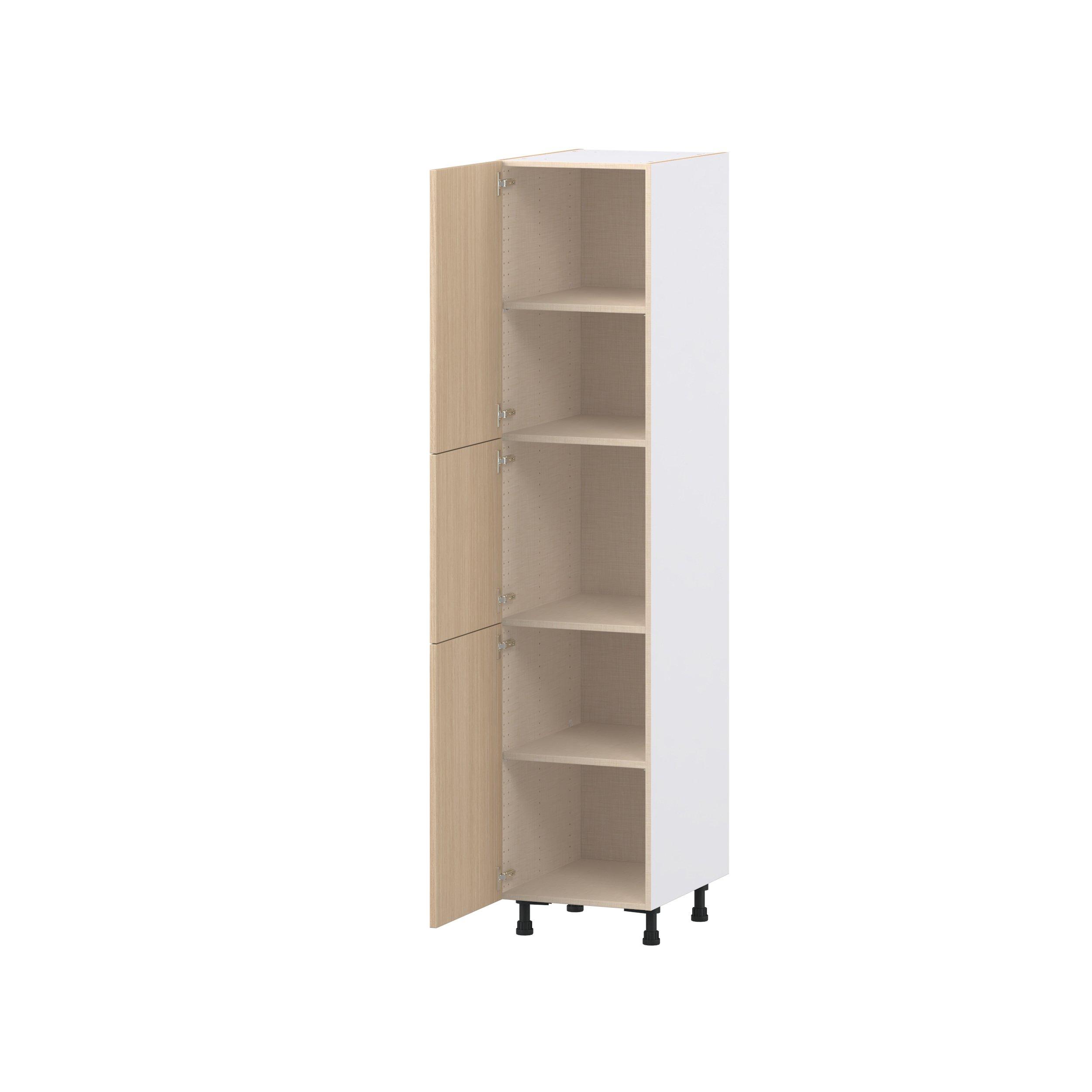 Elevate your project with the contemporary charm of Glenwood slab-style cabinets. Available in desert Mojavi oak and rich burnt walnut finishes, this collection captures the warmth and beauty of natural wood with the practicality of textured melamine. Crafted from one-piece MDF Studio Design Collection Glenwood 18 in. Mojavi Oak Door Pantry Cabinet is designed to resist hairline cracks while the easy-to-clean finish stands up to stains and moisture. Featuring 5-piece doors and dovetail drawer joints, these cabinets offer durability and elegance. This collection combines style with everyday storage solutions.