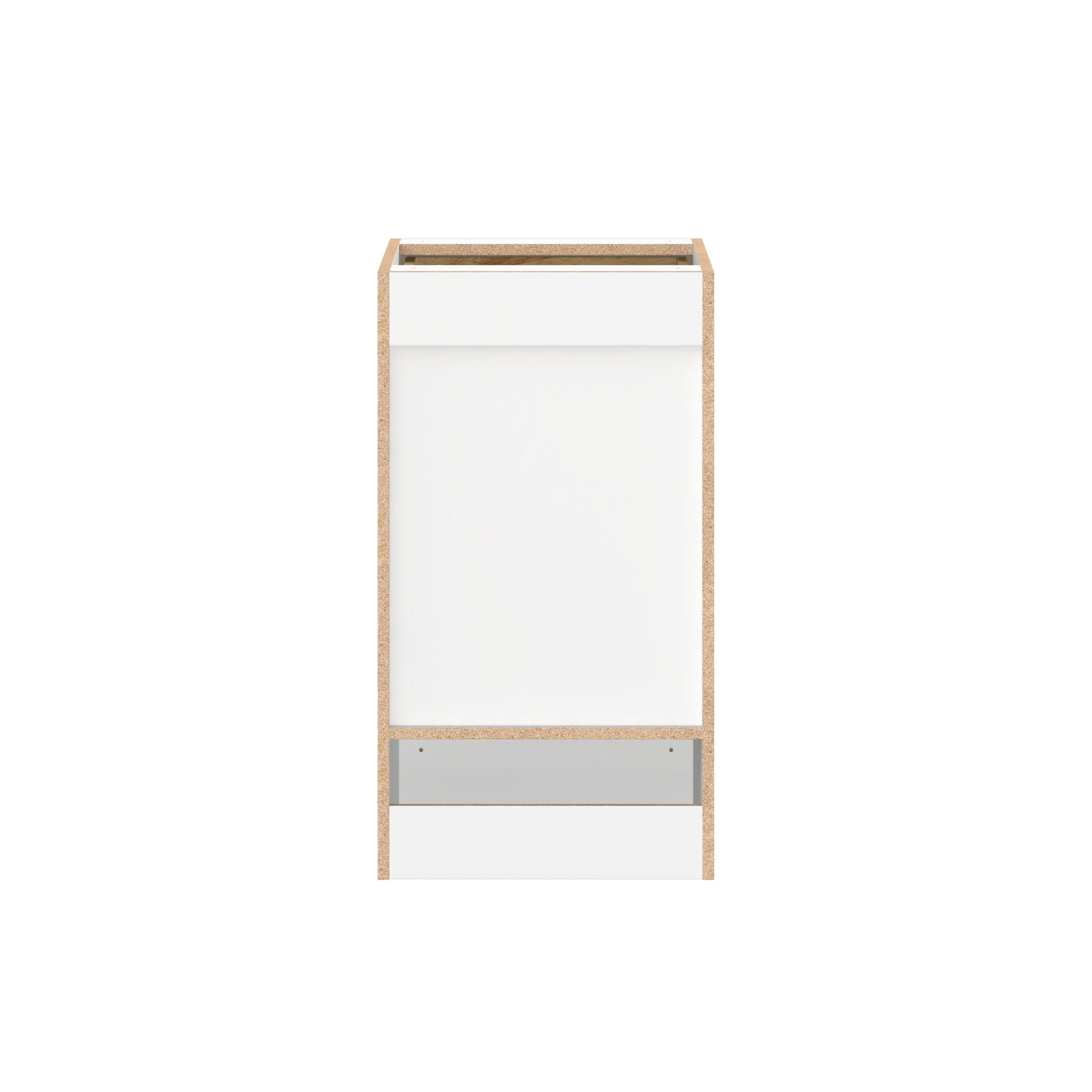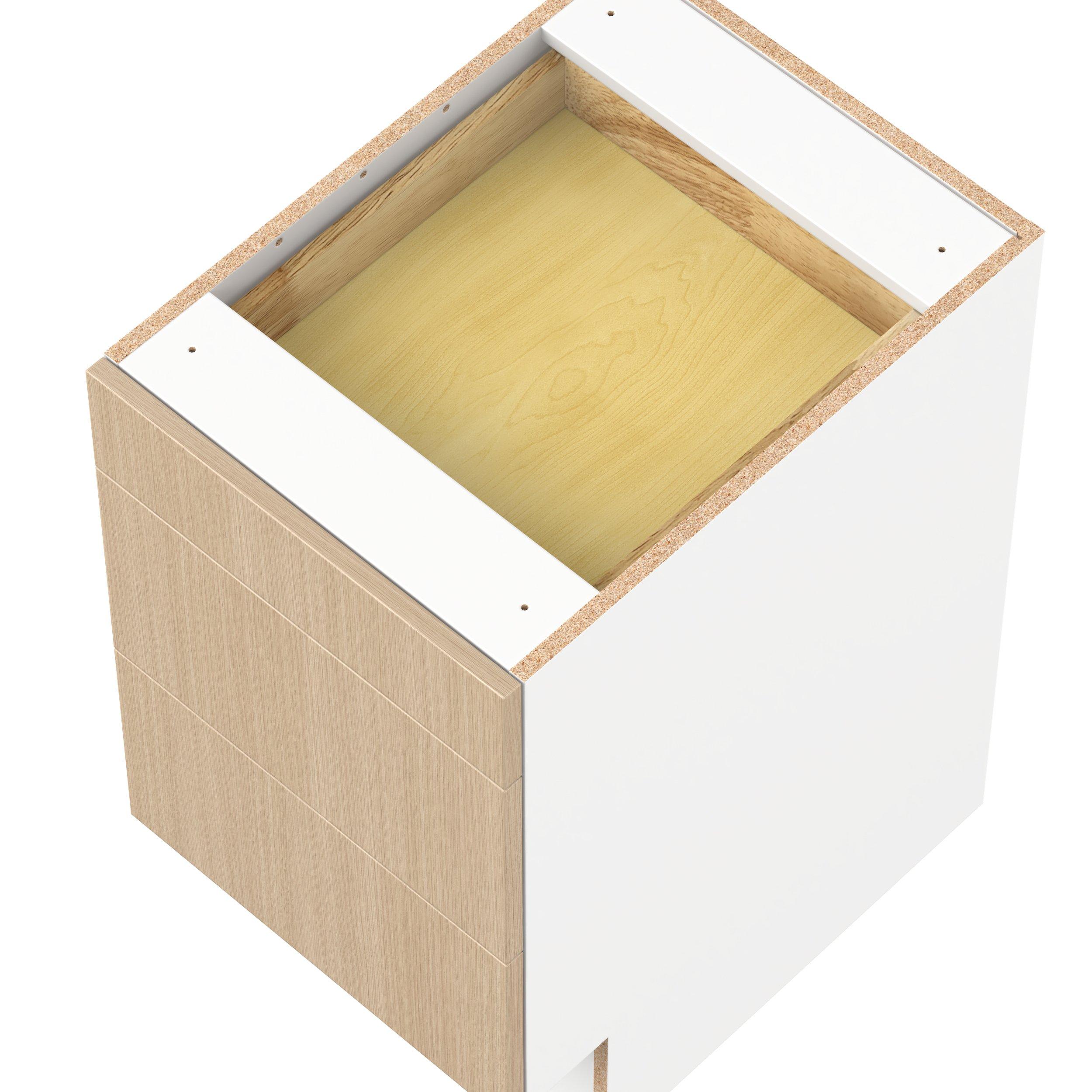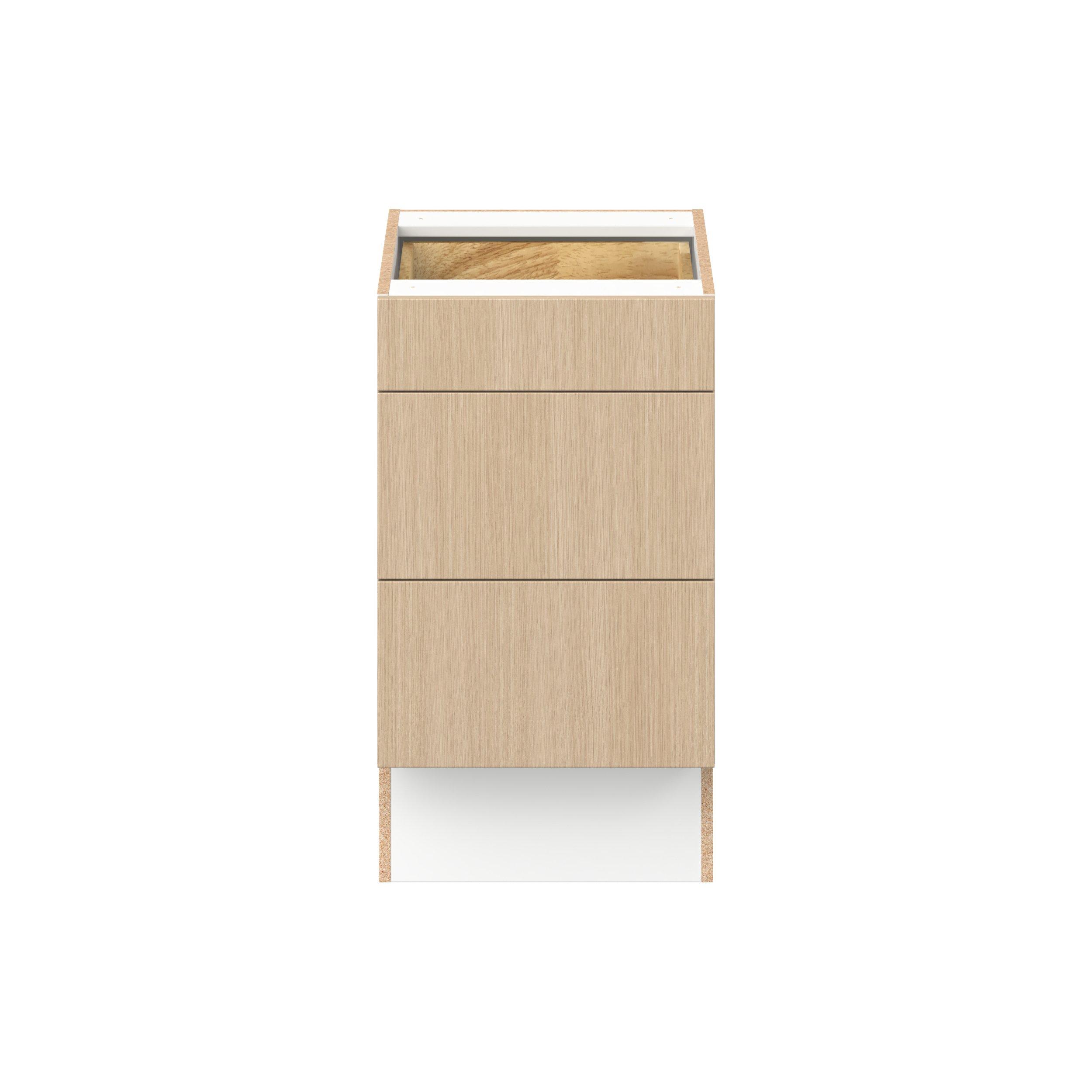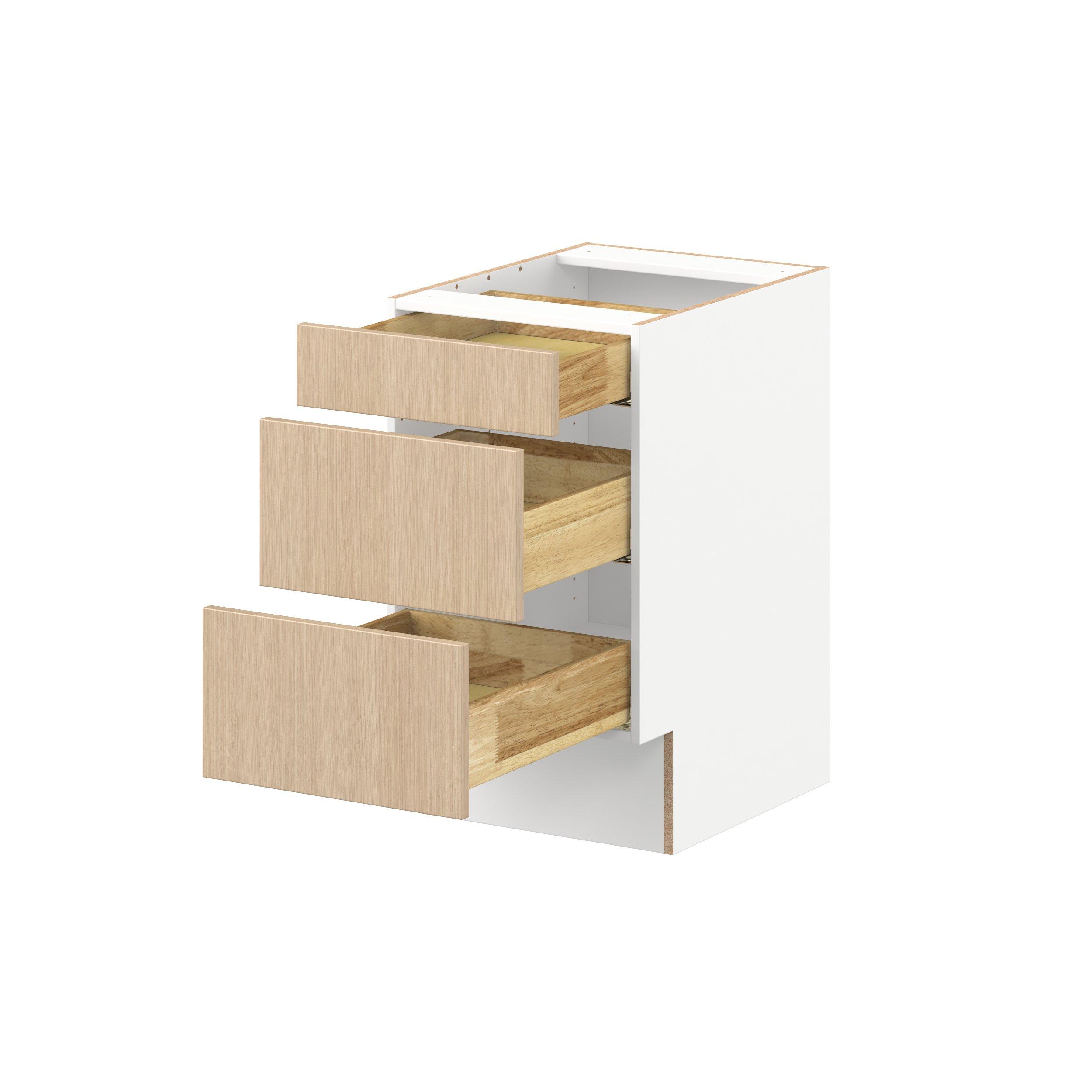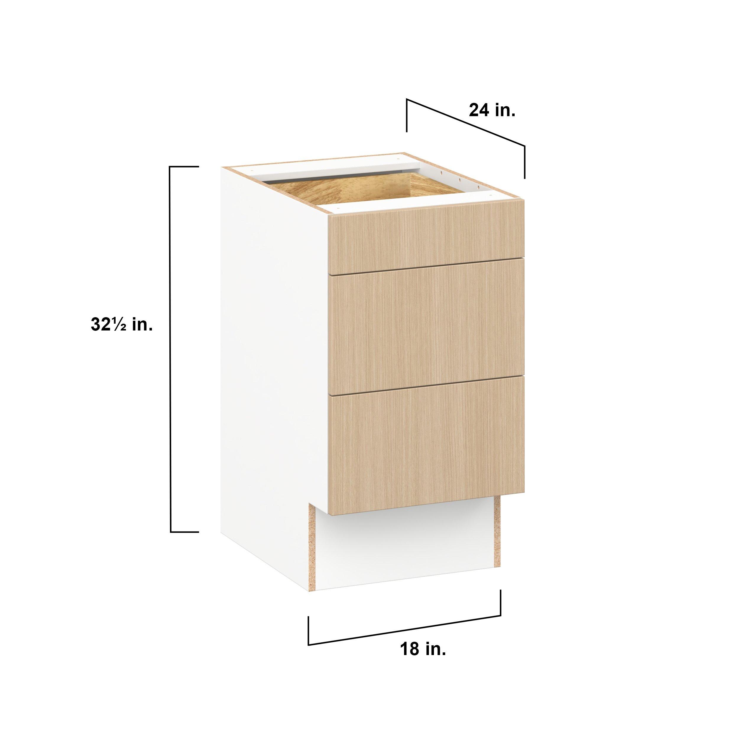 Elevate your project with the contemporary charm of Glenwood slab-style cabinets. Available in desert Mojavi oak and rich burnt walnut finishes, this collection captures the warmth and beauty of natural wood with the practicality of textured melamine. Crafted from one-piece MDF Studio Design Collection Glenwood 18 in. Mojavi Oak Drawer Base Cabinet - ADA is designed to resist hairline cracks while the easy-to-clean finish stands up to stains and moisture. Featuring 5-piece doors and dovetail drawer joints, these cabinets offer durability and elegance. This collection combines style with everyday storage solutions.