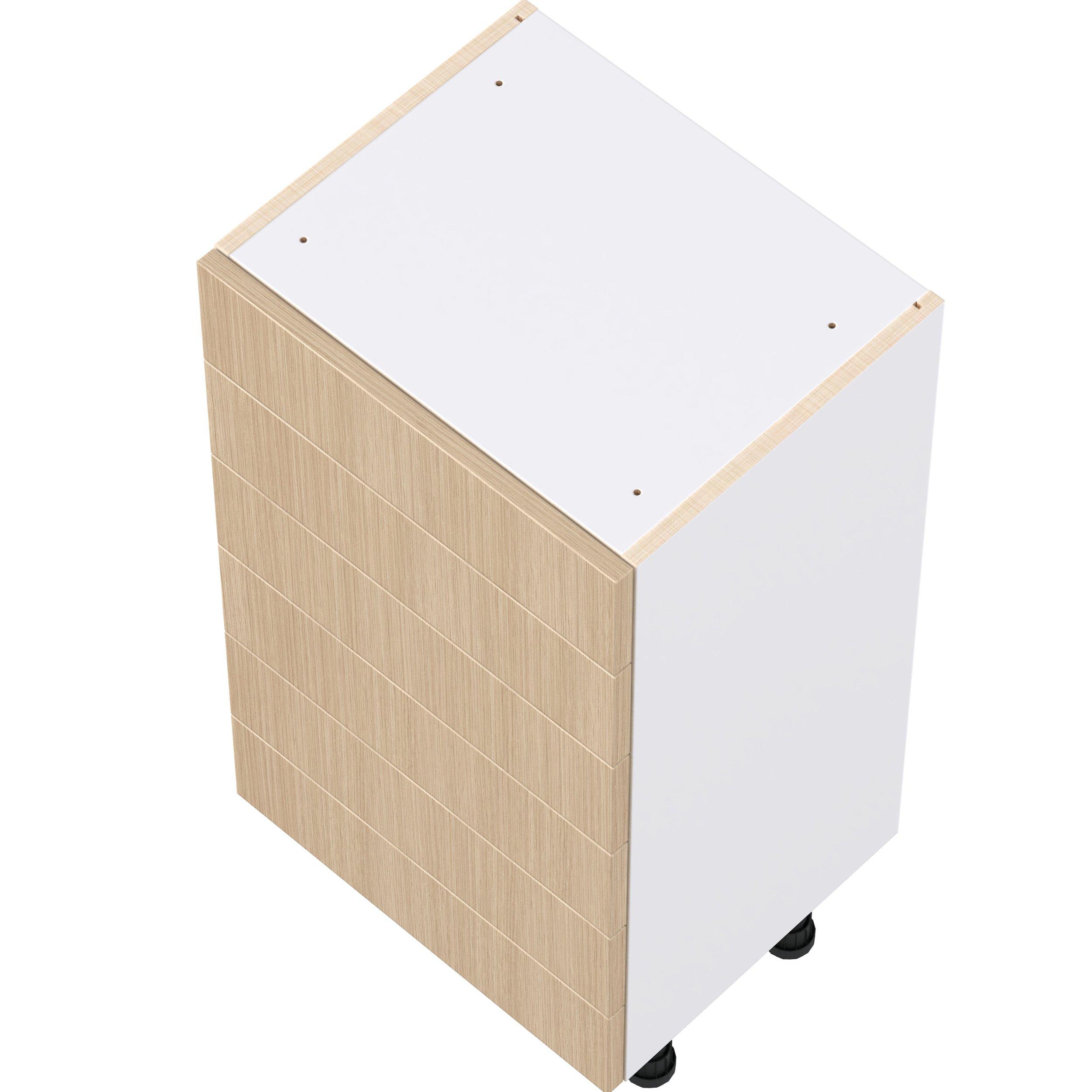 Elevate your project with the contemporary charm of Glenwood slab-style cabinets. Available in desert Mojavi oak and rich burnt walnut finishes, this collection captures the warmth and beauty of natural wood with the practicality of textured melamine. Crafted from one-piece MDF Studio Design Collection Glenwood 18 in. Mojavi Oak Shallow Base Cabinet is designed to resist hairline cracks while the easy-to-clean finish stands up to stains and moisture. Featuring 5-piece doors and dovetail drawer joints, these cabinets offer durability and elegance. This collection combines style with everyday storage solutions.
