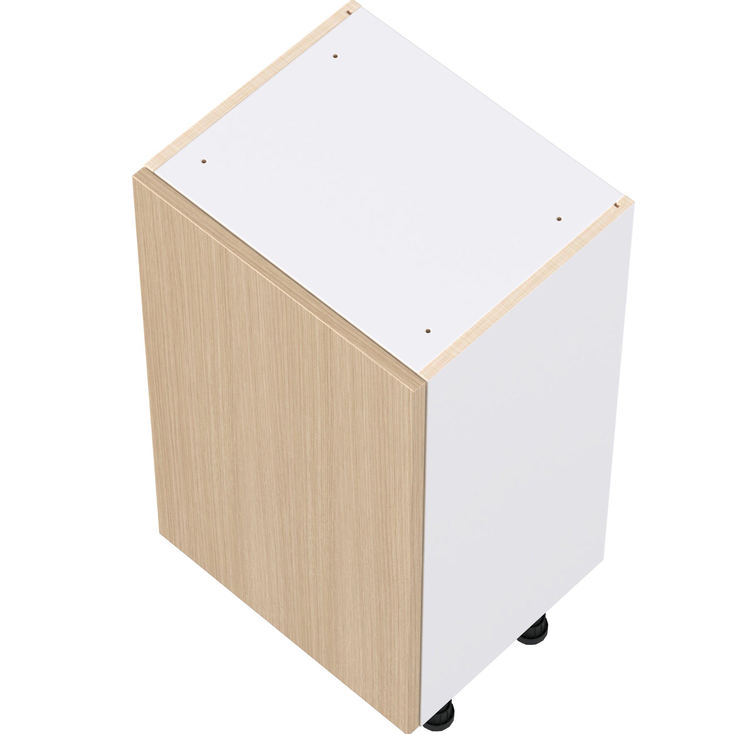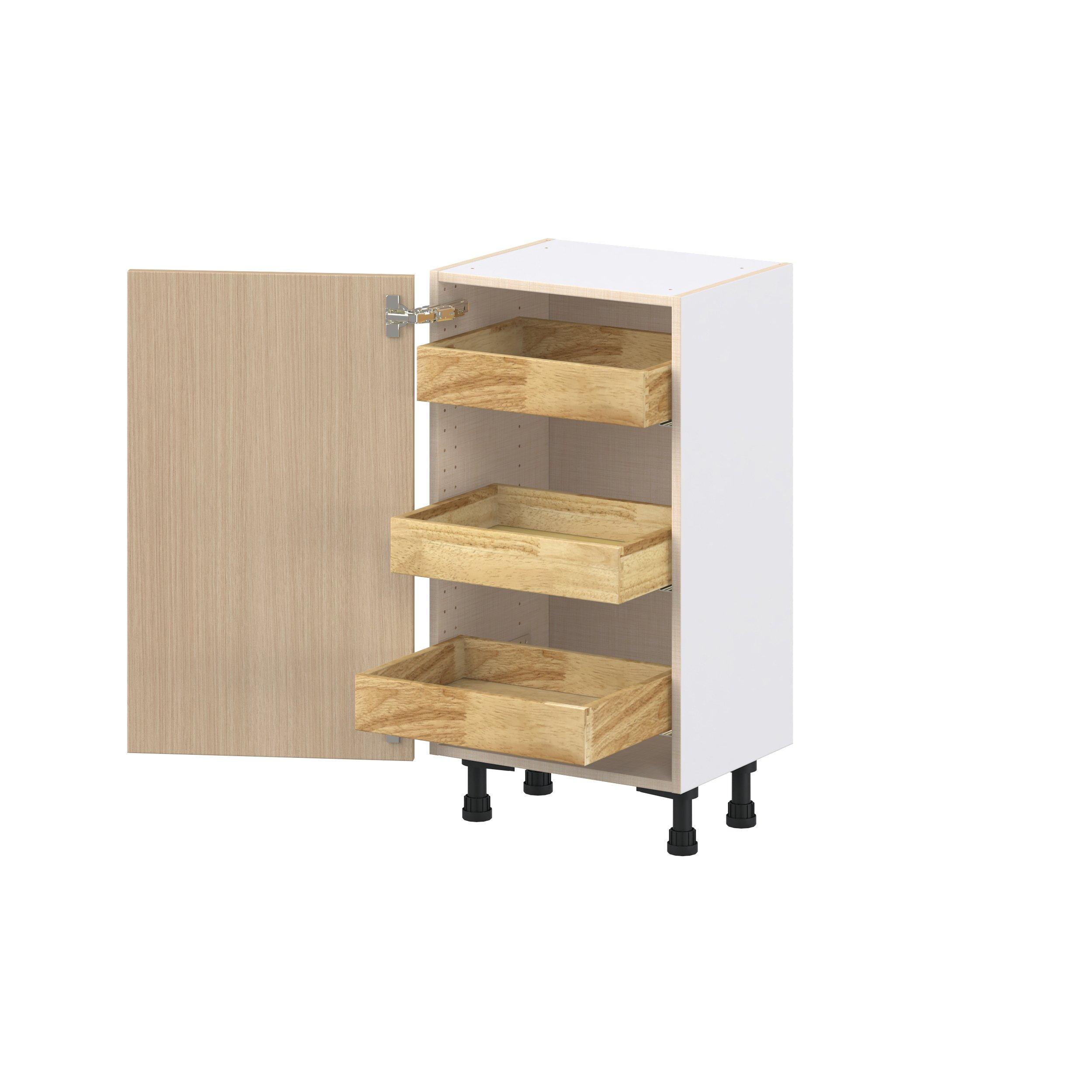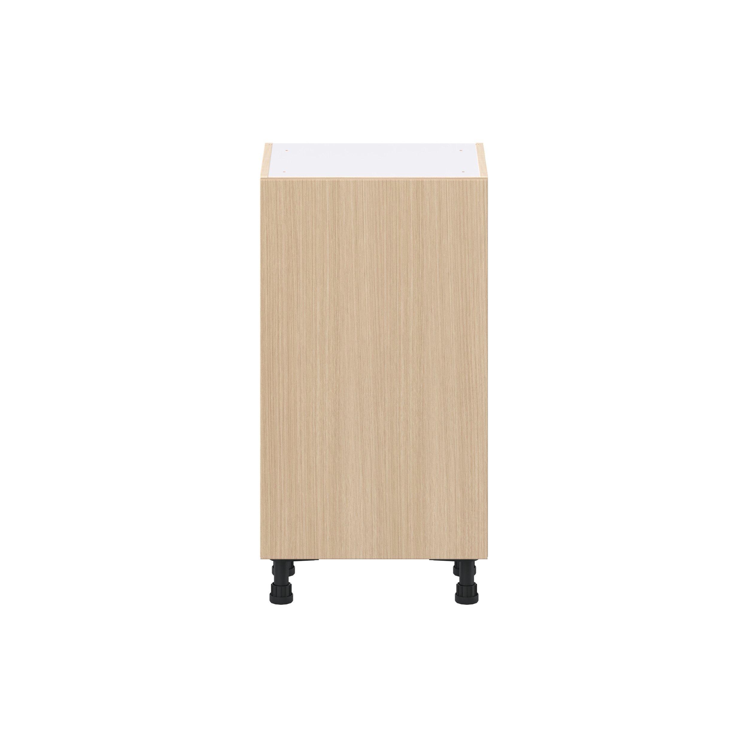 Elevate your project with the contemporary charm of Glenwood slab-style cabinets. Available in desert Mojavi oak and rich burnt walnut finishes, this collection captures the warmth and beauty of natural wood with the practicality of textured melamine. Crafted from one-piece MDF Studio Design Collection Glenwood 18 in. Mojavi Oak Shallow Base Cabinet with Inner Pull-Out Drawer is designed to resist hairline cracks while the easy-to-clean finish stands up to stains and moisture. Featuring 5-piece doors and dovetail drawer joints, these cabinets offer durability and elegance. This collection combines style with everyday storage solutions.