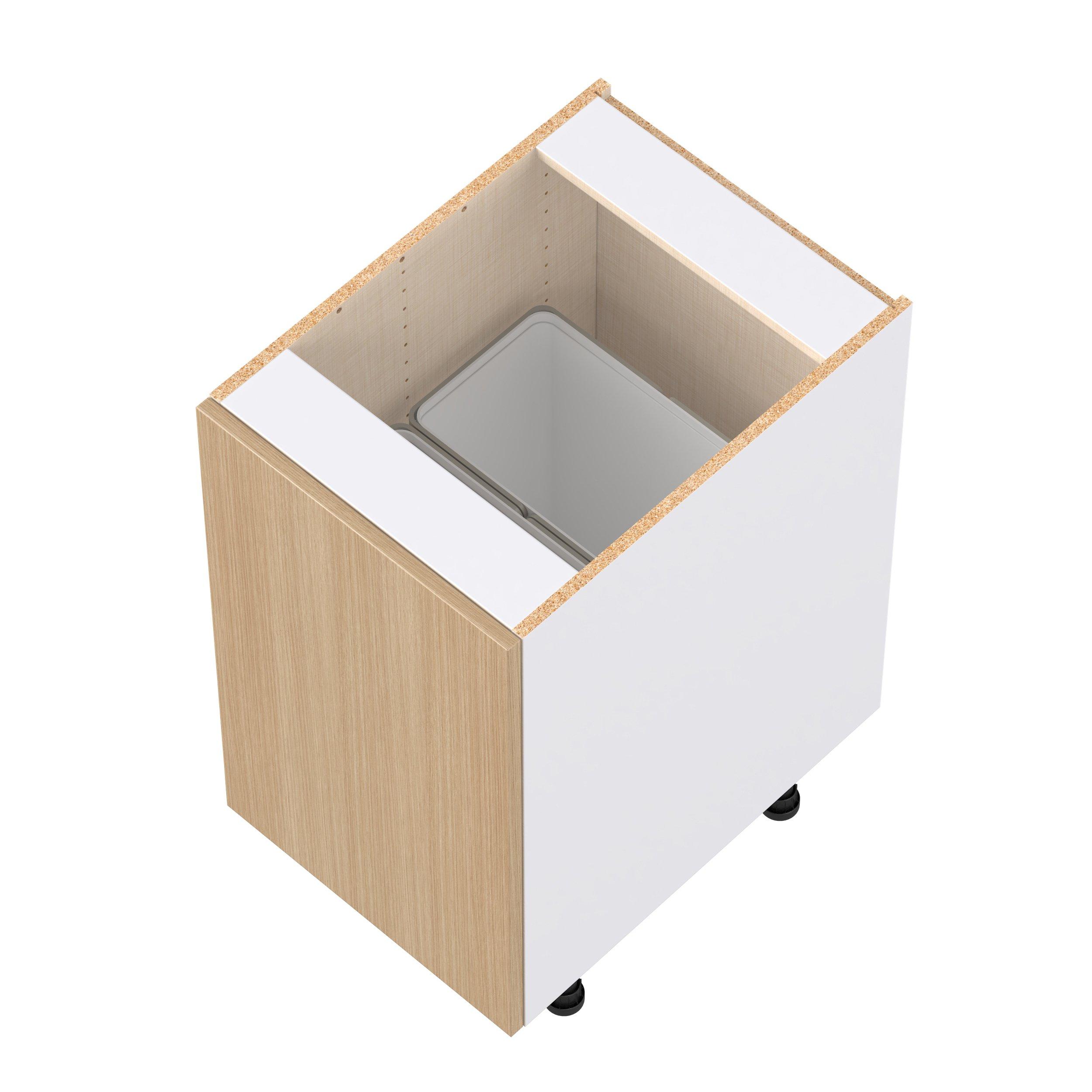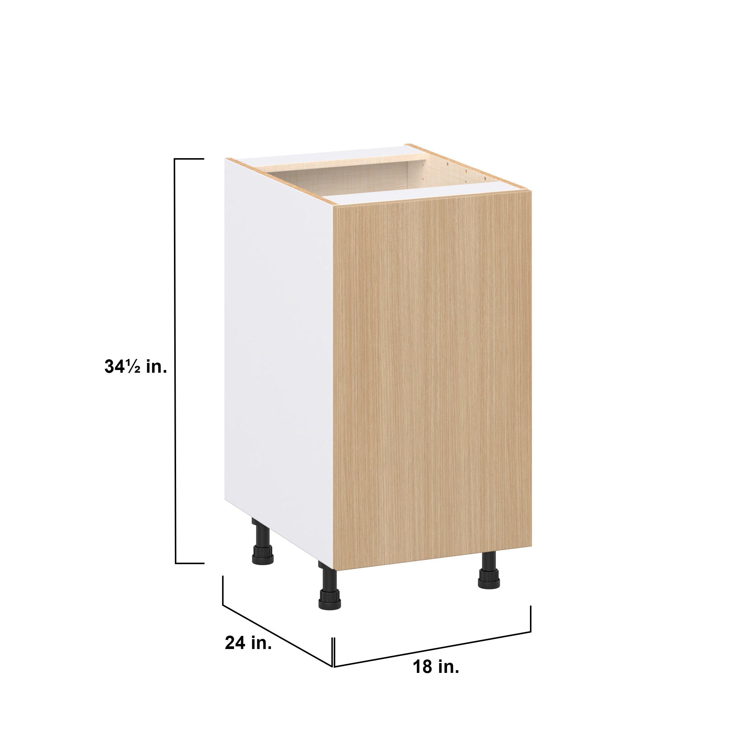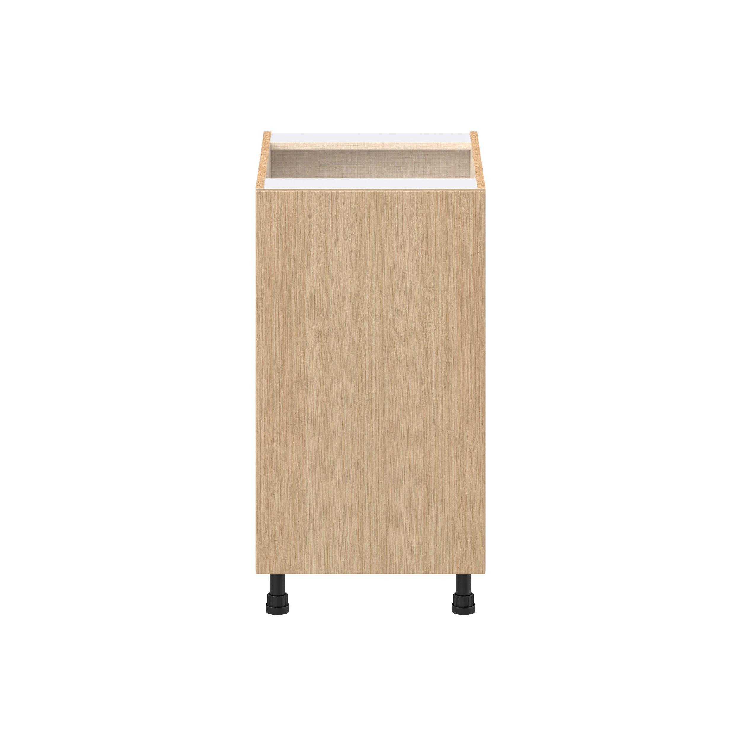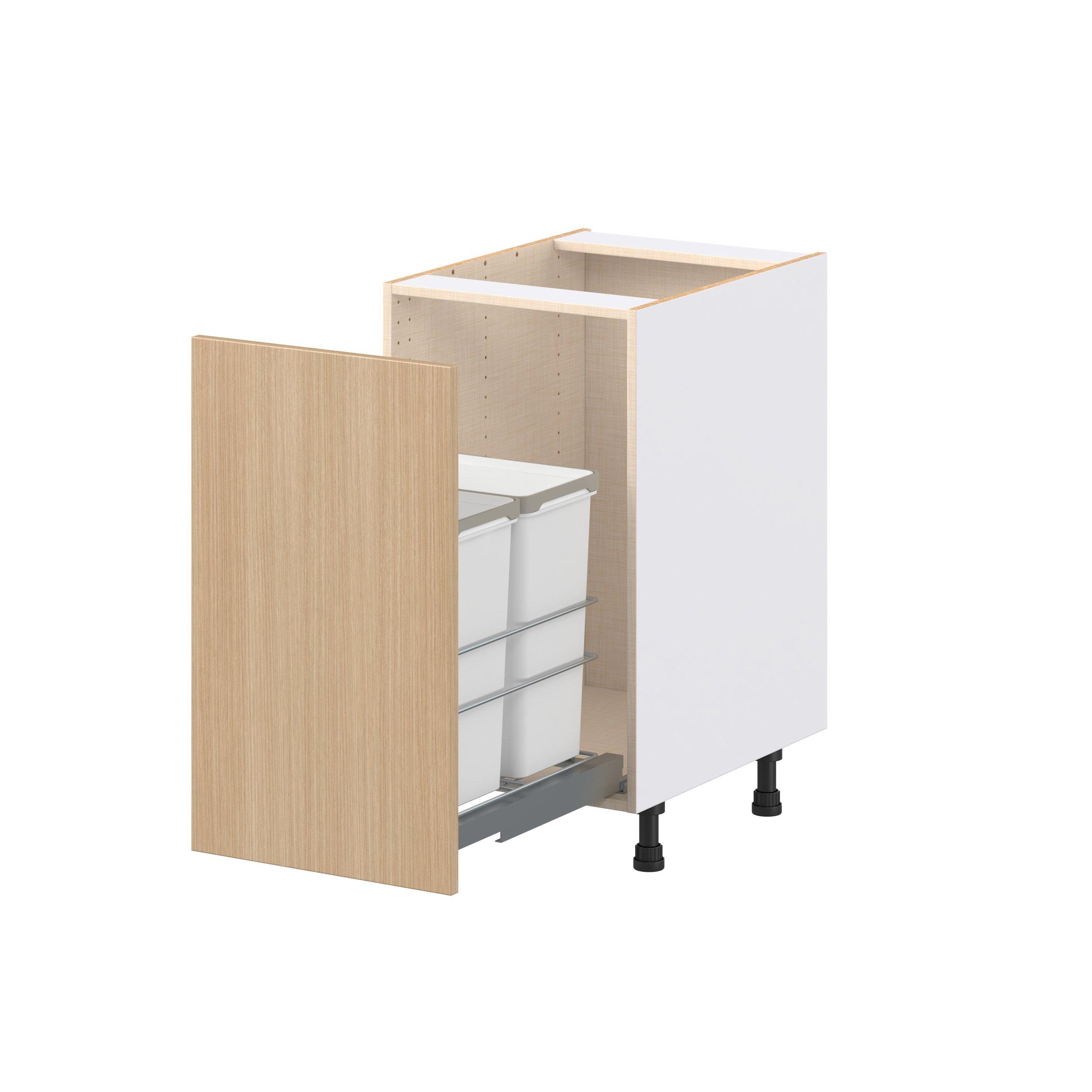 Elevate your project with the contemporary charm of Glenwood slab-style cabinets. Available in desert Mojavi oak and rich burnt walnut finishes, this collection captures the warmth and beauty of natural wood with the practicality of textured melamine. Crafted from one-piece MDF Studio Design Collection Glenwood 18 in. Mojavi Oak Trash Can Pull-Out Base Cabinet is designed to resist hairline cracks while the easy-to-clean finish stands up to stains and moisture. Featuring 5-piece doors and dovetail drawer joints, these cabinets offer durability and elegance. This collection combines style with everyday storage solutions.