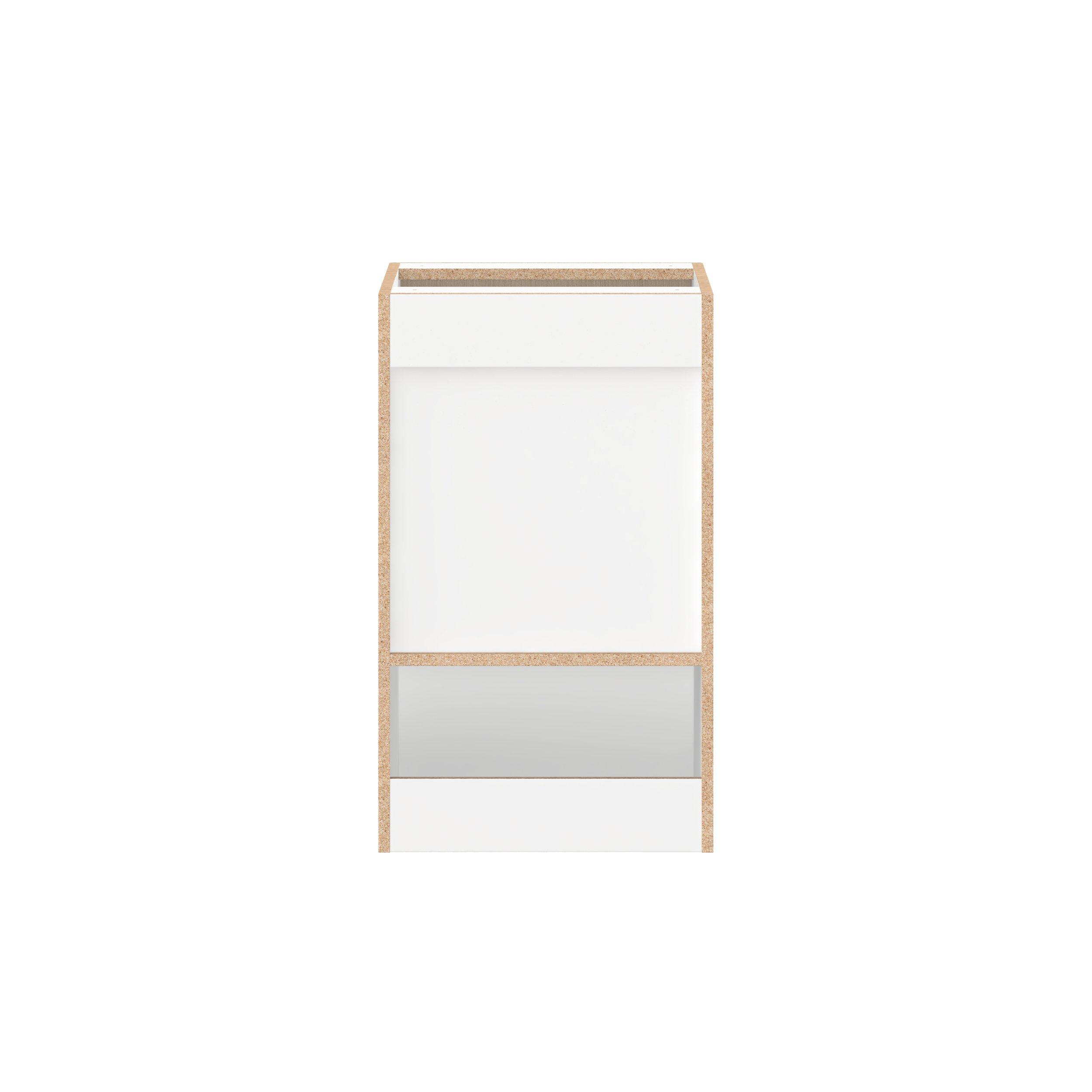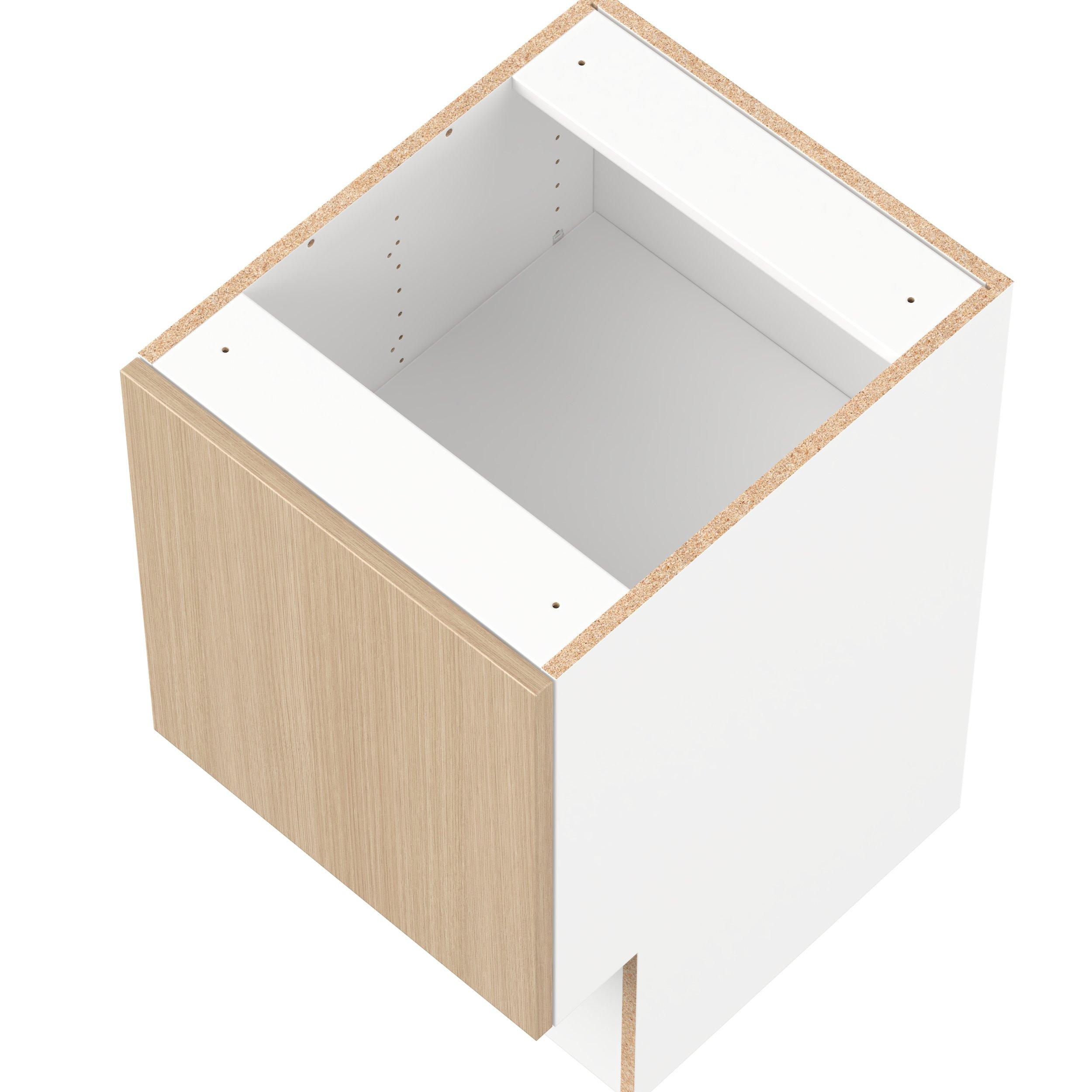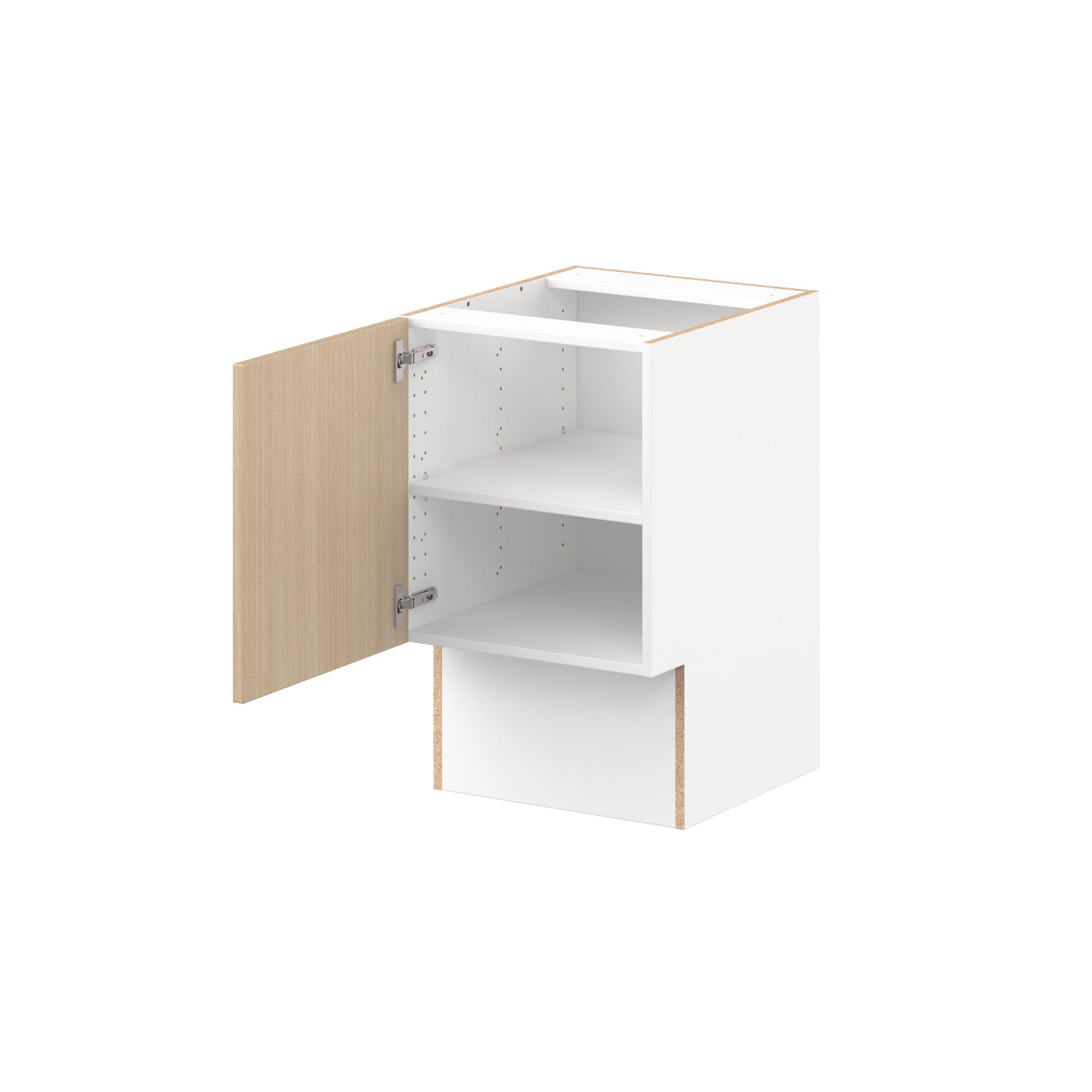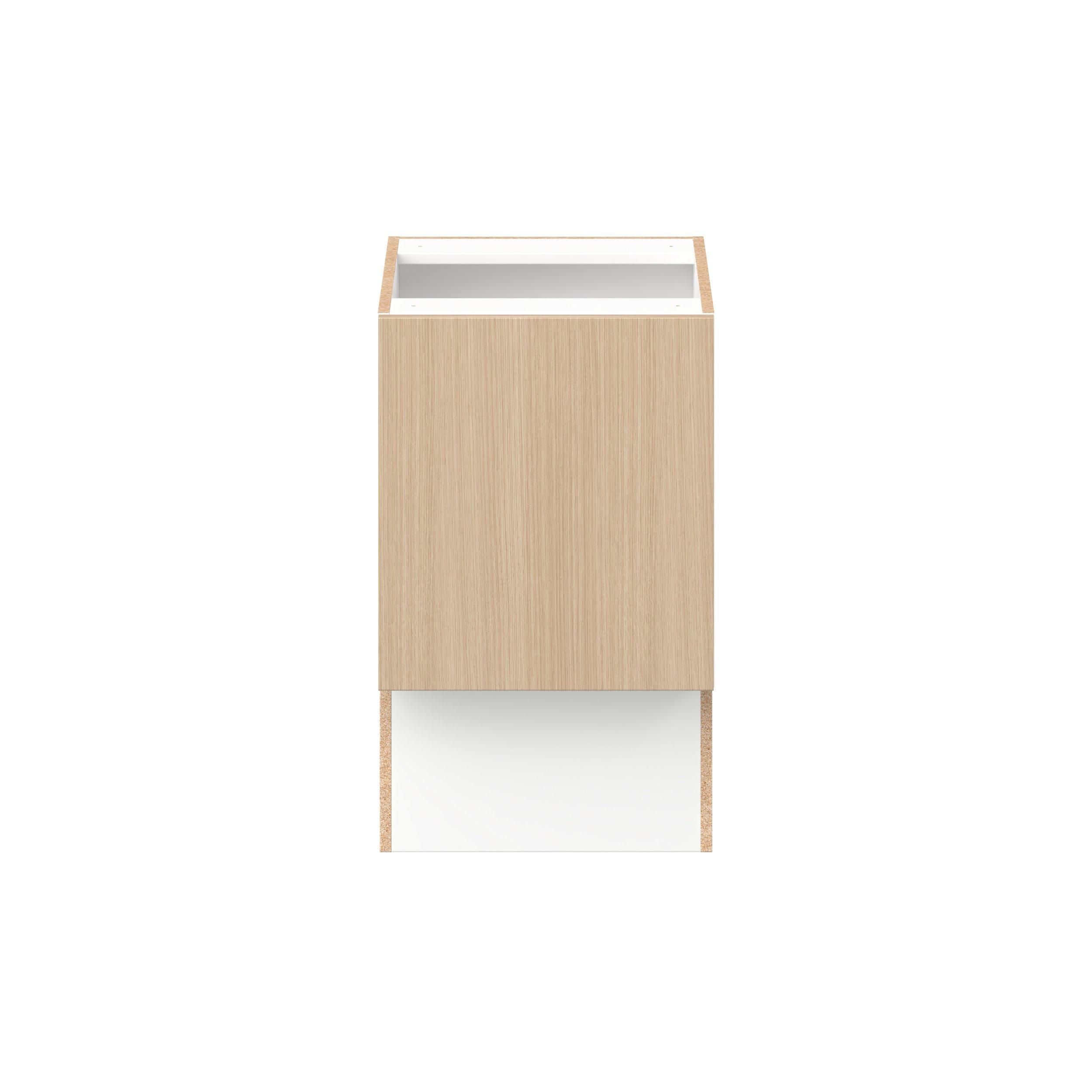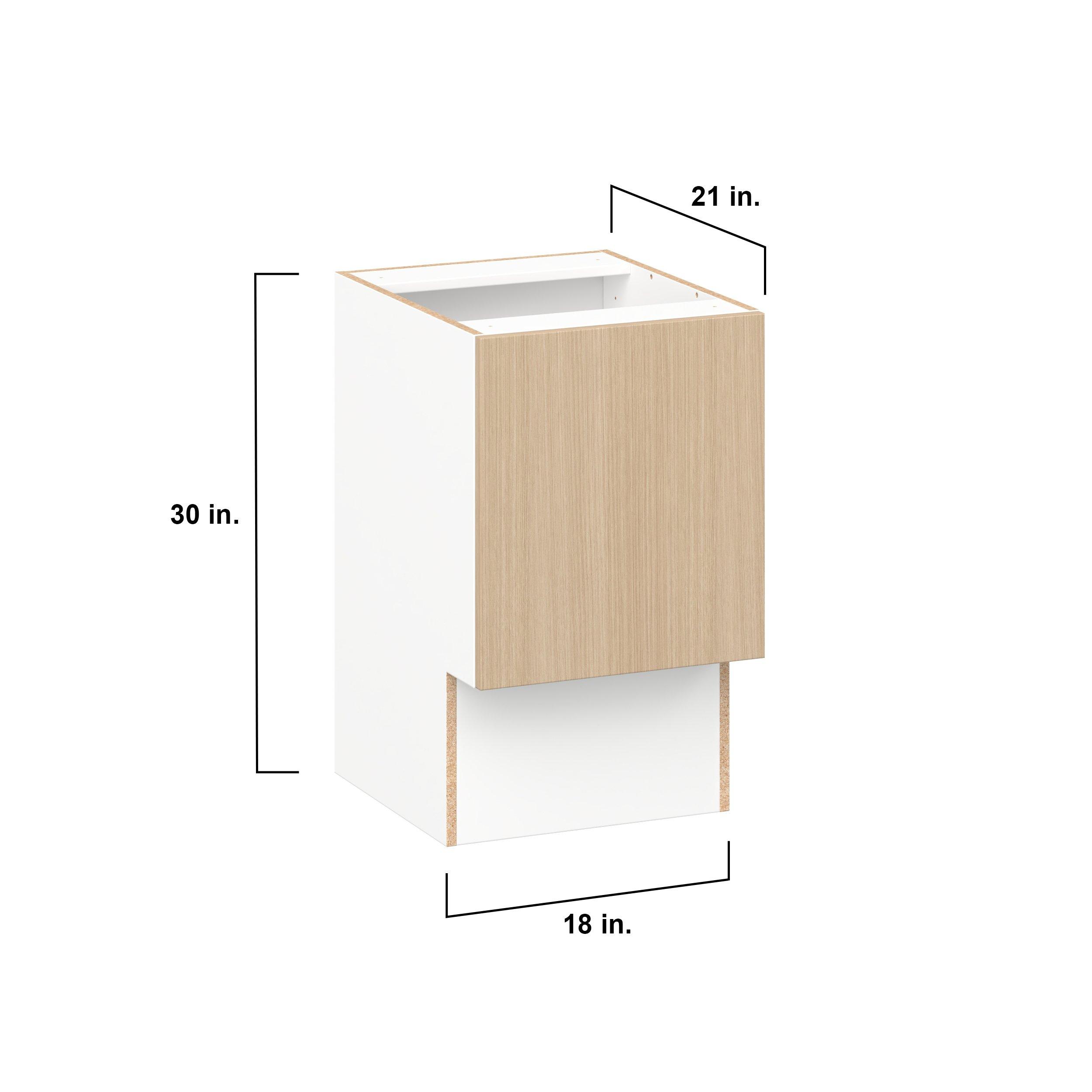 Elevate your project with the contemporary charm of Glenwood slab-style cabinets. Available in desert Mojavi oak and rich burnt walnut finishes, this collection captures the warmth and beauty of natural wood with the practicality of textured melamine. Crafted from one-piece MDF Studio Design Collection Glenwood 18 in. Mojavi Oak Vanity Door Base Cabinet - ADA is designed to resist hairline cracks while the easy-to-clean finish stands up to stains and moisture. Featuring 5-piece doors and dovetail drawer joints, these cabinets offer durability and elegance. This collection combines style with everyday storage solutions.