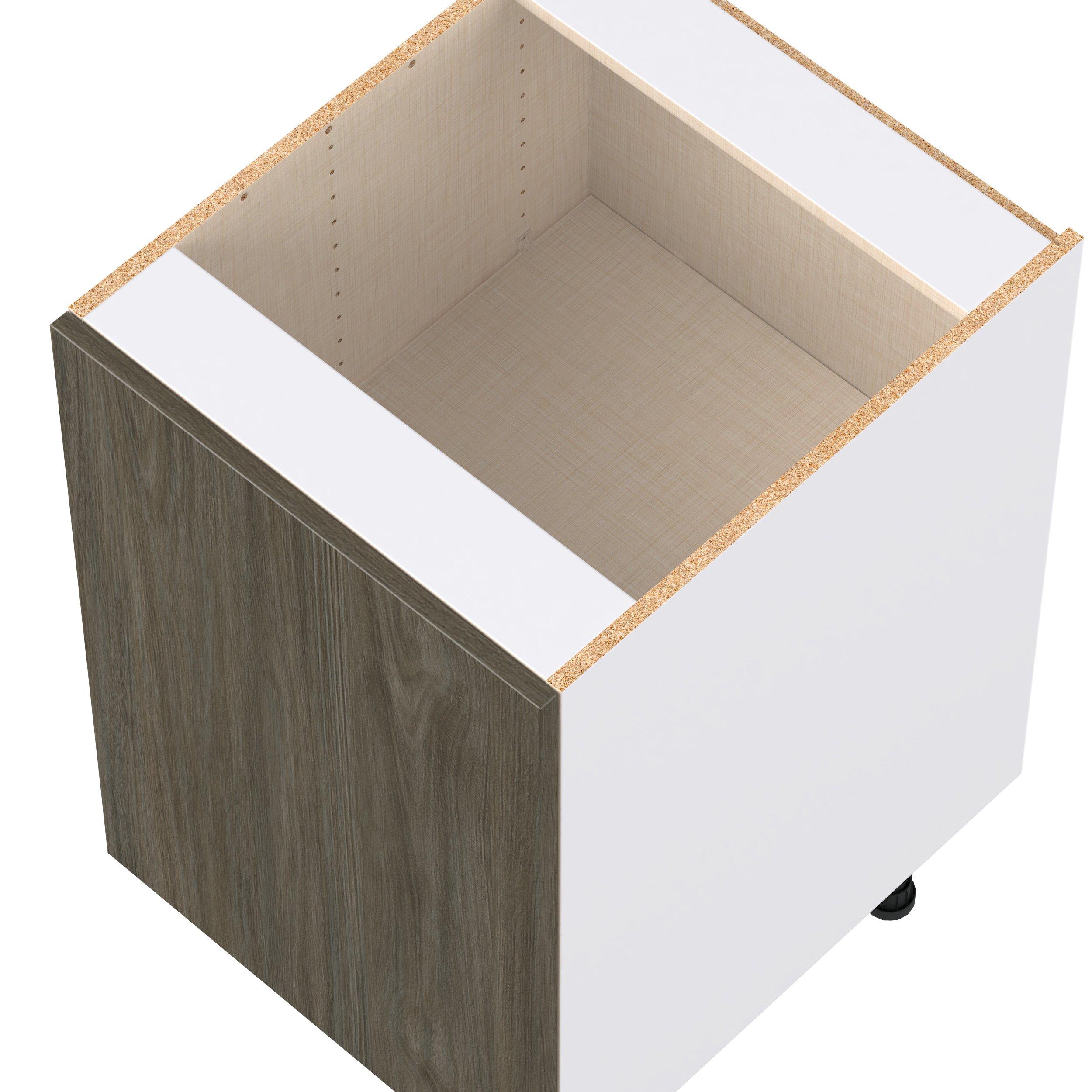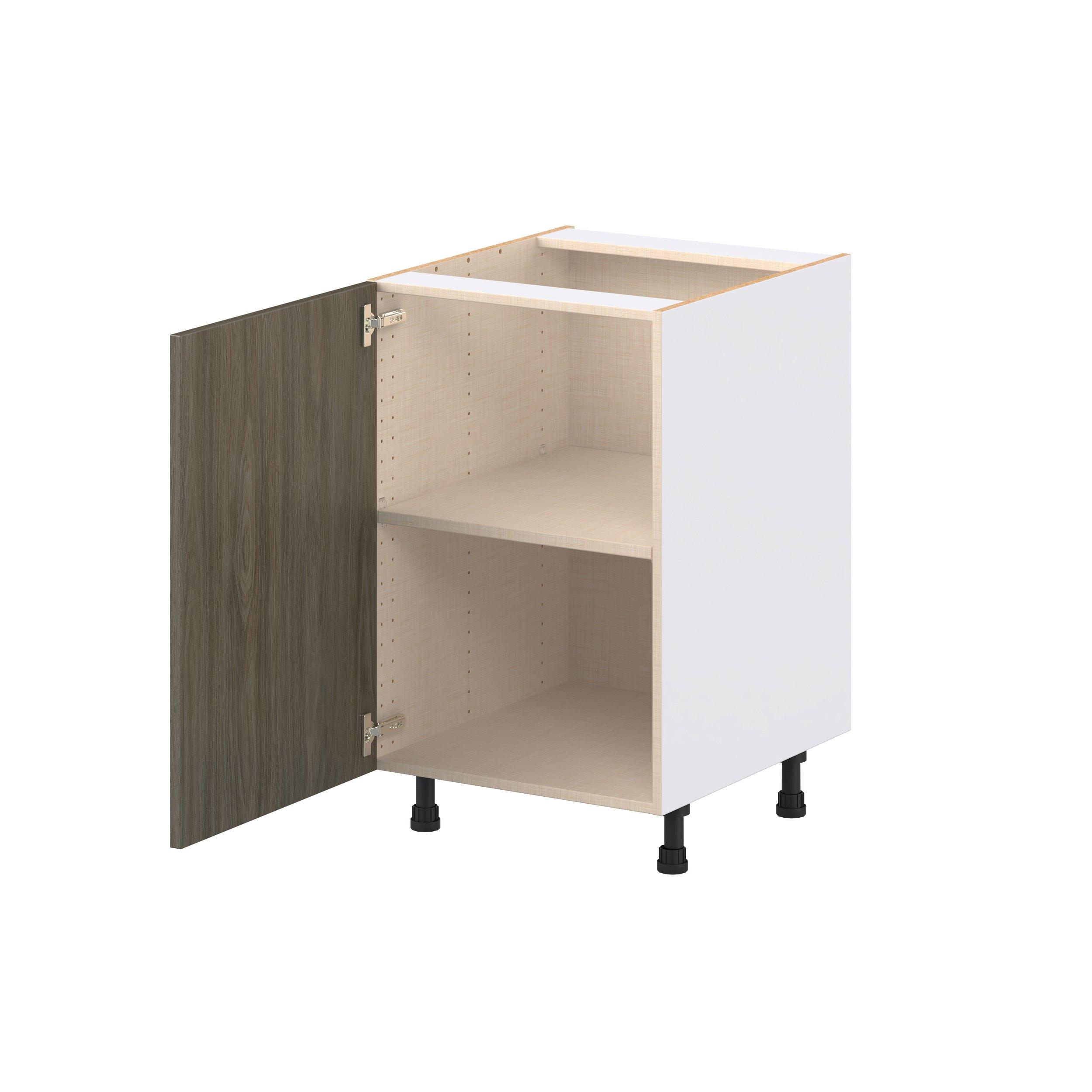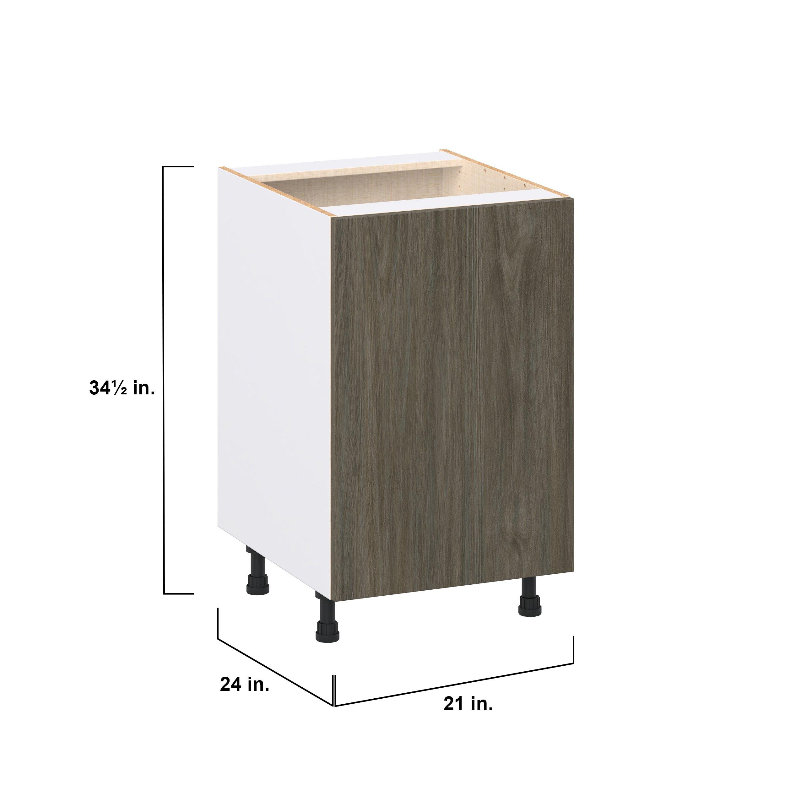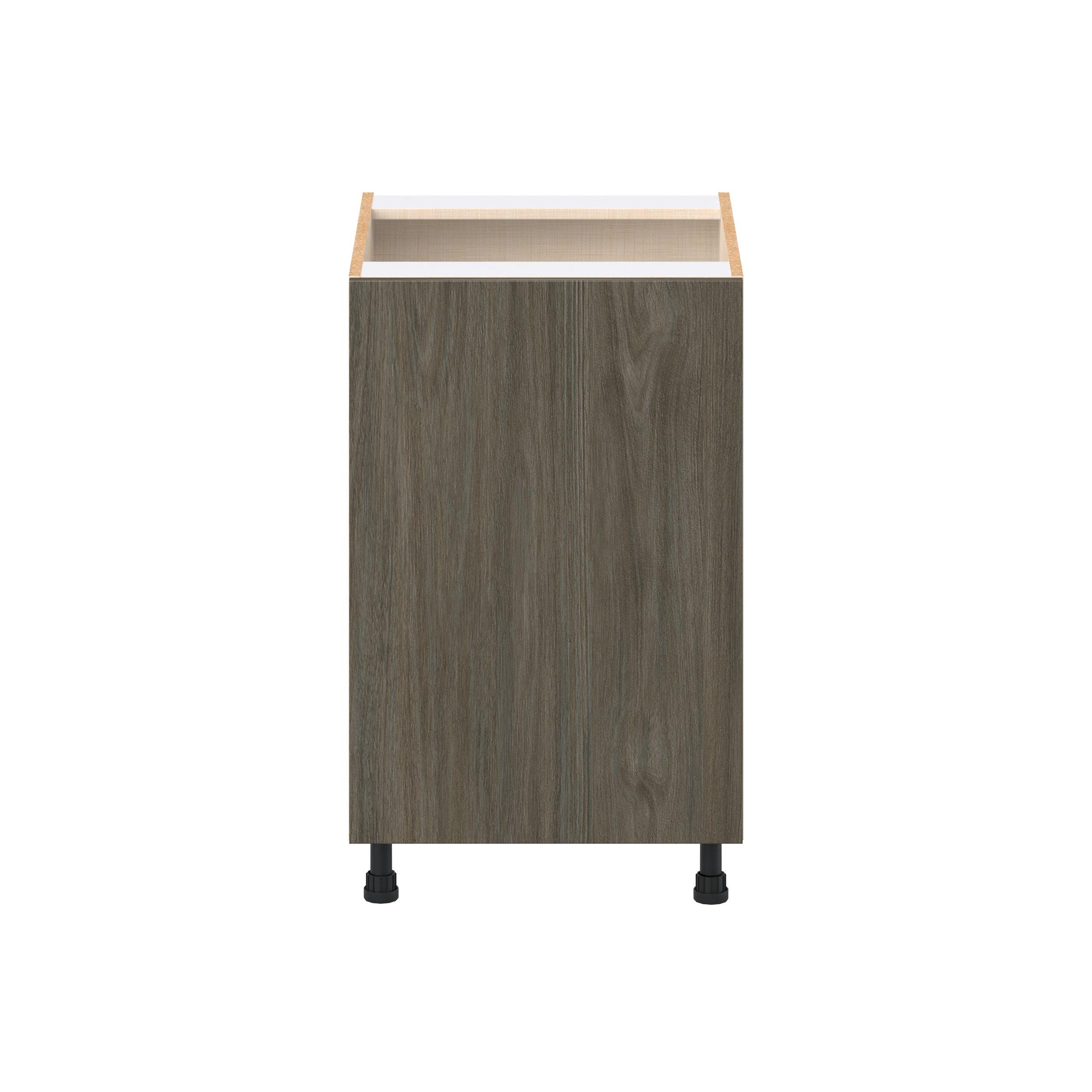 Elevate your project with the contemporary charm of Glenwood slab-style cabinets. Available in desert Mojavi oak and rich burnt walnut finishes, this collection captures the warmth and beauty of natural wood with the practicality of textured melamine. Crafted from one-piece MDF Studio Design Collection Glenwood 21 in. Burnt Walnut Door Base Cabinet is designed to resist hairline cracks while the easy-to-clean finish stands up to stains and moisture. Featuring 5-piece doors and dovetail drawer joints, these cabinets offer durability and elegance. This collection combines style with everyday storage solutions.