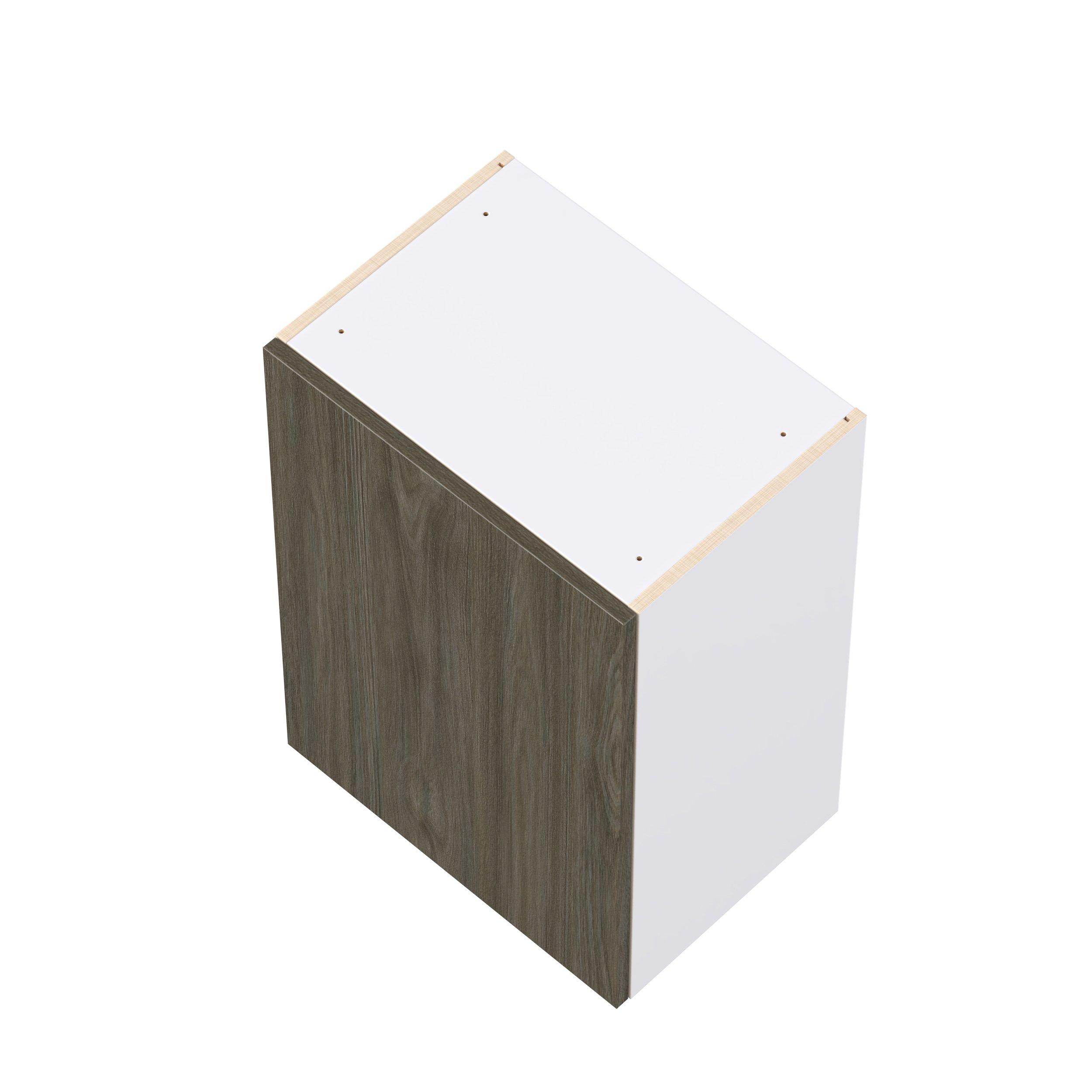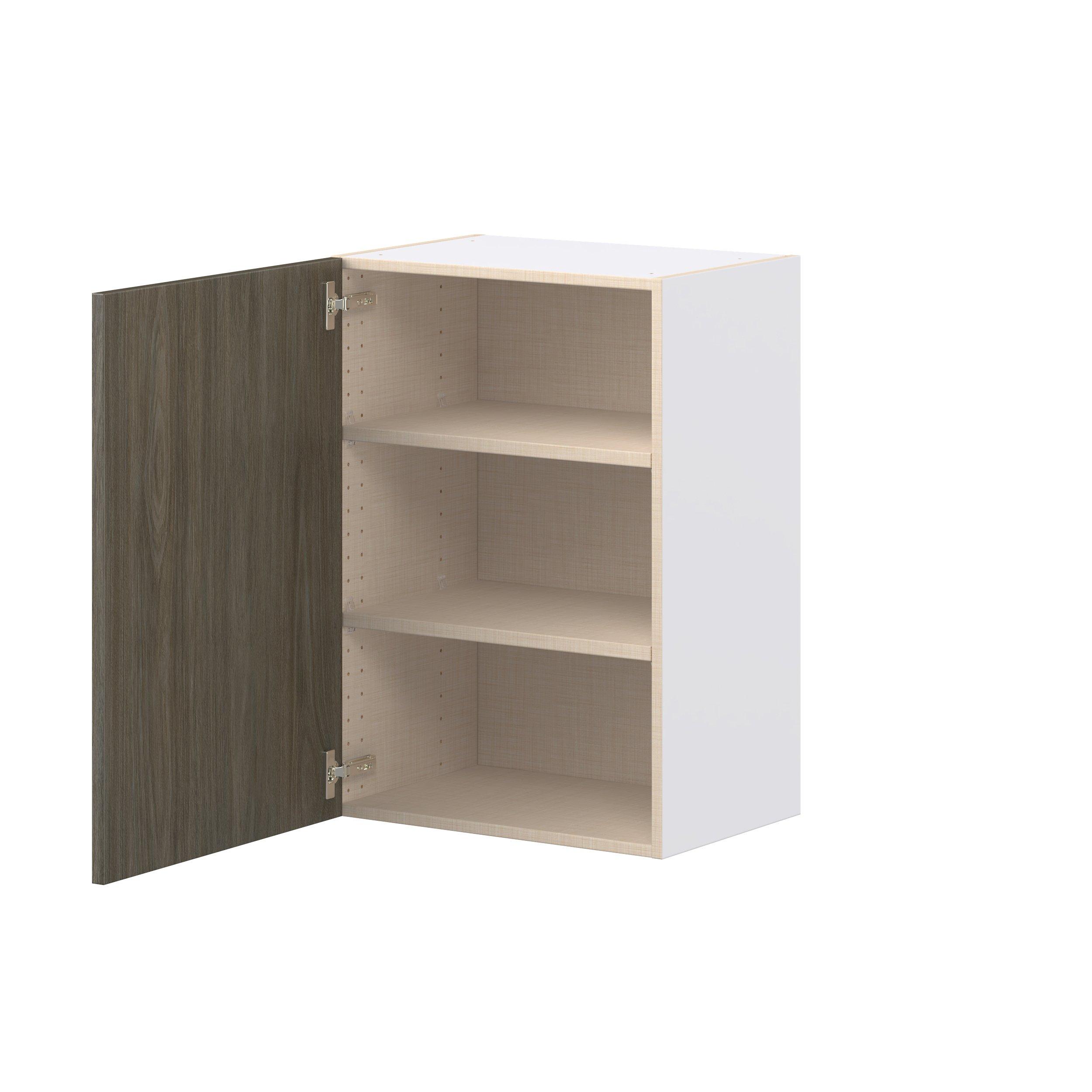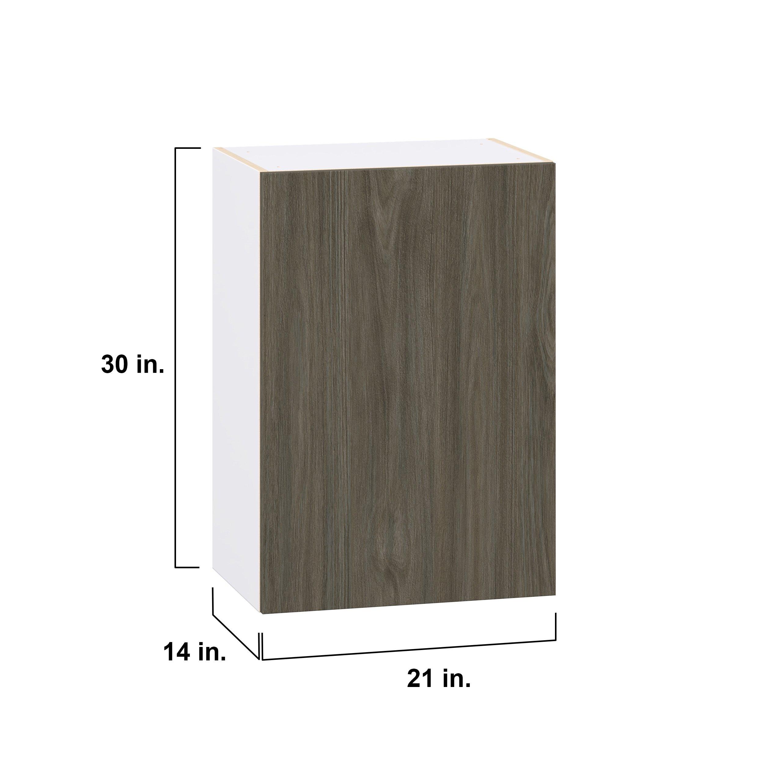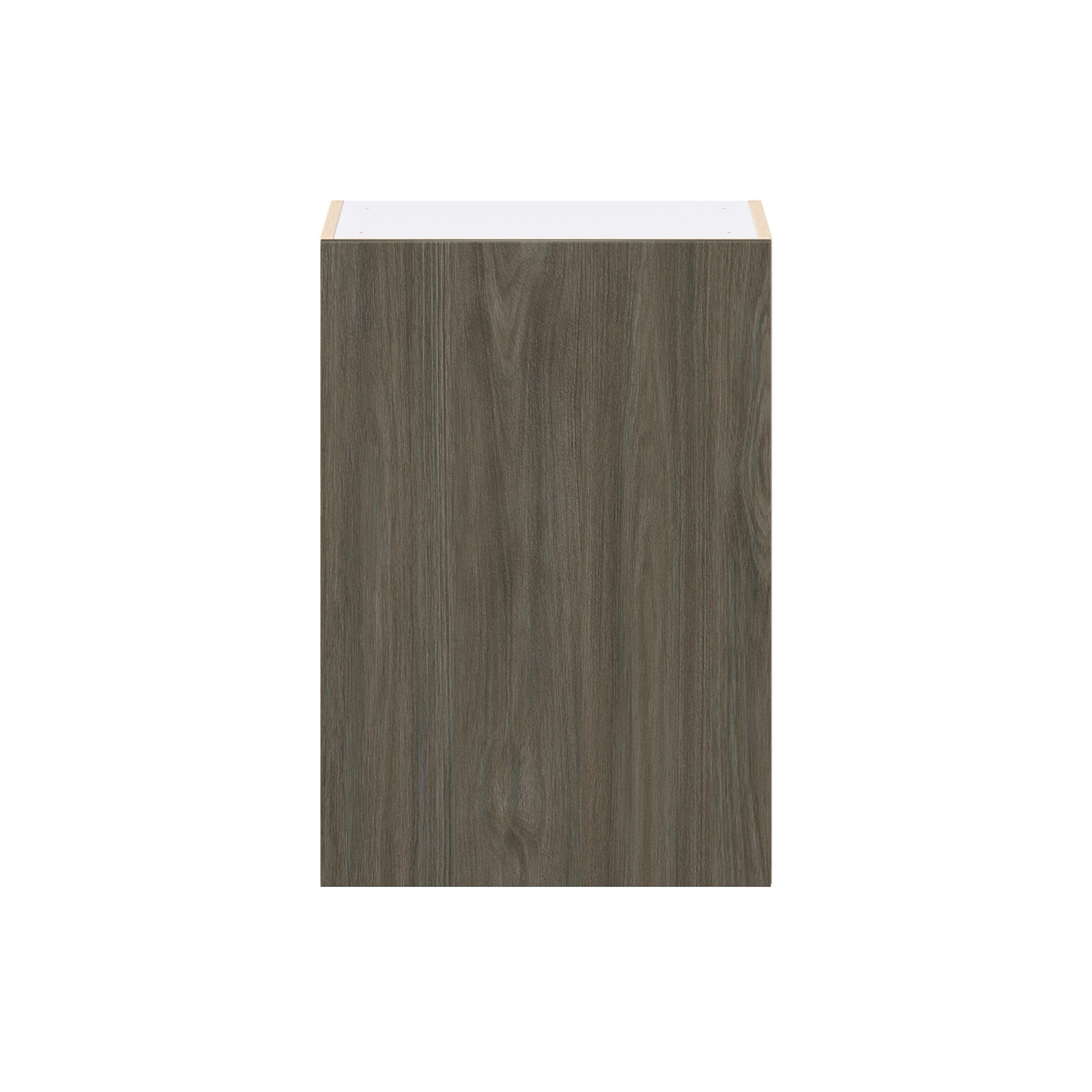 Elevate your project with the contemporary charm of Glenwood slab-style cabinets. Available in desert Mojavi oak and rich burnt walnut finishes, this collection captures the warmth and beauty of natural wood with the practicality of textured melamine. Crafted from one-piece MDF Studio Design Collection Glenwood 21 in. Burnt Walnut Door Wall Cabinet is designed to resist hairline cracks while the easy-to-clean finish stands up to stains and moisture. Featuring 5-piece doors and dovetail drawer joints, these cabinets offer durability and elegance. This collection combines style with everyday storage solutions.