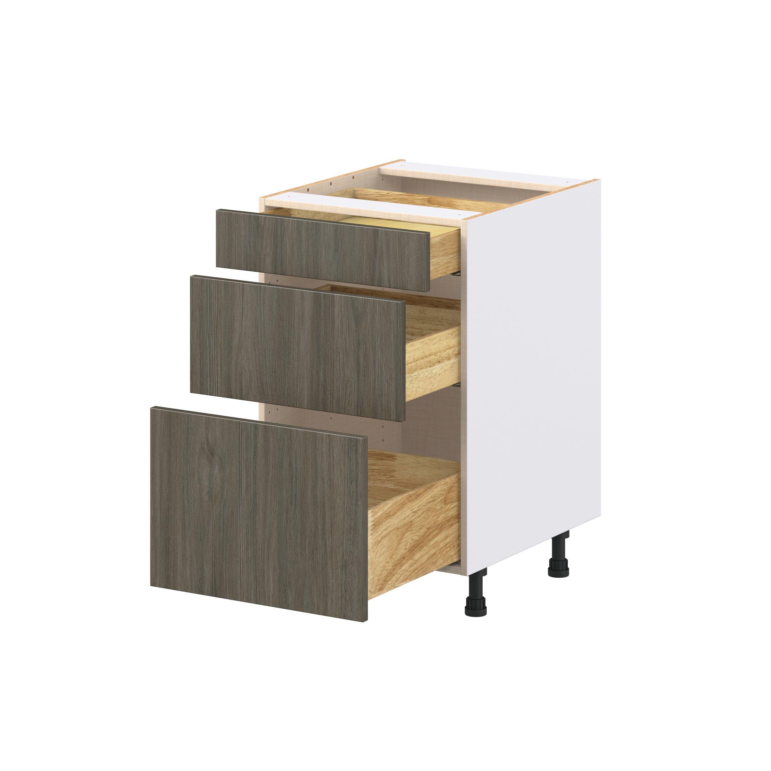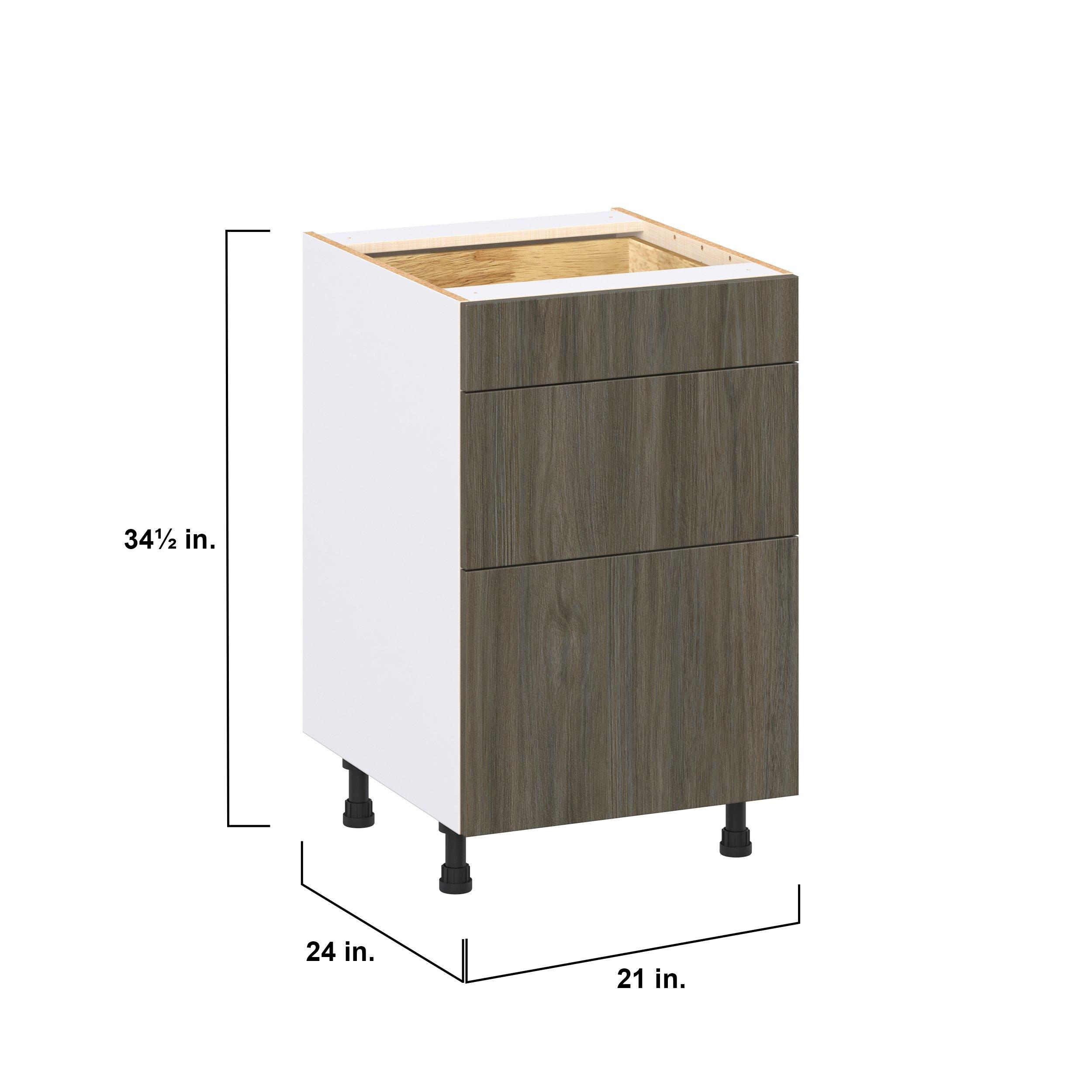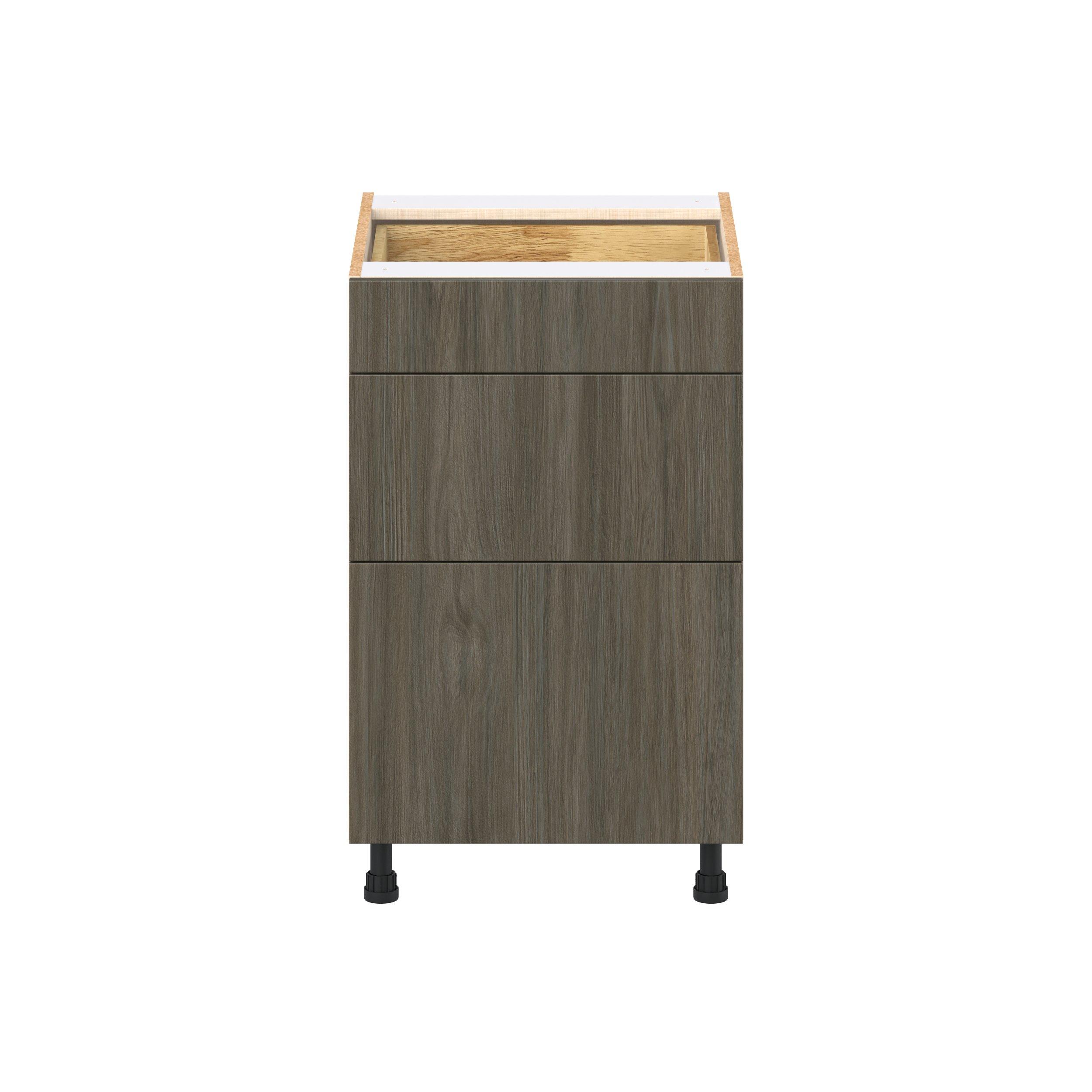 Elevate your project with the contemporary charm of Glenwood slab-style cabinets. Available in desert Mojavi oak and rich burnt walnut finishes, this collection captures the warmth and beauty of natural wood with the practicality of textured melamine. Crafted from one-piece MDF Studio Design Collection Glenwood 21 in. Burnt Walnut Drawer Base Cabinet is designed to resist hairline cracks while the easy-to-clean finish stands up to stains and moisture. Featuring 5-piece doors and dovetail drawer joints, these cabinets offer durability and elegance. This collection combines style with everyday storage solutions.