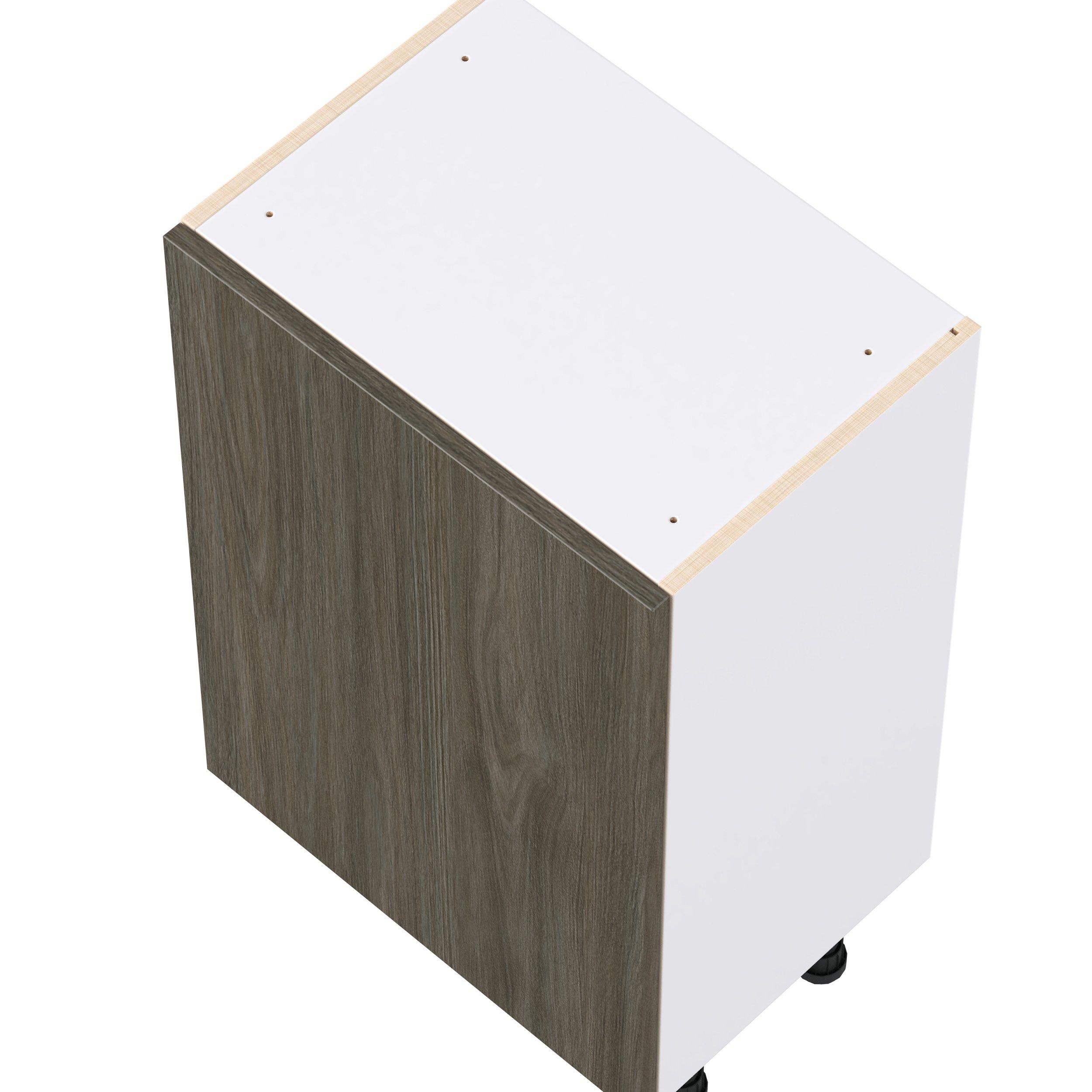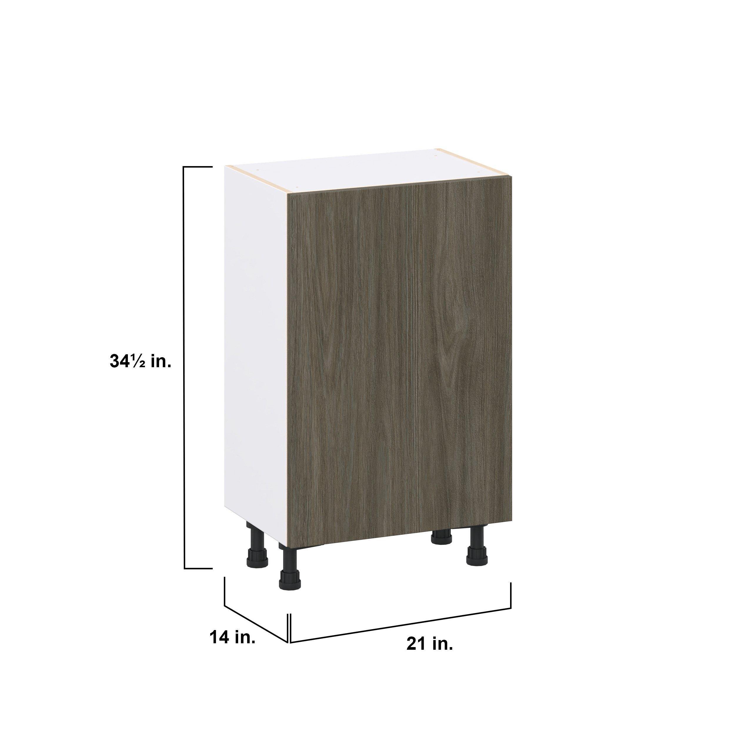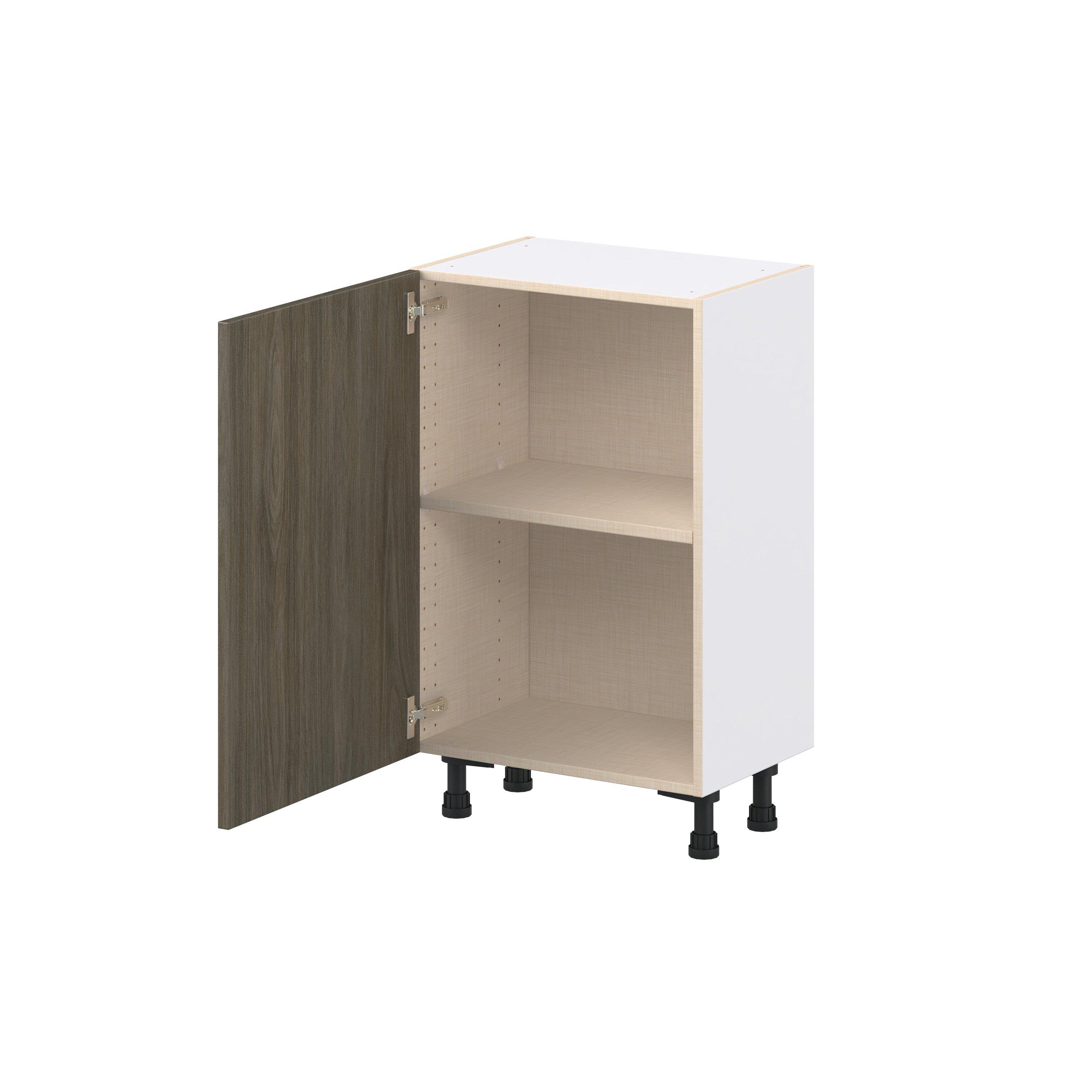 Elevate your project with the contemporary charm of Glenwood slab-style cabinets. Available in desert Mojavi oak and rich burnt walnut finishes, this collection captures the warmth and beauty of natural wood with the practicality of textured melamine. Crafted from one-piece MDF Studio Design Collection Glenwood 21 in. Burnt Walnut Shallow Base Cabinet is designed to resist hairline cracks while the easy-to-clean finish stands up to stains and moisture. Featuring 5-piece doors and dovetail drawer joints, these cabinets offer durability and elegance. This collection combines style with everyday storage solutions.