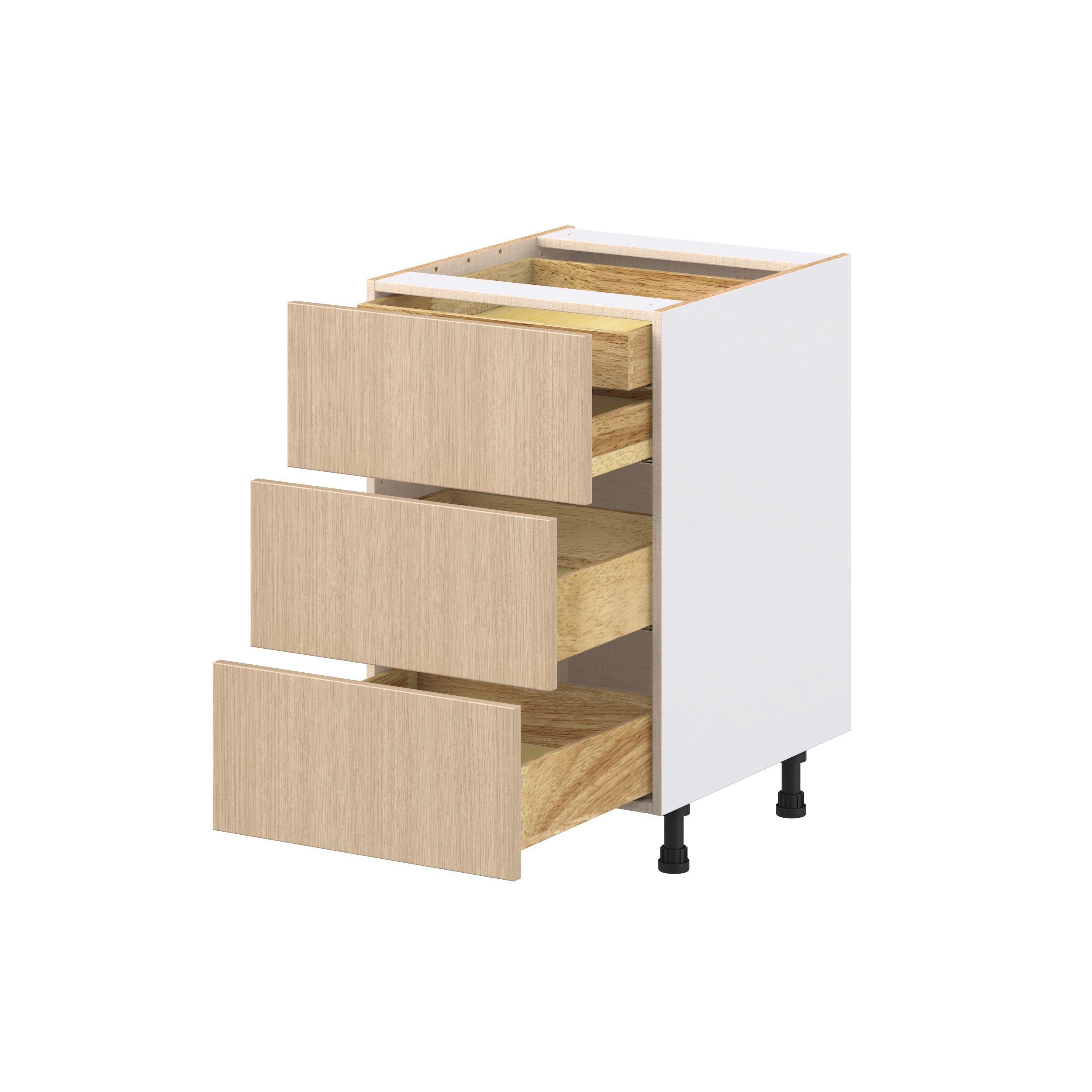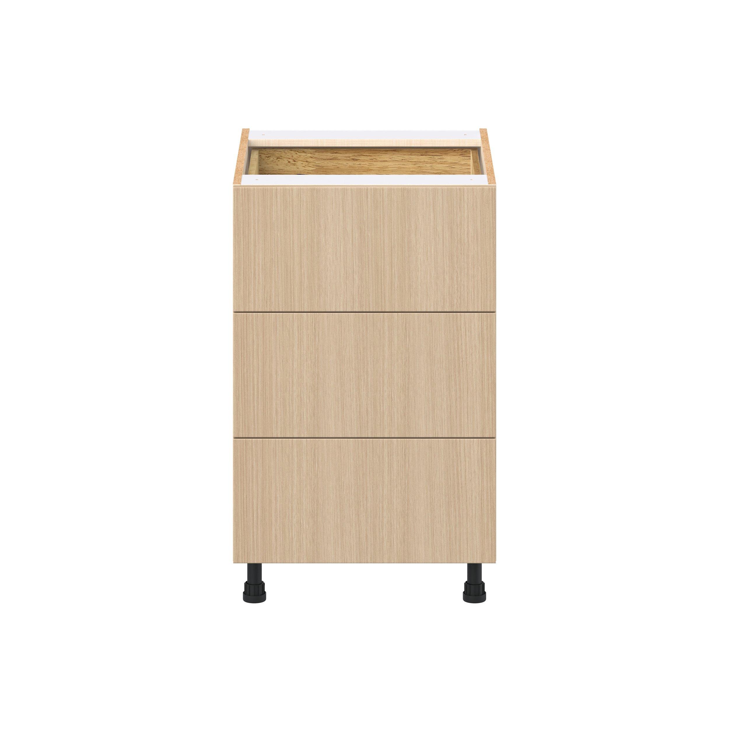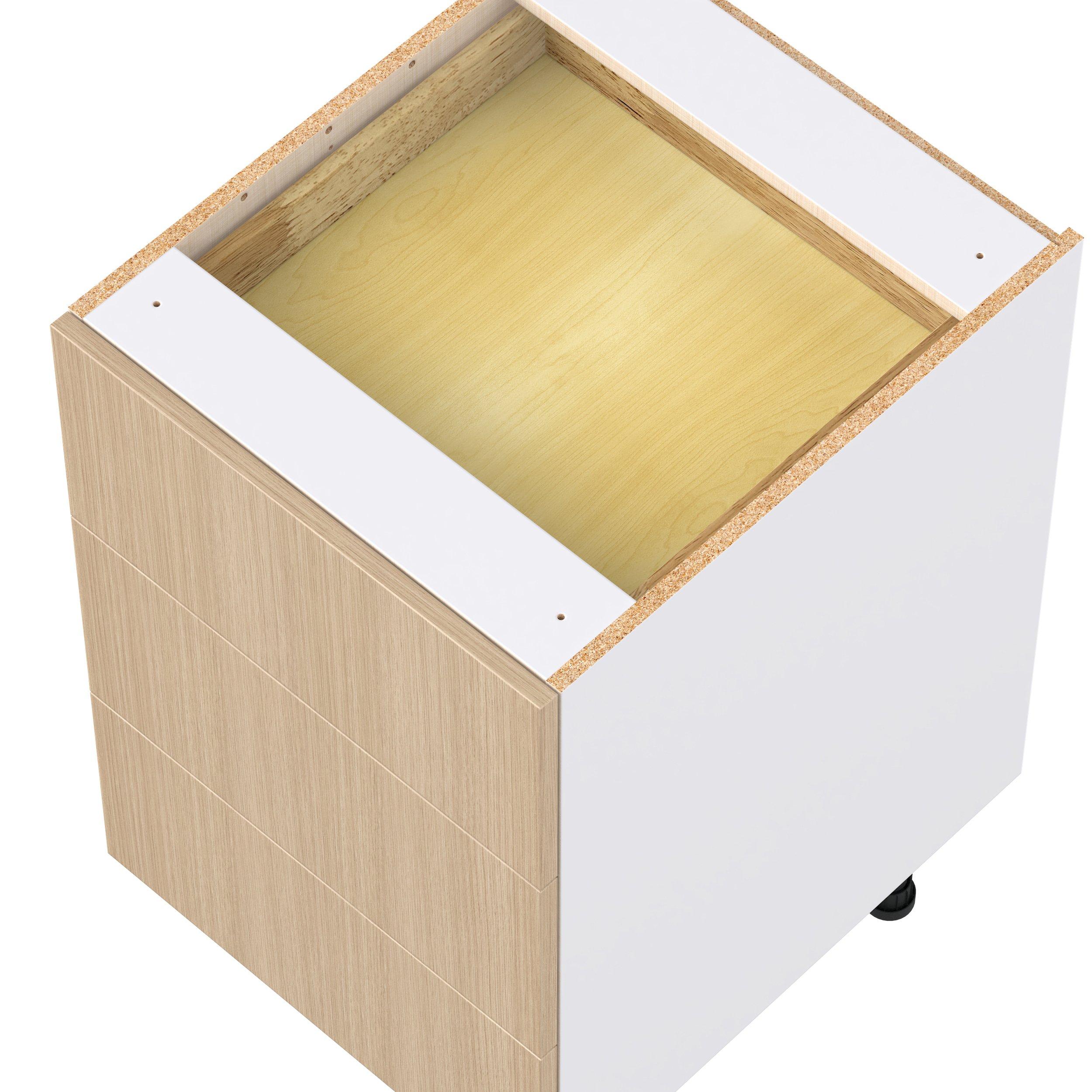 Elevate your project with the contemporary charm of Glenwood slab-style cabinets. Available in desert Mojavi oak and rich burnt walnut finishes, this collection captures the warmth and beauty of natural wood with the practicality of textured melamine. Crafted from one-piece MDF Studio Design Collection Glenwood 21 in. Mojavi Oak Base Cabinet with Inner Pull-Out Drawer is designed to resist hairline cracks while the easy-to-clean finish stands up to stains and moisture. Featuring 5-piece doors and dovetail drawer joints, these cabinets offer durability and elegance. This collection combines style with everyday storage solutions.