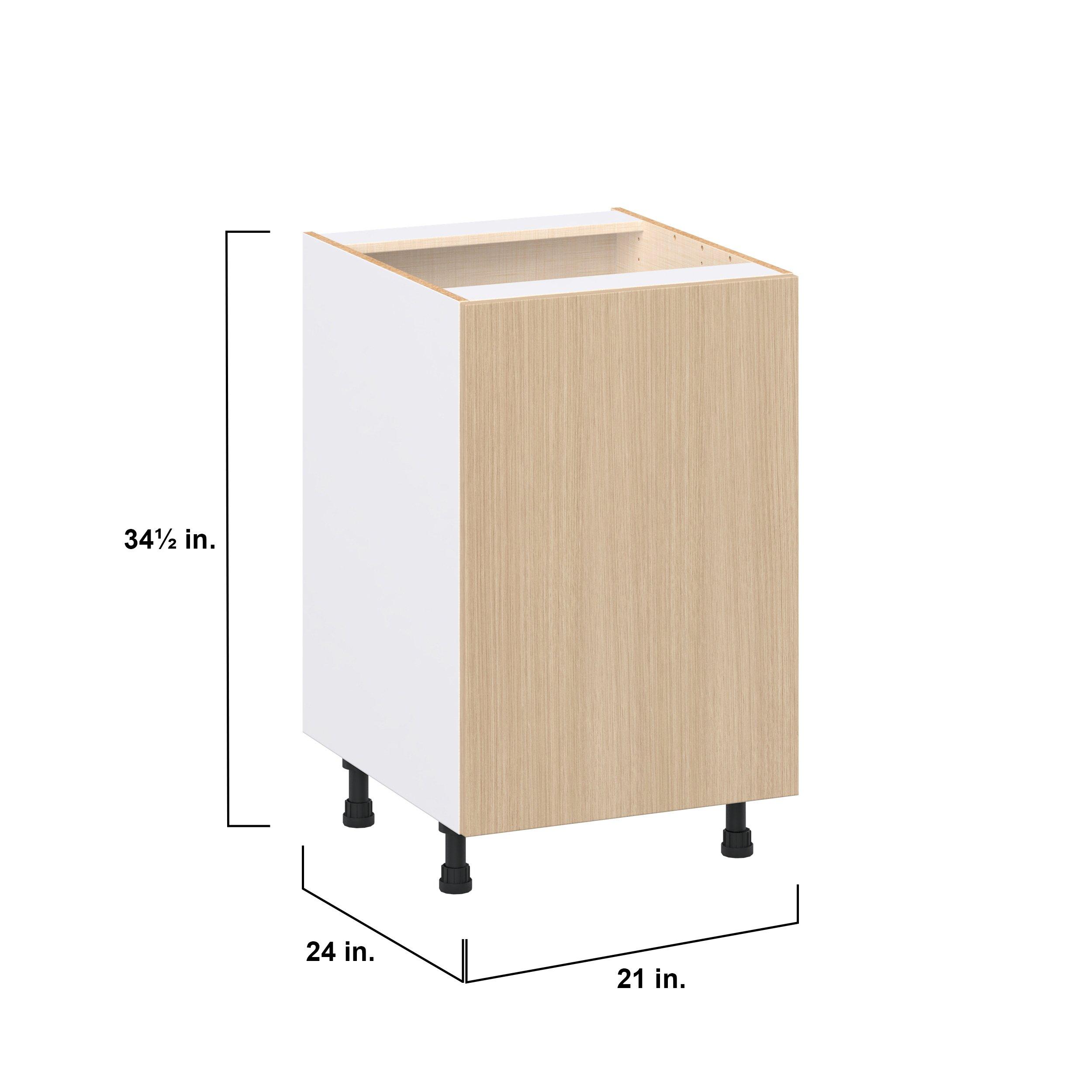 Elevate your project with the contemporary charm of Glenwood slab-style cabinets. Available in desert Mojavi oak and rich burnt walnut finishes, this collection captures the warmth and beauty of natural wood with the practicality of textured melamine. Crafted from one-piece MDF Studio Design Collection Glenwood 21 in. Mojavi Oak Door Base Cabinet is designed to resist hairline cracks while the easy-to-clean finish stands up to stains and moisture. Featuring 5-piece doors and dovetail drawer joints, these cabinets offer durability and elegance. This collection combines style with everyday storage solutions.