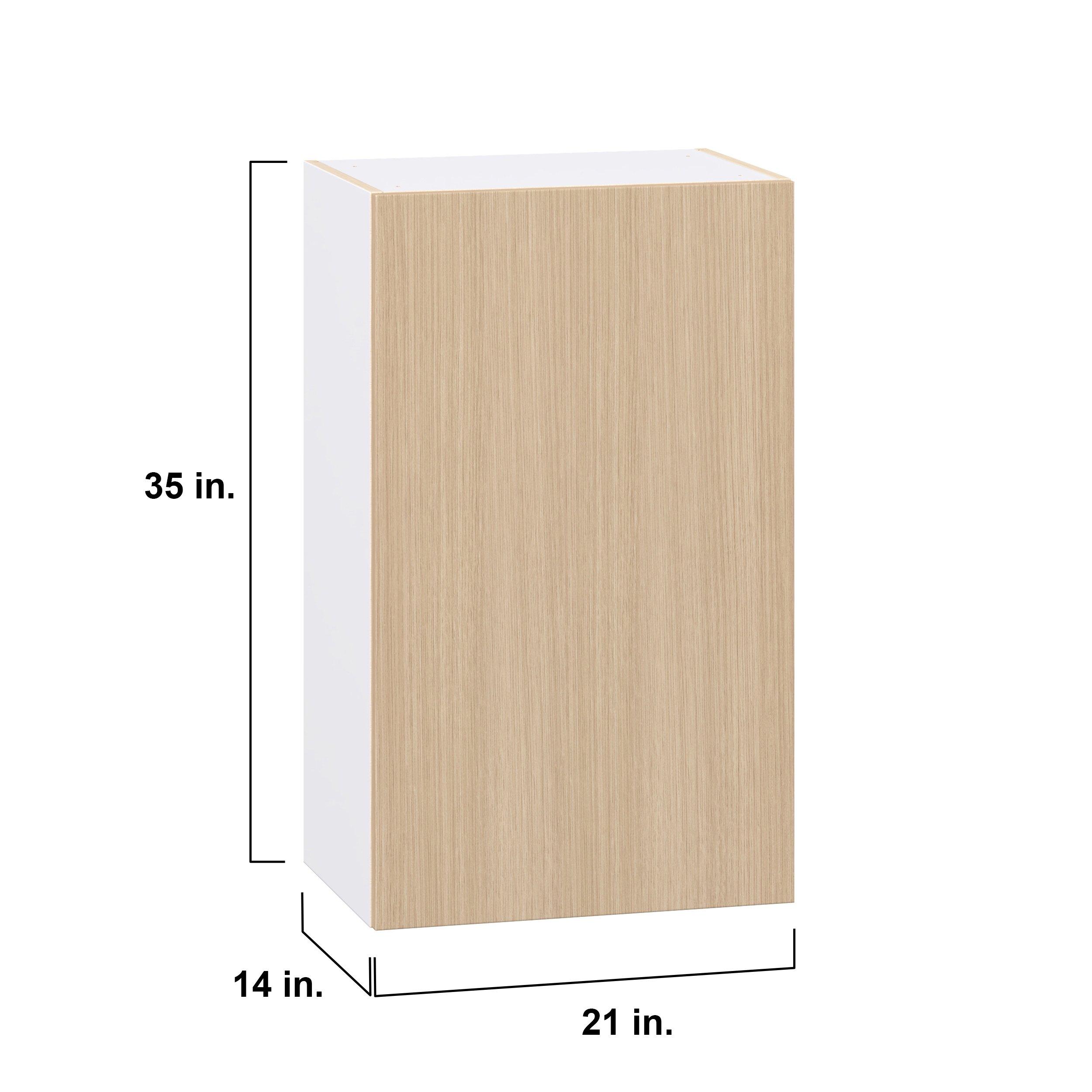 Elevate your project with the contemporary charm of Glenwood slab-style cabinets. Available in desert Mojavi oak and rich burnt walnut finishes, this collection captures the warmth and beauty of natural wood with the practicality of textured melamine. Crafted from one-piece MDF Studio Design Collection Glenwood 21 in. Mojavi Oak Door Wall Cabinet is designed to resist hairline cracks while the easy-to-clean finish stands up to stains and moisture. Featuring 5-piece doors and dovetail drawer joints, these cabinets offer durability and elegance. This collection combines style with everyday storage solutions.
