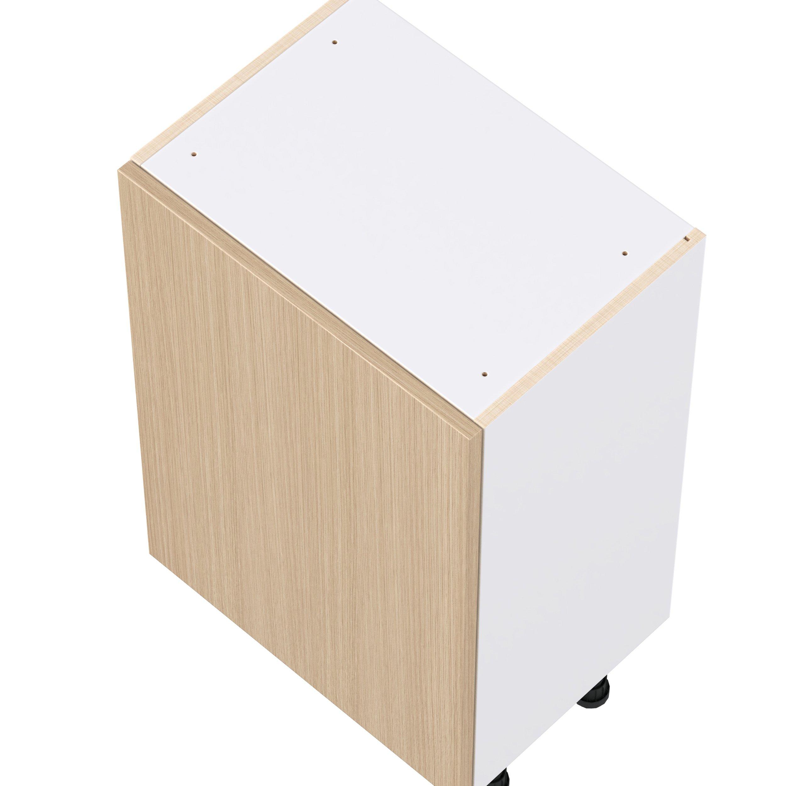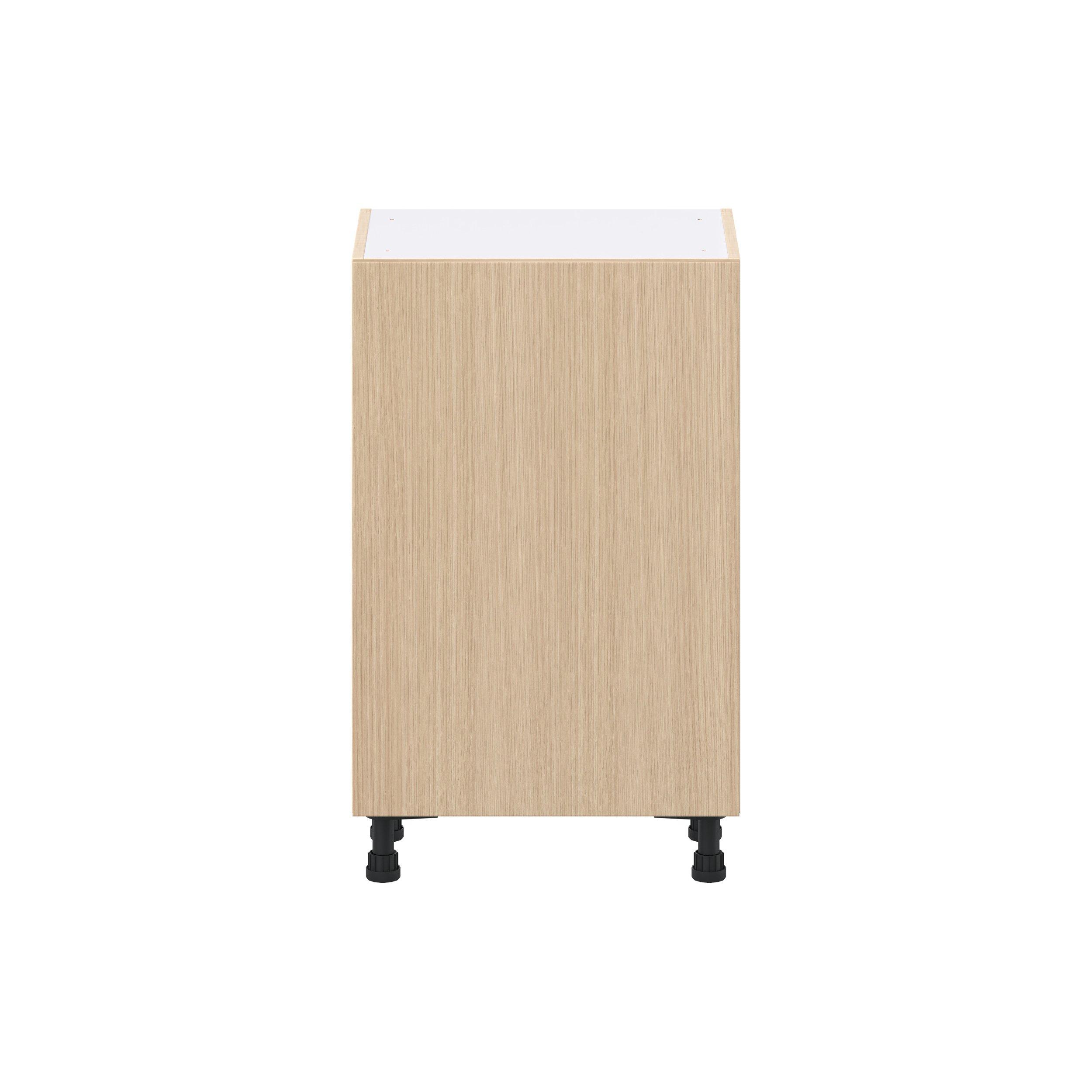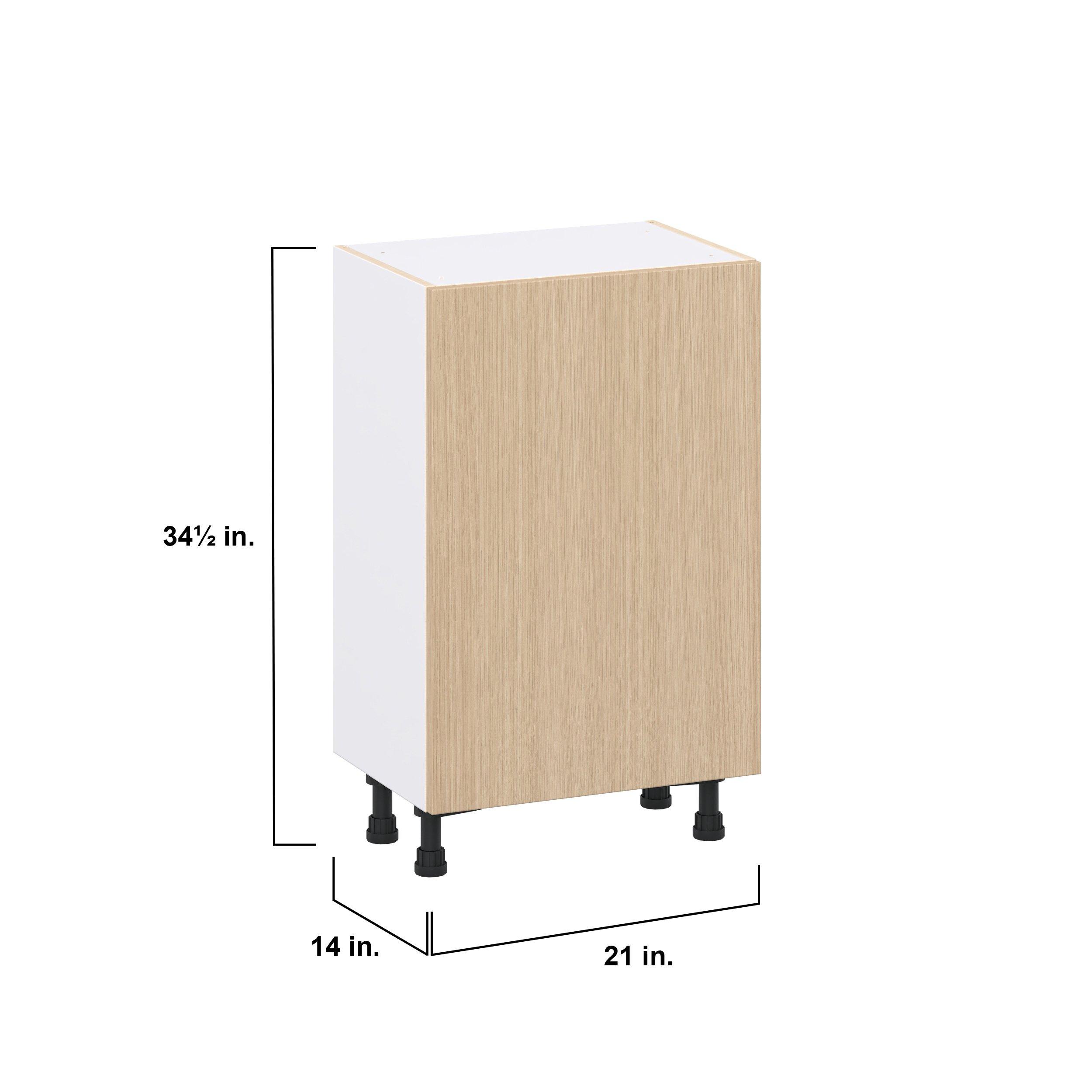 Elevate your project with the contemporary charm of Glenwood slab-style cabinets. Available in desert Mojavi oak and rich burnt walnut finishes, this collection captures the warmth and beauty of natural wood with the practicality of textured melamine. Crafted from one-piece MDF Studio Design Collection Glenwood 21 in. Mojavi Oak Shallow Base Cabinet is designed to resist hairline cracks while the easy-to-clean finish stands up to stains and moisture. Featuring 5-piece doors and dovetail drawer joints, these cabinets offer durability and elegance. This collection combines style with everyday storage solutions.