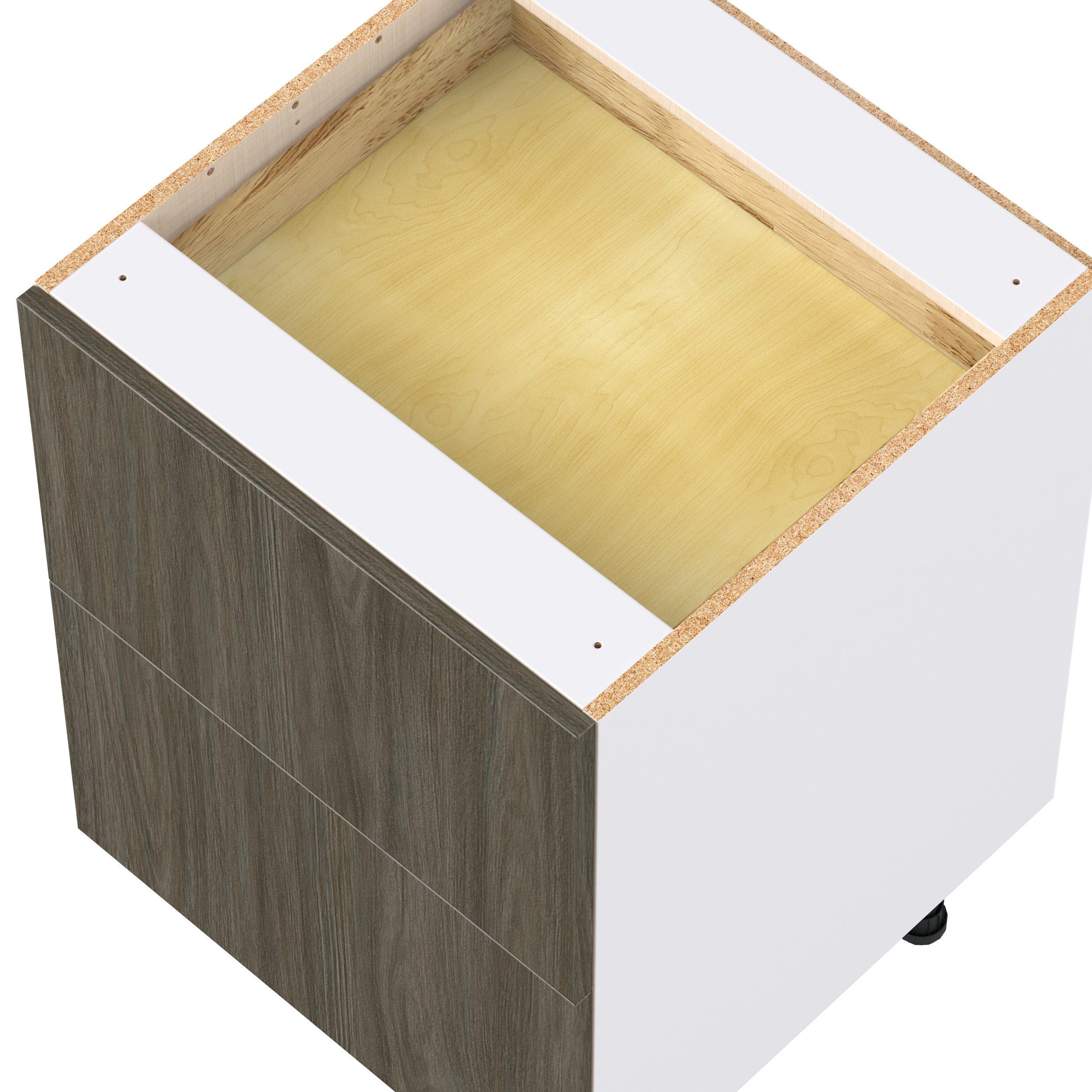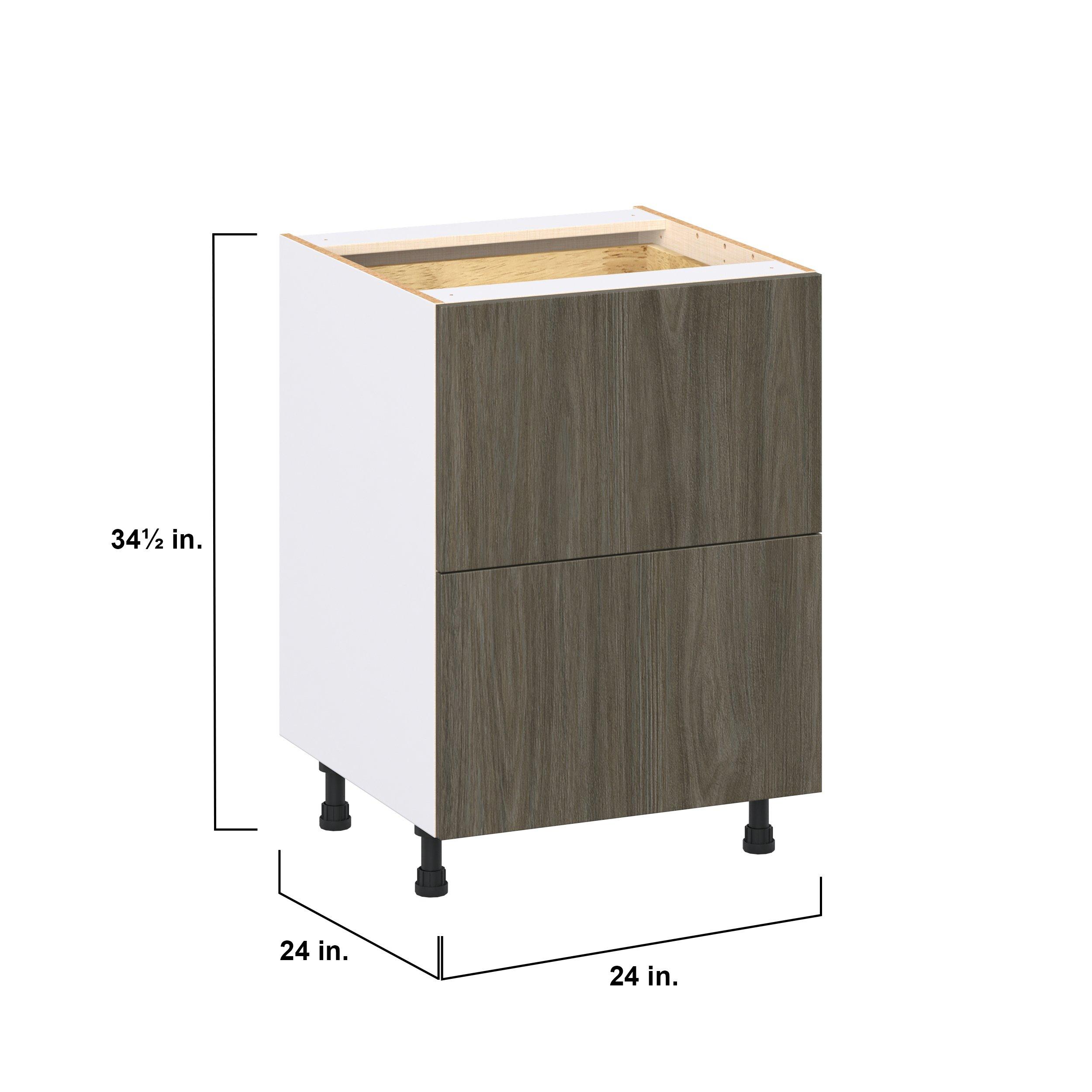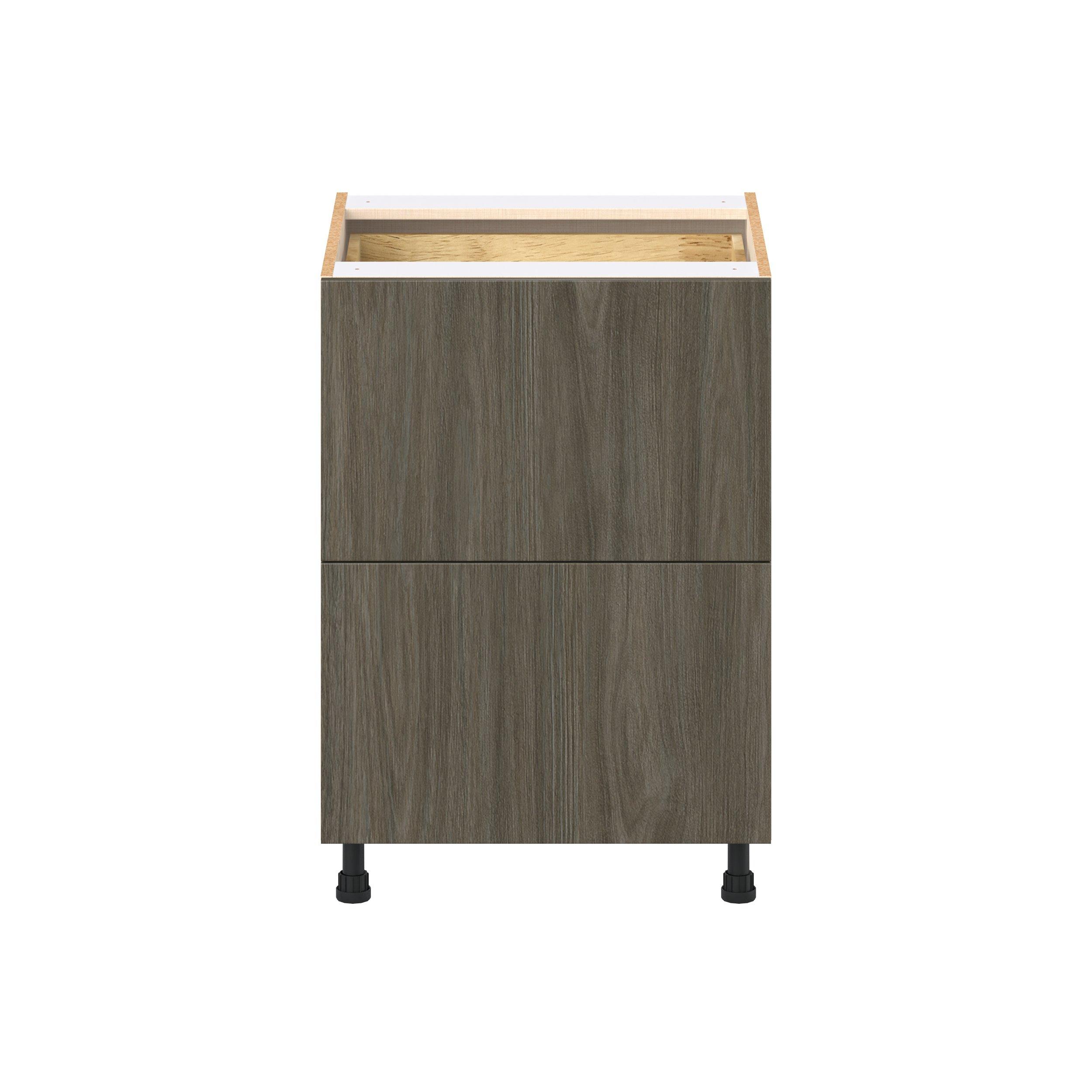 Elevate your project with the contemporary charm of Glenwood slab-style cabinets. Available in desert Mojavi oak and rich burnt walnut finishes, this collection captures the warmth and beauty of natural wood with the practicality of textured melamine. Crafted from one-piece MDF Studio Design Collection Glenwood 24 in. Burnt Walnut Base Cabinet with Inner Pull-Out Drawer is designed to resist hairline cracks while the easy-to-clean finish stands up to stains and moisture. Featuring 5-piece doors and dovetail drawer joints, these cabinets offer durability and elegance. This collection combines style with everyday storage solutions.