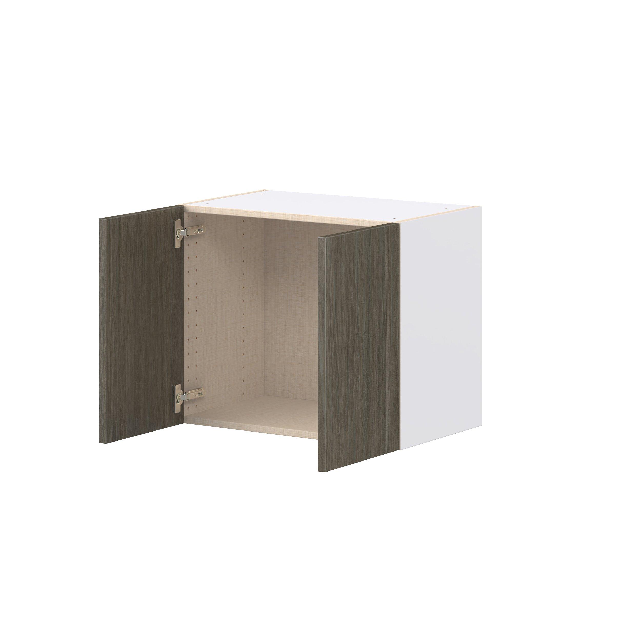 Elevate your project with the contemporary charm of Glenwood slab-style cabinets. Available in desert Mojavi oak and rich burnt walnut finishes, this collection captures the warmth and beauty of natural wood with the practicality of textured melamine. Crafted from one-piece MDF Studio Design Collection Glenwood 24 in. Burnt Walnut Bridge Wall Cabinet is designed to resist hairline cracks while the easy-to-clean finish stands up to stains and moisture. Featuring 5-piece doors and dovetail drawer joints, these cabinets offer durability and elegance. This collection combines style with everyday storage solutions.