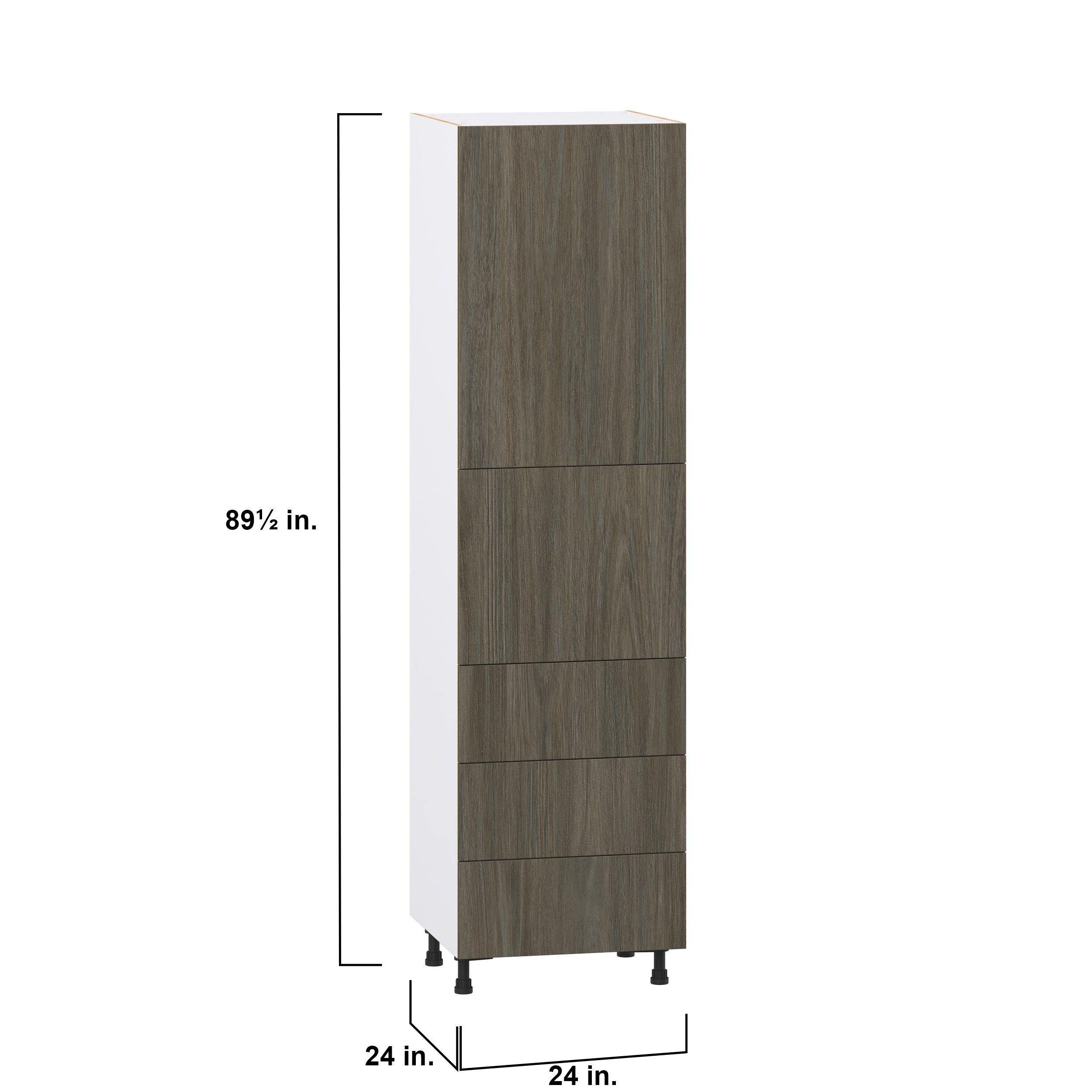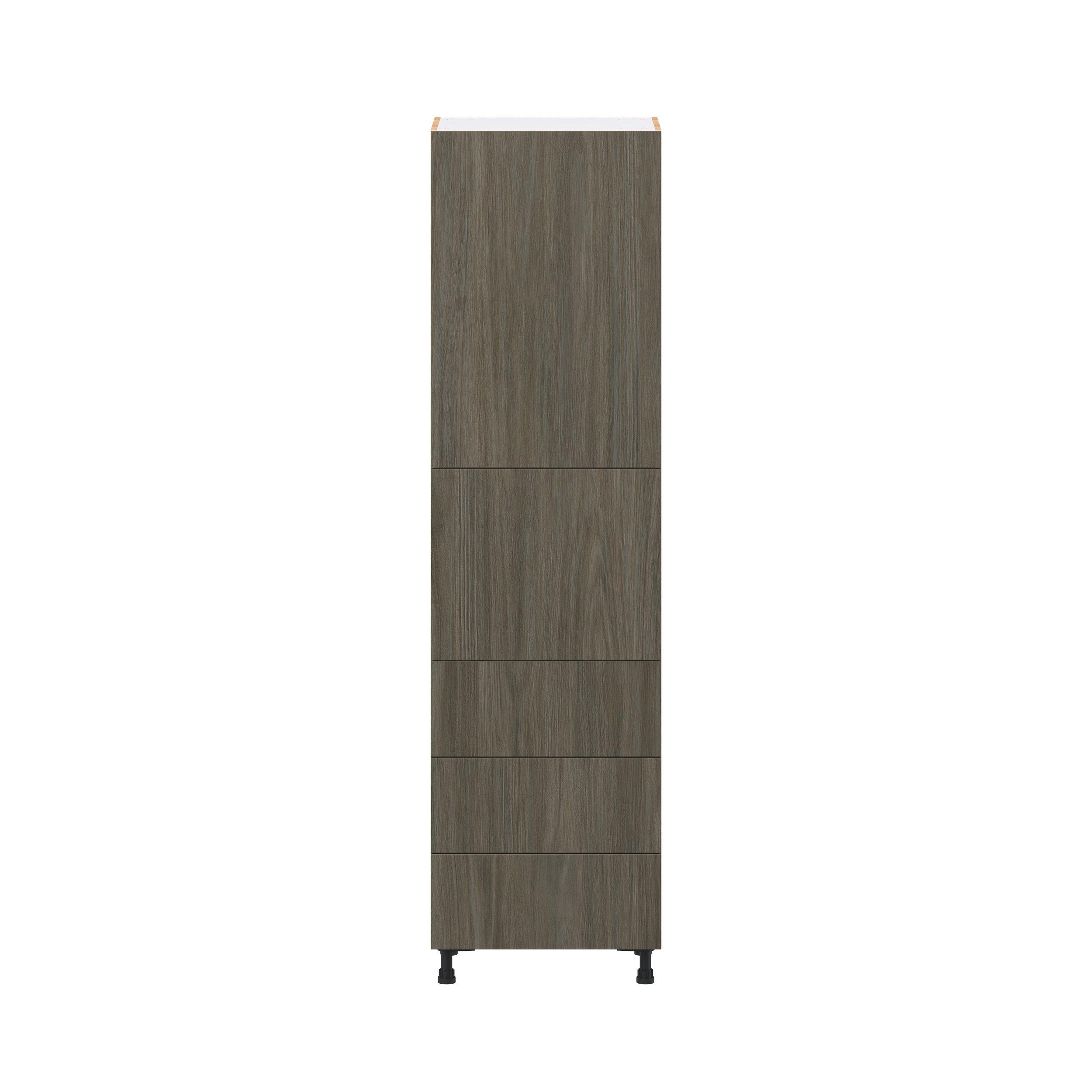 Elevate your project with the contemporary charm of Glenwood slab-style cabinets. Available in desert Mojavi oak and rich burnt walnut finishes, this collection captures the warmth and beauty of natural wood with the practicality of textured melamine. Crafted from one-piece MDF Studio Design Collection Glenwood 24 in. Burnt Walnut Door and Drawer Pantry Cabinet with Inner Pull-Out is designed to resist hairline cracks while the easy-to-clean finish stands up to stains and moisture. Featuring 5-piece doors and dovetail drawer joints, these cabinets offer durability and elegance. This collection combines style with everyday storage solutions.