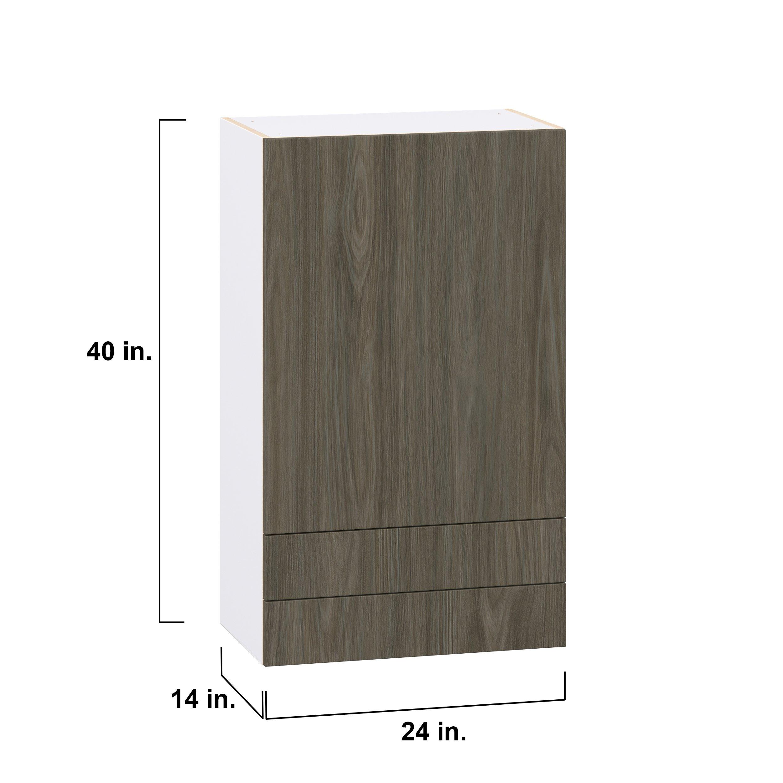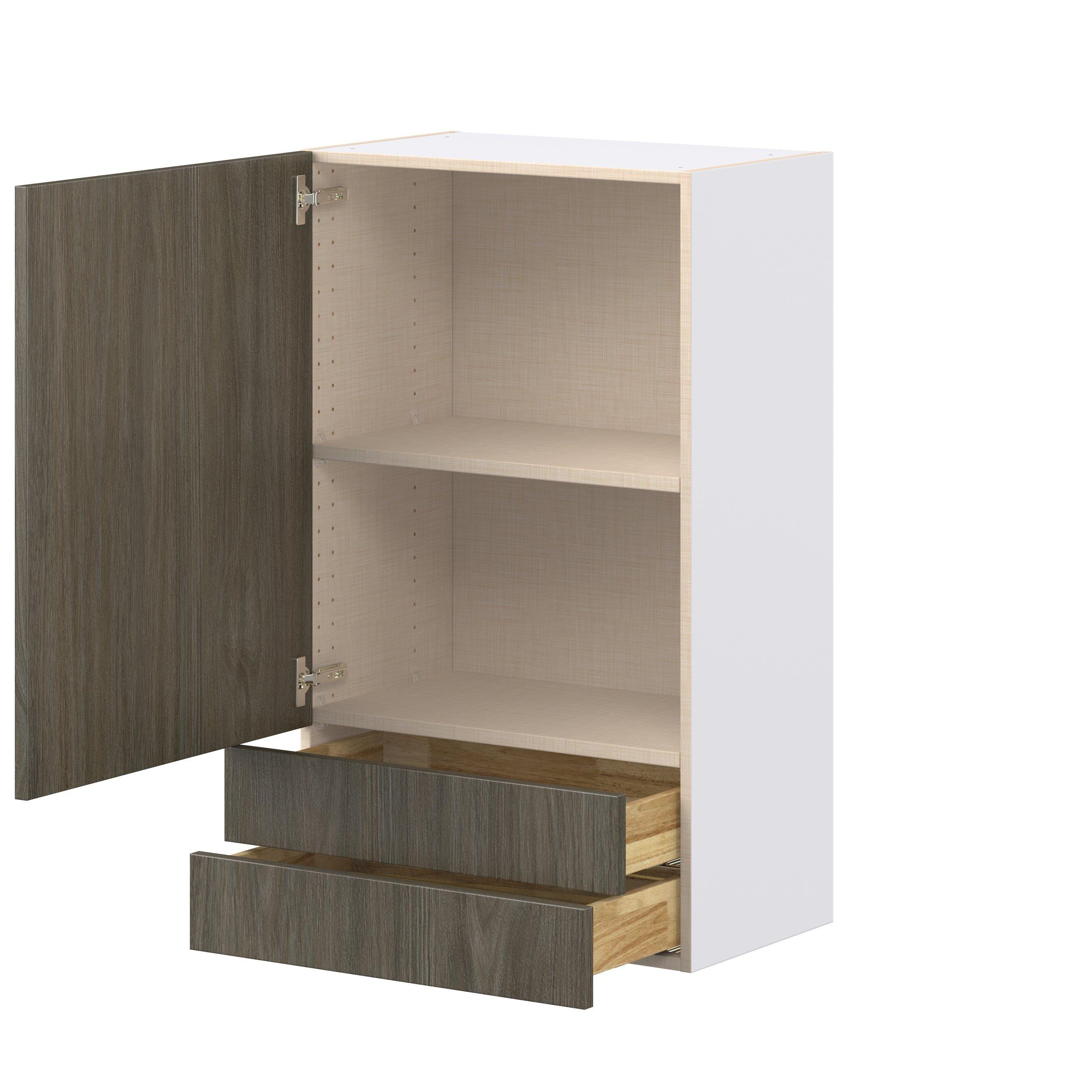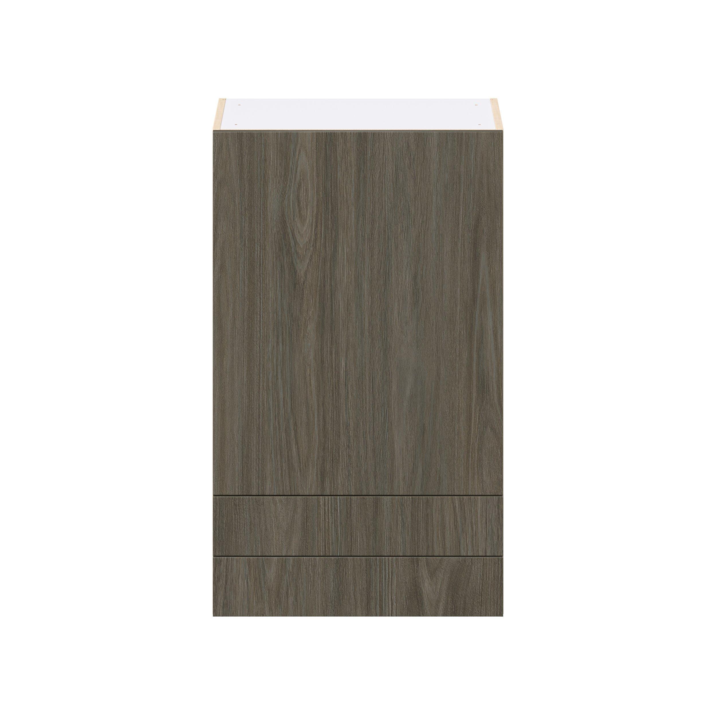 Elevate your project with the contemporary charm of Glenwood slab-style cabinets. Available in desert Mojavi oak and rich burnt walnut finishes, this collection captures the warmth and beauty of natural wood with the practicality of textured melamine. Crafted from one-piece MDF Studio Design Collection Glenwood 24 in. Burnt Walnut Door and Drawer Wall Cabinet is designed to resist hairline cracks while the easy-to-clean finish stands up to stains and moisture. Featuring 5-piece doors and dovetail drawer joints, these cabinets offer durability and elegance. This collection combines style with everyday storage solutions.
